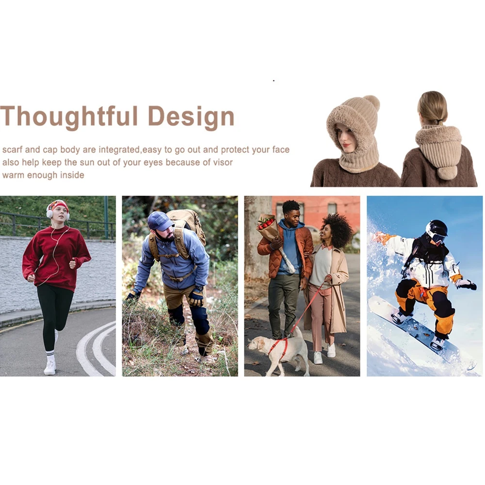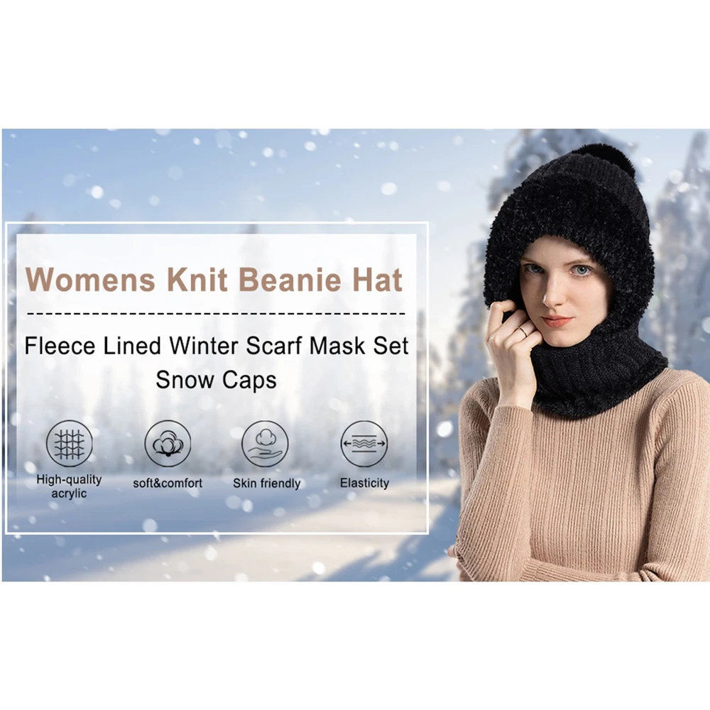 1. 3-in-1 Multi-Functional Design, A One-Stop Solution for Winter Warmth Combines a knit hat, scarf, and face mask in one piece—no need for additional scarves or masks. It covers the head, neck, and face all at once, providing complete protection against cold winds and low temperatures in one go. It saves storage space during outings, making daily commutes and outdoor trips more convenient. 2. Thickened Fleece Lining + Ear Flaps, Effectively Locks in Warmth & Resists Cold Equipped with a high-density fleece lining and widened ear flaps, it creates a double barrier against cold air. Even in temperatures below -10℃, it keeps the head, ears, and neck warm, completely eliminating the trouble of "frozen ears" and "cold neck". The fleece material is soft and skin-friendly, with no itchy sensation even after long hours of wear. 3. High-Quality Knit Fabric, Durable, Wear-Resistant & Skin-Friendly Made of anti-pilling knit fabric with a fine texture and good breathability. It maintains a neat shape and retains its warmth even after multiple washes, without losing its effectiveness. The fabric is skin-friendly, non-stuffy, and sweat-resistant, ensuring comfort whether worn daily or for extended periods outdoors. 4. Ergonomic Fit Cutting, Unisex & Fits Most Head Sizes Features an ergonomic design that fits most head circumferences (approximately 54-60cm), suitable for both men and women. It offers a comfortable fit with no tightness or looseness. The face mask part can be flexibly adjusted to control coverage—it does not block vision or affect breathing, balancing warmth and practicality perfectly. 5. Multi-Scenario Adaptation, Blends Winter Fashion & Practicality Provides comprehensive protection for scenarios like daily commutes, snow walks, and outdoor cycling. Its simple knit style seamlessly matches various winter clothing such as down jackets and coats. It is not only a must-have warm item for winter but also a fashion accessory that enhances the texture of your outfit—ideal for both gifting and personal use.