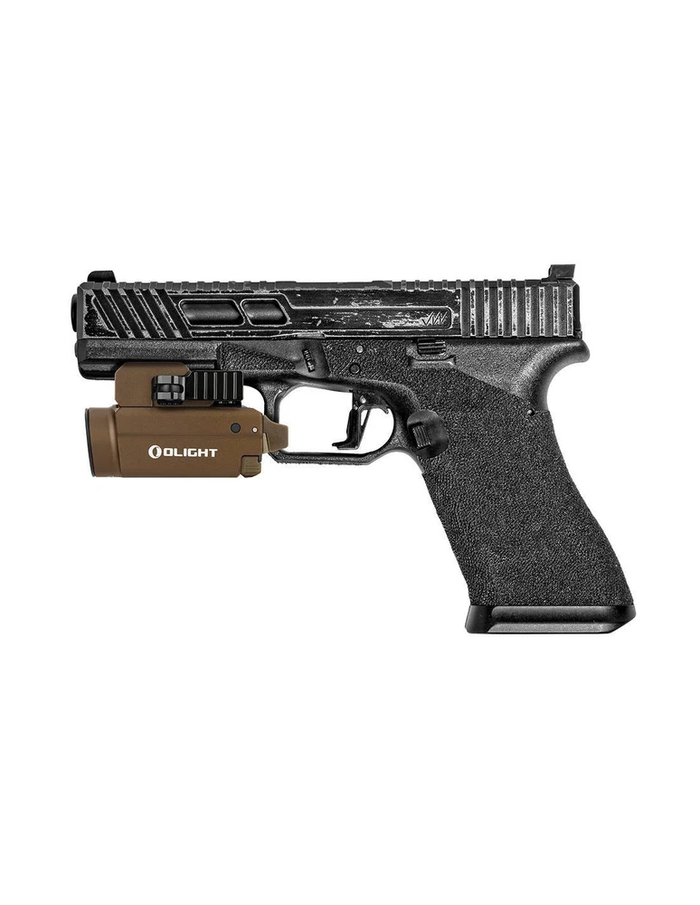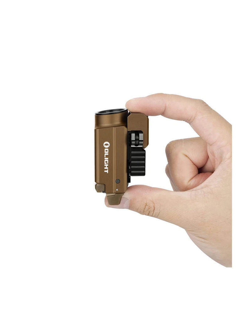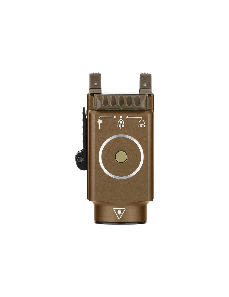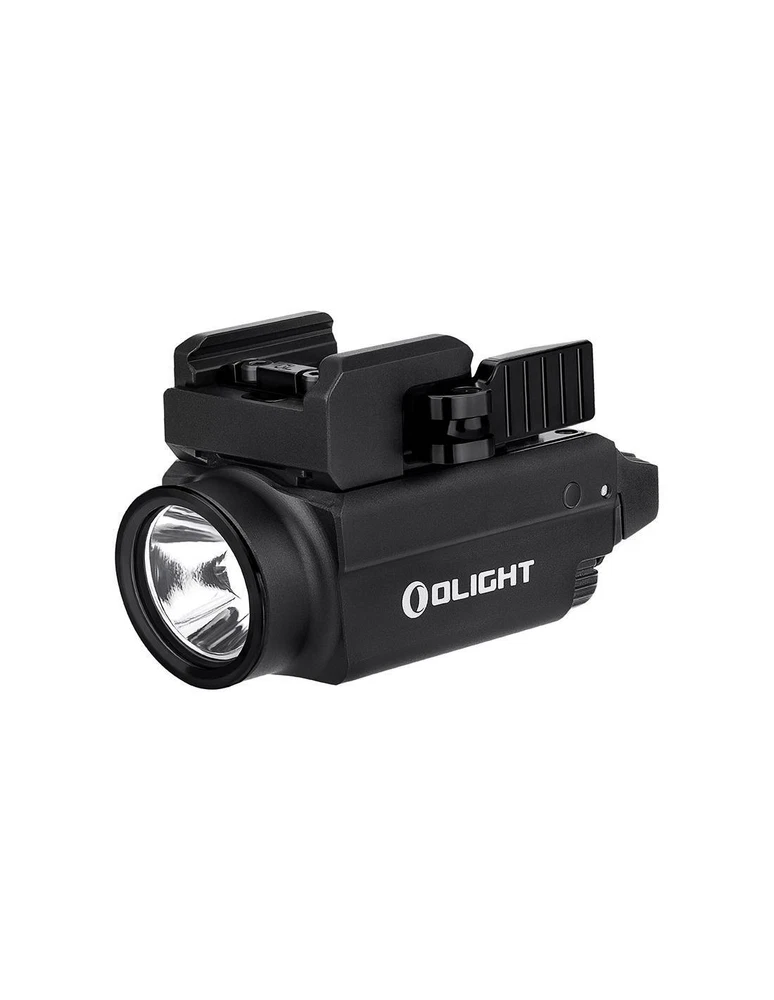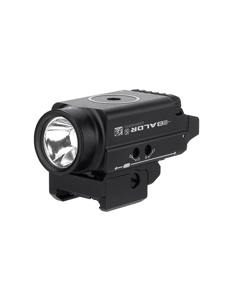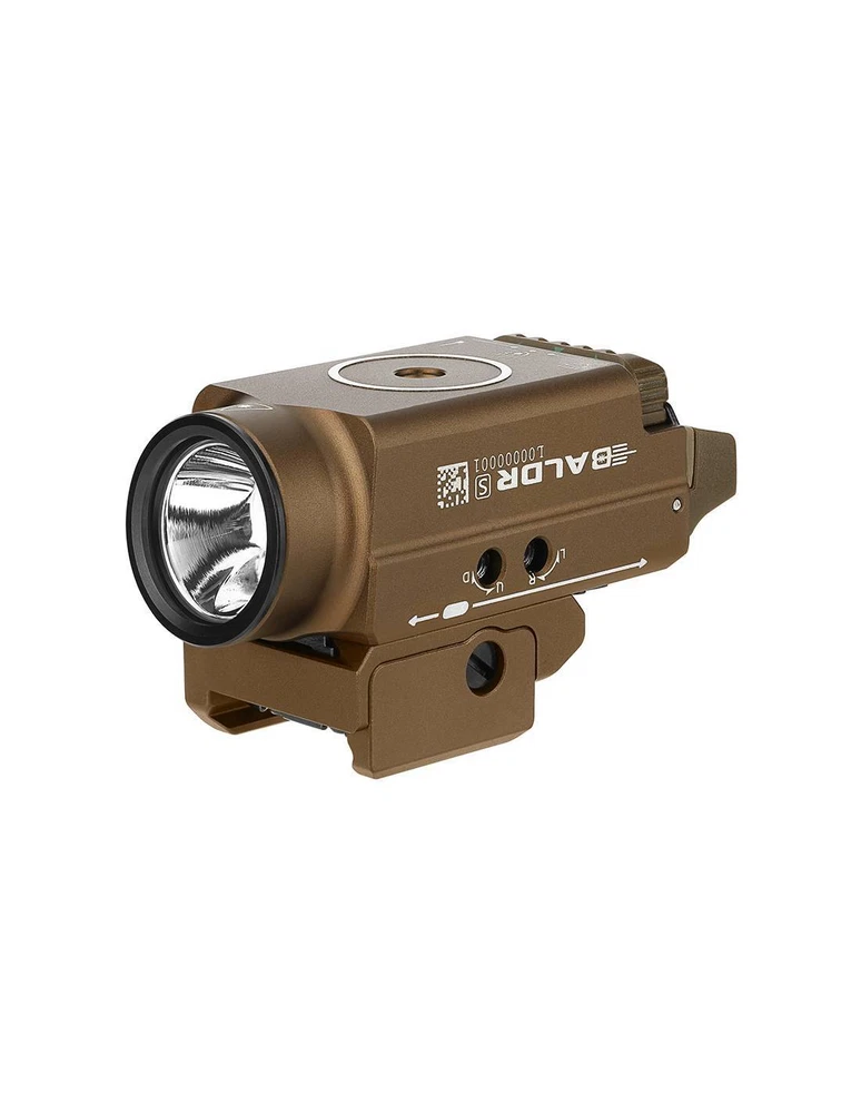 Baldr S 800 lum pointer gun flashlight. Olight DESERT GREEN LASER Baldr S 800 lum pointer gun flashlight. Olight DESERT GREEN LASER Description The Baldr S is the new version of gun light modules with built-in pointer. The patented sliding rail mount allows the light module to easily adjust to a subcompact. With this quick installation system from Olight, you can attach and remove the flashlight to the gun in seconds. The Baldr S works with a built-in lithium polymer battery, which charges magnetically and provides extended run time and maximum comfort. This precise and fast compact and adjustable light module is the perfect addition to your subcompact. Features Maximum 800 lumens of white light output, 33% more light than the previous Baldr Mini, and a new 100 lumens low mode when needed indoors. Built-in 3.7V 380mAh lithium polymer battery, ensuring a maximum uptime of 140 minutes when the light is set to 100 lumens. A mode setting switch to select only white light, only green beam, or both combined. The patented sliding rail assembly makes the light fit the measurement of the specific length of your rail. It also includes a tilting arm for quickly installing or releasing light. It comes standard with Glock and Picatinny size rail inserts for excellent compatibility. Dual ambidextrous switches for momentary or constant smooth activation with either hand with ease. Waterproof: IPX4 Length: 6.3 cm Body diameter: 3.25 cm Head diameter: 3.6 cm Weight: 95 grams Lighting levels Modes Power Autonomy (blue green beam on / off) Range Intensity High 800~300 lumens 1 + 2 + 30 minutes / 1 + 2 + 38 minutes 1 + 2 + 37 minutes / 1 + 2 + 40 minutes 130 meters 4,400 CDs Bass 100 lumens 90 minutes 140 minutes 45 meters 540 CD Accessories included Baldr S Flashlight (Built-in Battery) Picatinny Rail Mount Adapter (MIL-STD-1913) 2 hollow head screws HM2.5 * 4.5 x 2 2 M3 x 4 Hex Flat End Machine Screws Allen H1.5 Wrench Oval tip fixing screw Tapered point fixing screw MCC (Magnetic Charging Cable) Special Edition User Manual