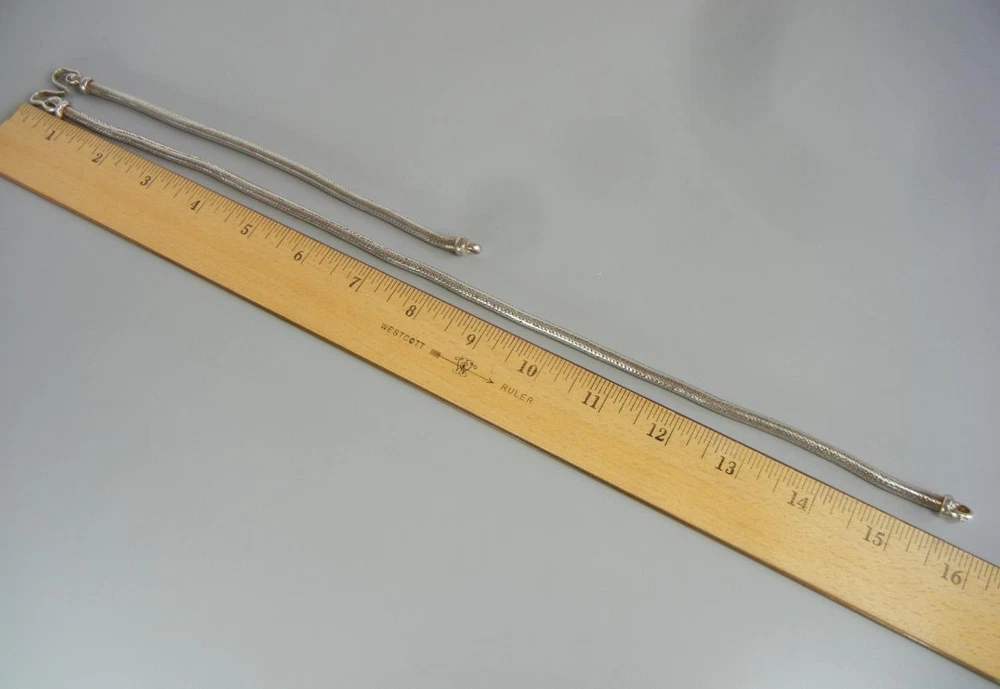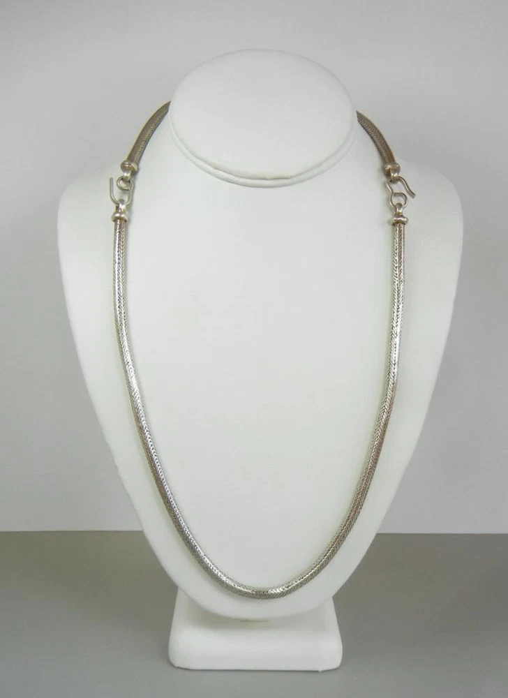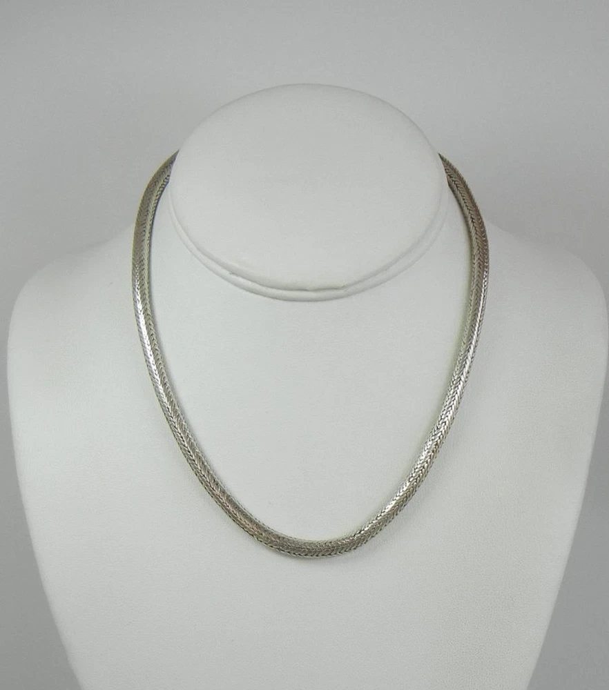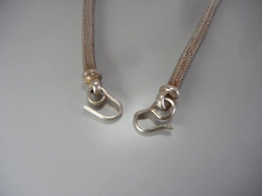 Bali Necklace Bracelet Set Sterling Silver Wheat Snake Chain Indonesia 95 Grams Bali Necklace Bracelet Set Sterling Silver Wheat Snake Chain Indonesia 95 Grams Click images to enlarge Description This is a wonderful Indonesian solid sterling silver (unmarked but tested) wheat snake chain set. The 16" necklace and 8 3/8" bracelet have a width of 3/16" (5/16" wide at caps), and could be worn together with a combined length of 24 1/2". Conditions are very good, and total weight is solid at 95 grams. Payment Payment is expected within 3 days of auction. Shipping Shipping and handling in the US includes tracking . All items are packaged with bubble wrap and box. I am happy to combine shipping when possible. Please contact me for the discount rate, and please do not pay until you receive a combined invoice. Terms of Sale Most items are vintage and or previously owned. Please note condition in the description. Thank you! Images sell! Get Supersized Images & Free Image Hosting Create your brand with Auctiva's Customizable Templates. Attention Sellers - Get Templates Image Hosting, Scheduling at Auctiva.com. Track Page Views With Auctiva's Counter