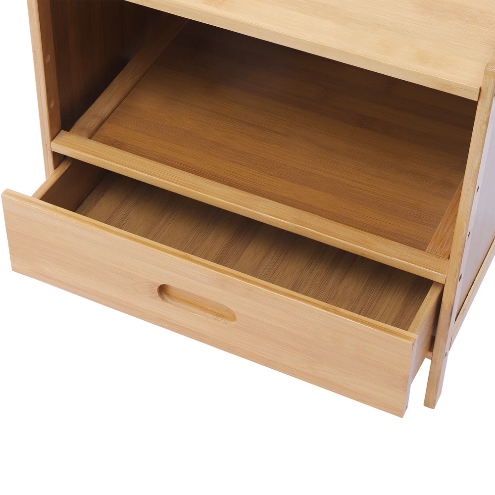 Bamboo Nightstand End Table With Storage Cabinet/Drawer For Indoor Bedroom Home Product Specifications: Material: Bamboo Maximum Weight: 50 lbs Color: Primary Colors Product size: 16.5"L*11.8"W*15.7"H Note - This end table for bedroom requires little care from you and is very easy to clean, saving you time and energy. - Baffle design, the unique baffle of the top shelf effectively prevents items from falling. - The space-saving design and neutral color will blend well with any furniture. Easy glide drawers provide storage for gadgets, books, or magazines. Description ✔PRODUCT SIZE - 16.5"L*11.8"W*15.7"H,Max weight capacity: 50 lbs;Perfect size and height to match most beds, sofas, and chairs, ideal as a bedroom or living room bedside table or sofa side table. ✔MODERN DESIGN - This multi-functional storage shelf uses a concise design, clean lines, no other cumbersome additional decorations, and matches well with most home decor to your room. ✔WIDE APPLICATION - Widely used as a sofa side table, bedside table, night stand, couch table, display table, end table for living room, bedroom or office. Also slippers can be stored in the bottom position. ✔MATERIAL - Made of natural tough bamboo, nightstand is durable, abrasion-resistant, environmentally friendly, waterproof and moisture-proof. Because it adopts natural paint, no longer worry about your family and your physical and mental safety. ✔LARGE CAPACITY - Nightstand with pull-out drawer which is perfect for storing odds and ends out of sight and also offers an open shelf for those items you don’t want totally hidden away. Store your cup, magazines, alarm clock, lamp and cellphone on the countertop. Payment Delivery details Terms of sales About us Contact us Payment We accept ebay payment 。 Fees such as import duties, taxes are not included in the item price or shipping costs. These charges are the buyer's responsibility. Delivery details Shipping: 2-9 working days to: USA Terms of sales We maintain high standards of excellence and strive for hundred percent customer satisfaction. Feedback is very important to us. We hope that you contact us immediately before you give neutral or negative feedback, so that we can address your concerns. It is impossible to address issues if we do not know about them! About us Your satis faction is our ultimate goal. We work hard to earn your trust and future business. Our certified technicians have tested each item before shipping. The unit comes with 1 year limited warranty on all manufacturing defects. a) If you receive a defective item, you may return it or ask for a discount. Please contact us within 14 days after you receive the package. b) What you returned must be intact and in its original packaging as re? u. Customer is responsible for shipping costs of the returned item. c) We will cover the cost of shipping back t with the shipping rate indicated in the registration page. We will send you a new unit or refund the full payment you paid. Thank you. Contact us Business Hour Business Hour: Monday To Friday: 8:30 AM to 5:00 PM (Beijing China time) Due to time zones, our reply to your questions may not be immediately. But within above working time, we will reply your email within 24 hours. If it's non-workdays, please kindly be patient and wait till Monday. Please contact us with ebay message. Please feel free to contact us if you have any questions. Monday To Friday: 8:30 AM to 5:00 PM (Beijing China time) Due to time zones, our reply to your questions may not be immediately. But within above working time, we will reply your email within 24 hours. If it's non-workdays, please kindly be patient and wait till Monday. Please contact us with ebay message. Please feel free to contact us if you have any questions.