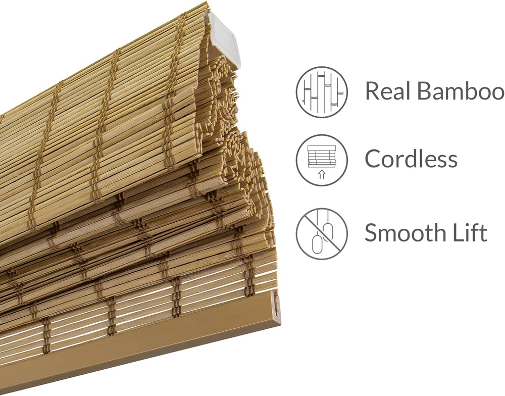Store New Arrivals Add to Favorite View Feedback Contact Bamboo Roman Shades - Customer Favorite Light Filtering Blinds for Windows, Premium Quality, Ideal for Home, Deer Brown, 34" W X 64" H Description Item model number BRD3464 Warranty Description 1 Year Limited Number of Items 1 Assembly required No Pattern Animal Print Country of Origin Taiwan Department us_home Opacity Light-filtering Control Type Cordless Room Type Kitchen, Bathroom, Bedroom, Living Room, Dining Room Width Range 20 to 49 in Product Dimensions 64"L x 34"W Material Metal, Bamboo, Yarn Shape Rectangular Specific Uses For Product Home Décor Included Components User Manual, Mounting Hardware, Valance Closure Type Cordless Water Resistance Level Not Water Resistant Item Weight 4.73 pounds Size 34"W x 64"H Special Feature Window Treatments, Cordless Mounting Type Inside Mount Color Deer Length Range 60 to 69 in Batteries required No Operation Mode Manual Number Of Panels 1 Recommended Uses For Product Indoor Fabric Type Bamboo Number of pieces 1 Bamboo Roman Shade , Window treatments - Bamboo shades indoor Wood Blinds - Roman blinds that can be used as porch blinds Door Blinds , Window blinds cordless , French door blinds - Bamboo window shades Outdoor blinds for porch - Cordless shades and matchstick blinds Shades and blinds for indoor windows - Cordless bamboo shade , and kitchen window blinds Product Description Natural Woven Wood Shades Cordless Bamboo Roman Shades Bring the beauty of nature indoors with their earthy tones and organic textures. These shades offer a balance between light and privacy, allowing for a cozy, sun-kissed ambiance while maintaining a tranquil retreat when needed. Elevate your space with these eco-conscious window treatments and embrace the beauty of a truly organic interior Product Highlights Natural Materials These shades are crafted from real and natural bamboo. Color variations may differ slightly from the display as every shade is unique. Hassle-free lift Easily raise or lower the shades by gently lifting or pulling down on the bottom rail to the desired height. Color-coordinating valance Attached hanging valance hides the cordless mechanism and provides a seamless look. No deductions are made; this shade is true-to-size. Versatile shades These woven wood shades are able to match rustic, tropical, farmhouse, and bohemian home styles to name a few. Multiroom Use Bedroom Living Room Office Kitchen Are these shades machine washable? No, we only recommend light spot cleaning with a damp cloth. How do I operate these shades? Simply push them up or pull them down with the bottom rail. Can these be cut to a shorter length? No, this would sever the internal tension mechanism and the shades would no longer function. Do these shades shades block out all light? No, these shades are designed to filter and diffuse light, creating a soft, inviting ambiance. Do these shades provide privacy? While they allow filtered light to pass through, these shades do offer moderate privacy. However, for complete privacy, consider layering with curtains. ABOUT US We offer the best prices around on high quality products. Our E-store includes media such as books, movies, music and games while offering electronics, toys, sporting apparel, clothing, tools, general home, garden items and more. SHIPPING We are always working hard to ensure your package arrives as soon as possible. Please understand that some factors like weather, high postal traffic, and the performance of shipping companies are outside of our control. We offer free shipping to the lower 48 states and ship within 2 business days of payment, usually sooner. We do not accept P.O. Boxes. Please provide a physical address. For shipping outside of the continental USA, we only use eBay's Global Shipping Program.The item is shipped to KY and then sent to the rest of the world. International customers are responsible for all duties and taxes. Continue to check out in order to calculate costs for shipping the item to your country. Messages regarding eBay's Global Shipping Program MUST be directed at eBay EXCLUSIVELY. RETURNS We offer a 30-Day Return Policy on items which you are not completely satisfied with. You have the option for a full-refund or an exchange of the item. No returns are available on items shipped outside of the USA. PAYMENT We accept PayPal. CONTACT US This page content is yet to come Please ad us to your favorite seller and visit again later Thank You CUSTOMER SATISFACTION We try our very best to make sure every customer is completely satisfied. If there's a problem, message us! We're happy to help. WE ACCEPT Copyright © 2021 AutoDS. | All Rights Reserved