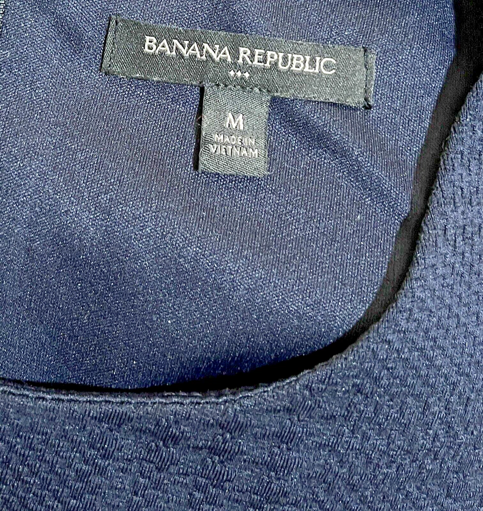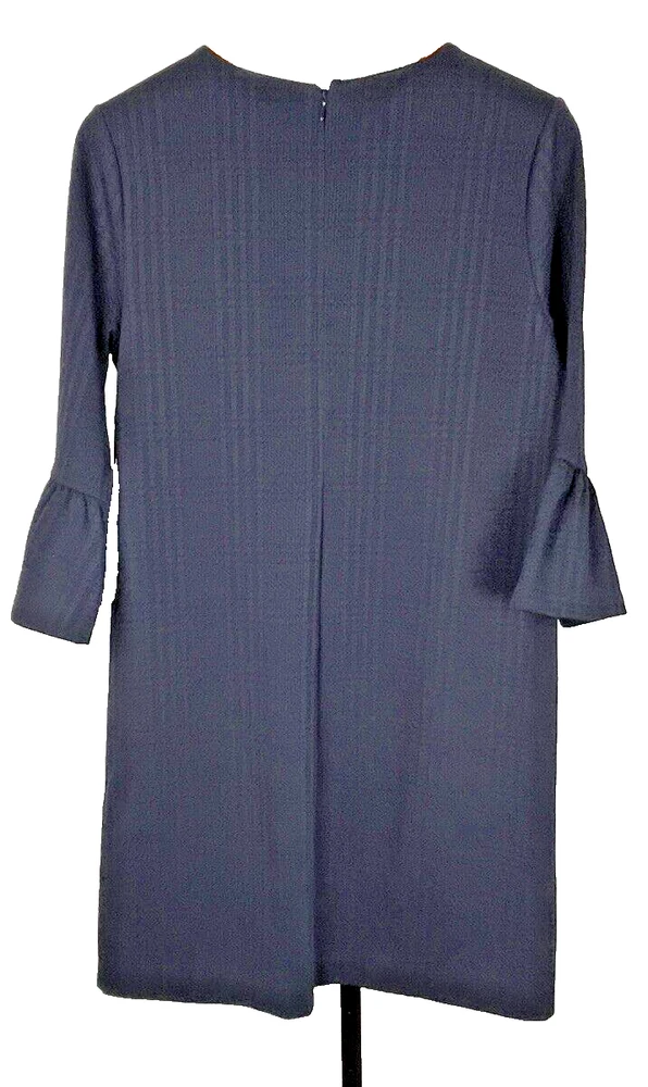 Banana Republic Sweater Dress Blue 3/4 Bell Sleeve Sheath Knee Length Stretch Lined Women's Size Medium Bust 39 Hips 40 Length 36 inches Zip Hook/Eye Closure Polyester Spandex