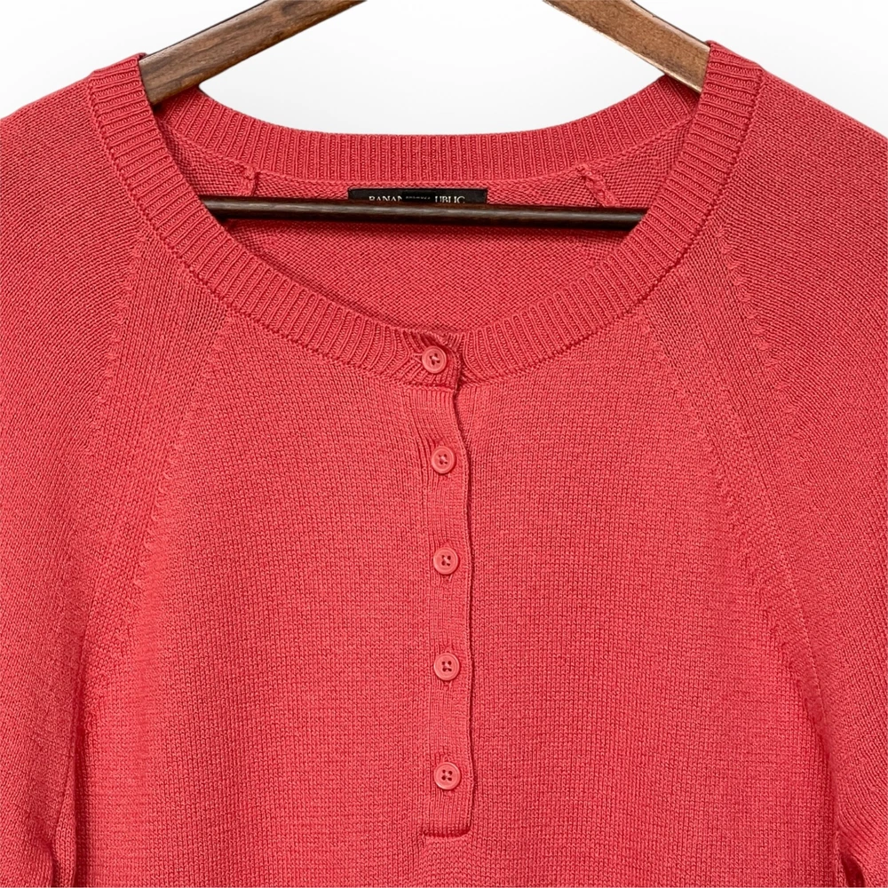 * Banana Republic Raglan Henley Sweater Women Size M Pink Long Sleeve * *Good Pre-owned Condition *Please see photos for approximate measurements (in inches), fabric make, washing instructions, and other notable details. *Purchased items are shipped out next business day.