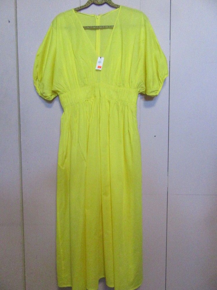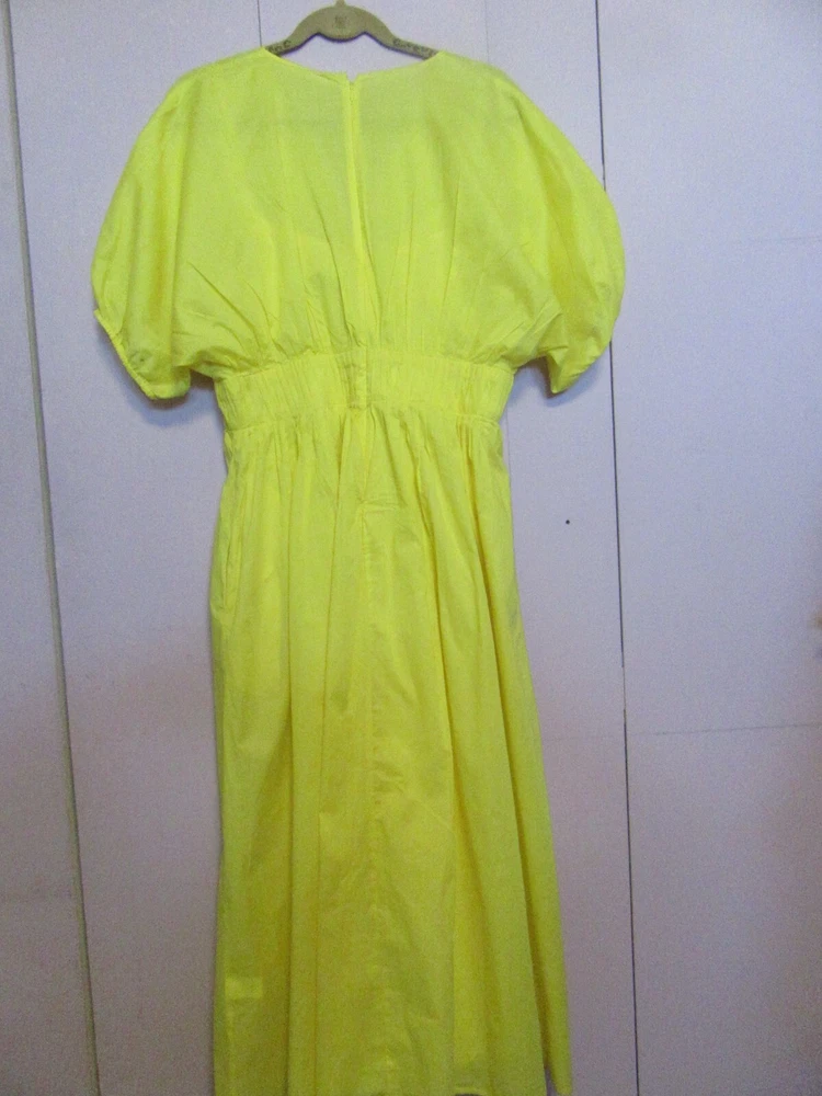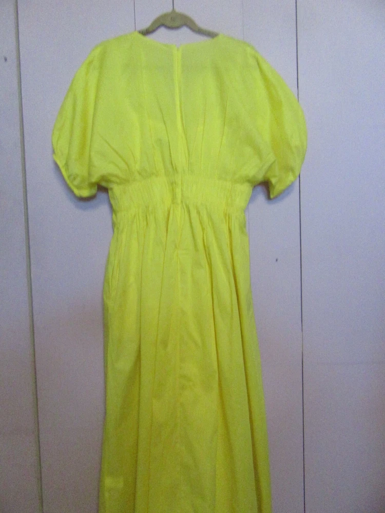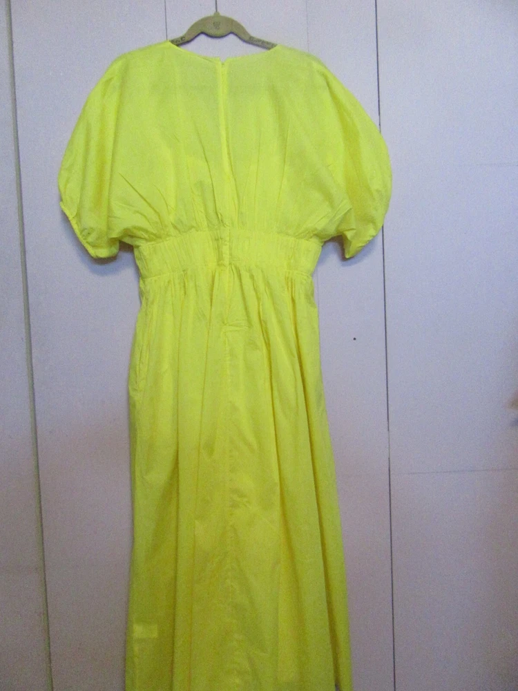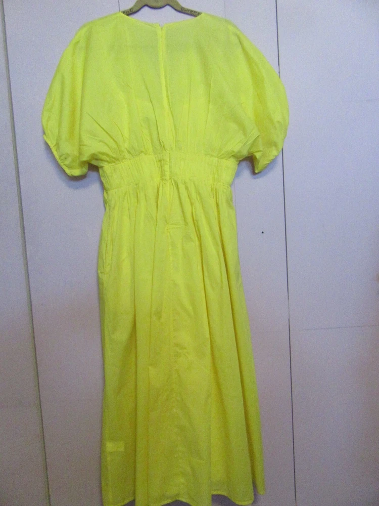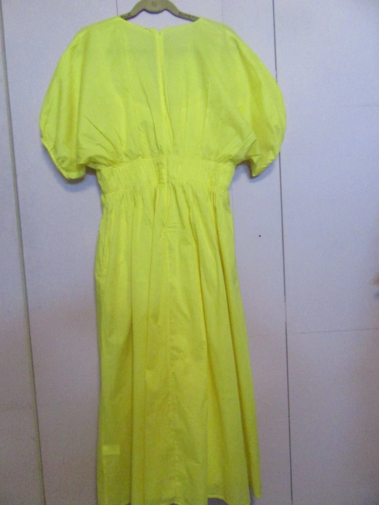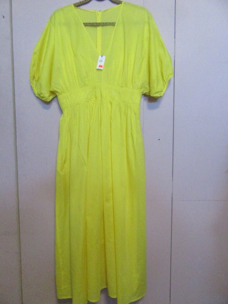 NWT BANANA REPUBLIC VOILE ELBOW-SLEEVE MIDI DRESS This light and breathable fabric is a must for those warm days and styles effortlessly for all occasions. V-neck- Short sleeves with elastic cuffs On-seam front pockets - invisible back zipper closure Fully lined - fit and flare Straight hem Color: Lemon Yellow - 100% cotton Size: Medium - midi length Machine washable Fit and flare Midi length. 100% cotton. Machine wash