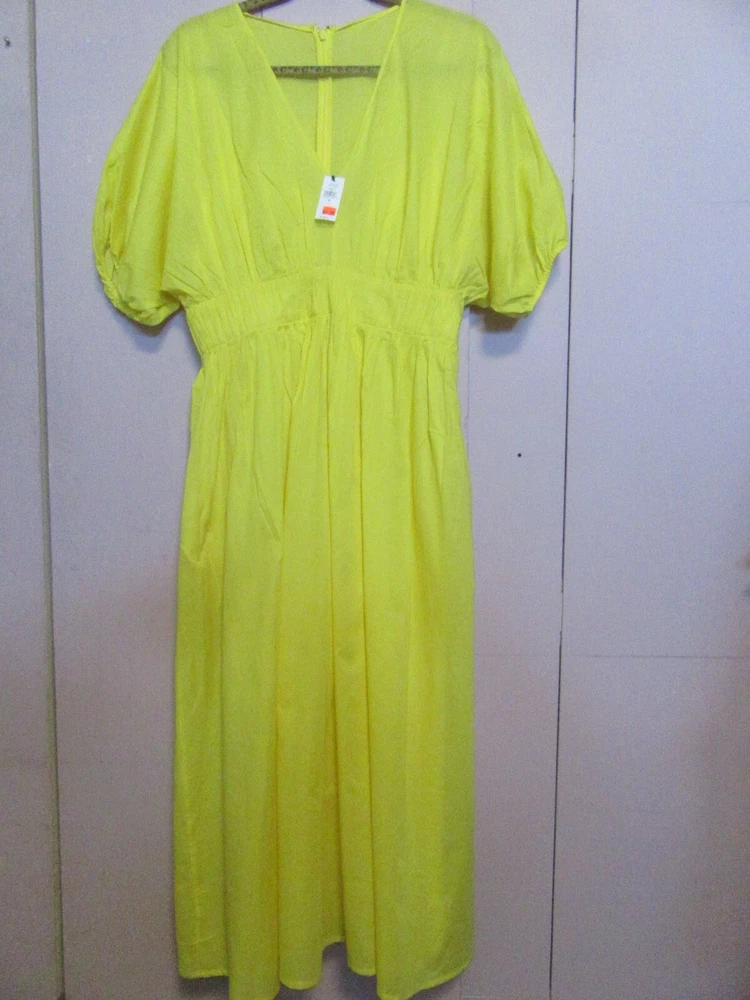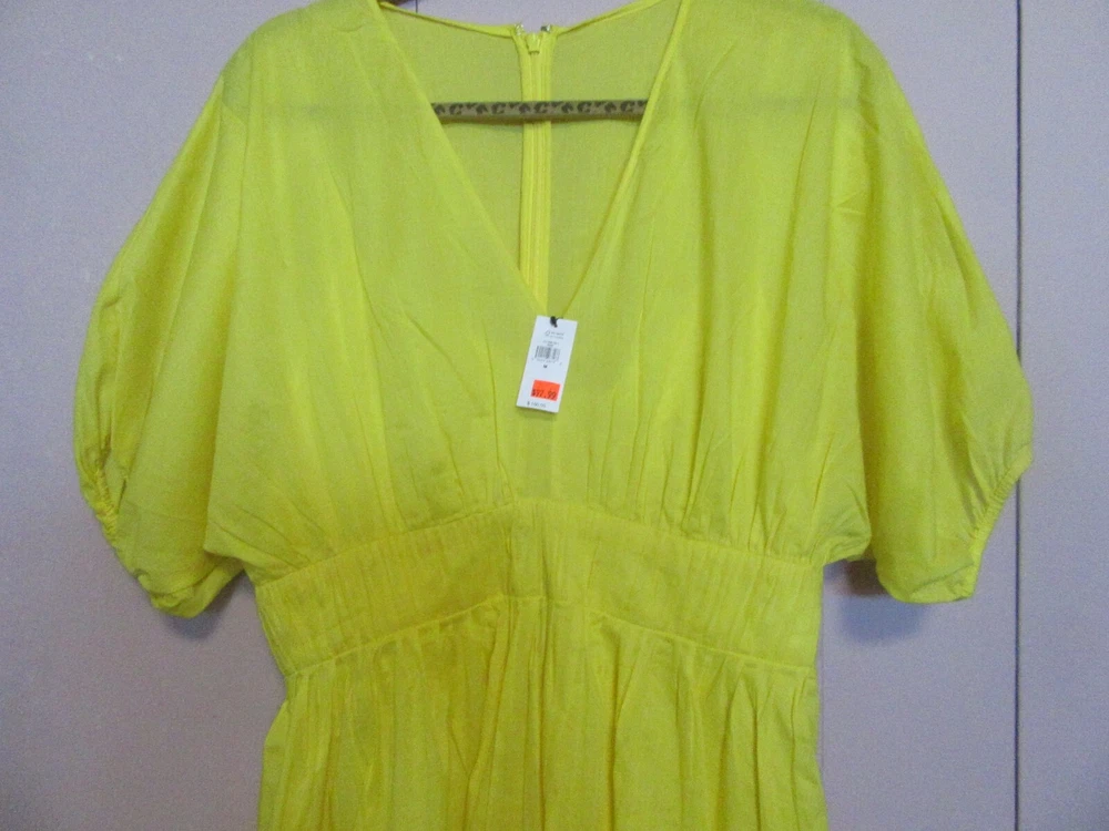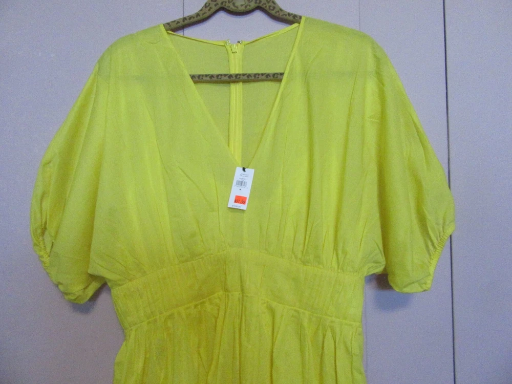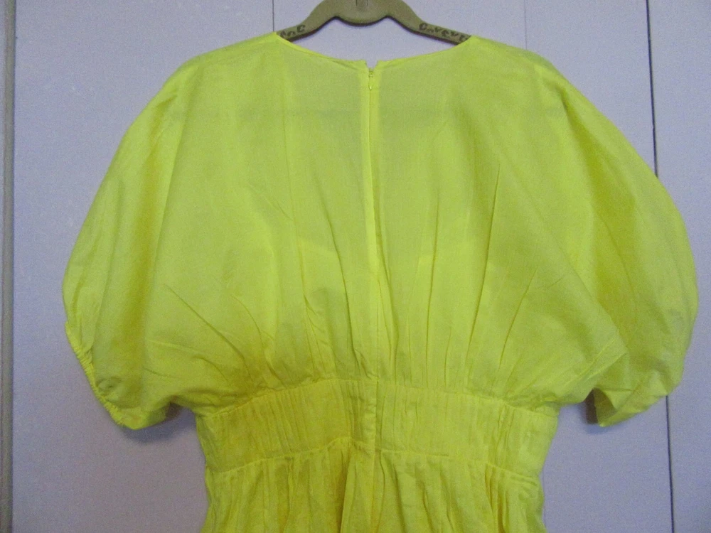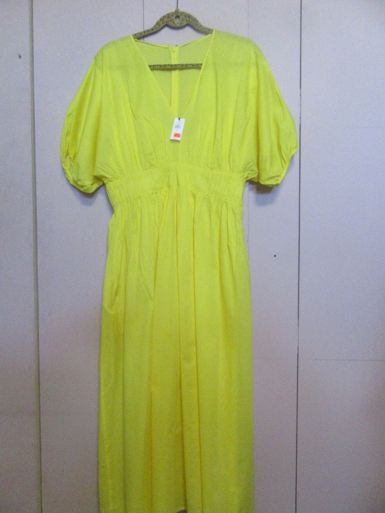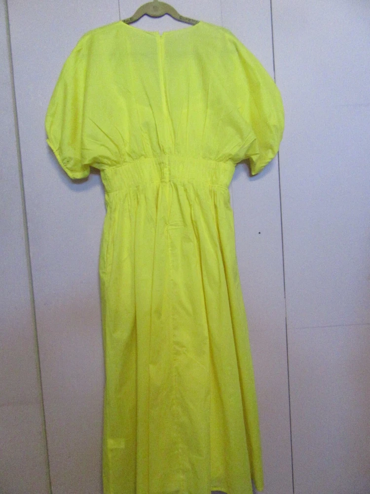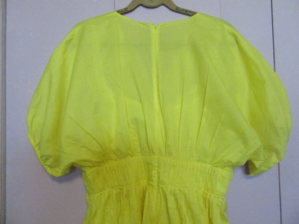 NWT BANANA REPUBLIC VOILE ELBOW-SLEEVE MIDI DRESS This light and breathable fabric is a must for those warm days and styles effortlessly for all occasions. V-neck- Short sleeves with elastic cuffs On-seam front pockets - invisible back zipper closure Fully lined - fit and flare Straight hem Color: Lemon Yellow - 100% cotton Size: Medium - midi length Machine washable Fit and flare Midi length. 100% cotton. Machine wash