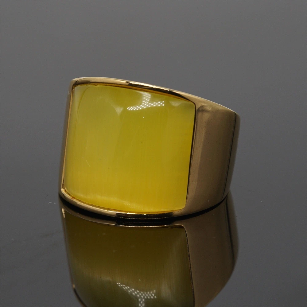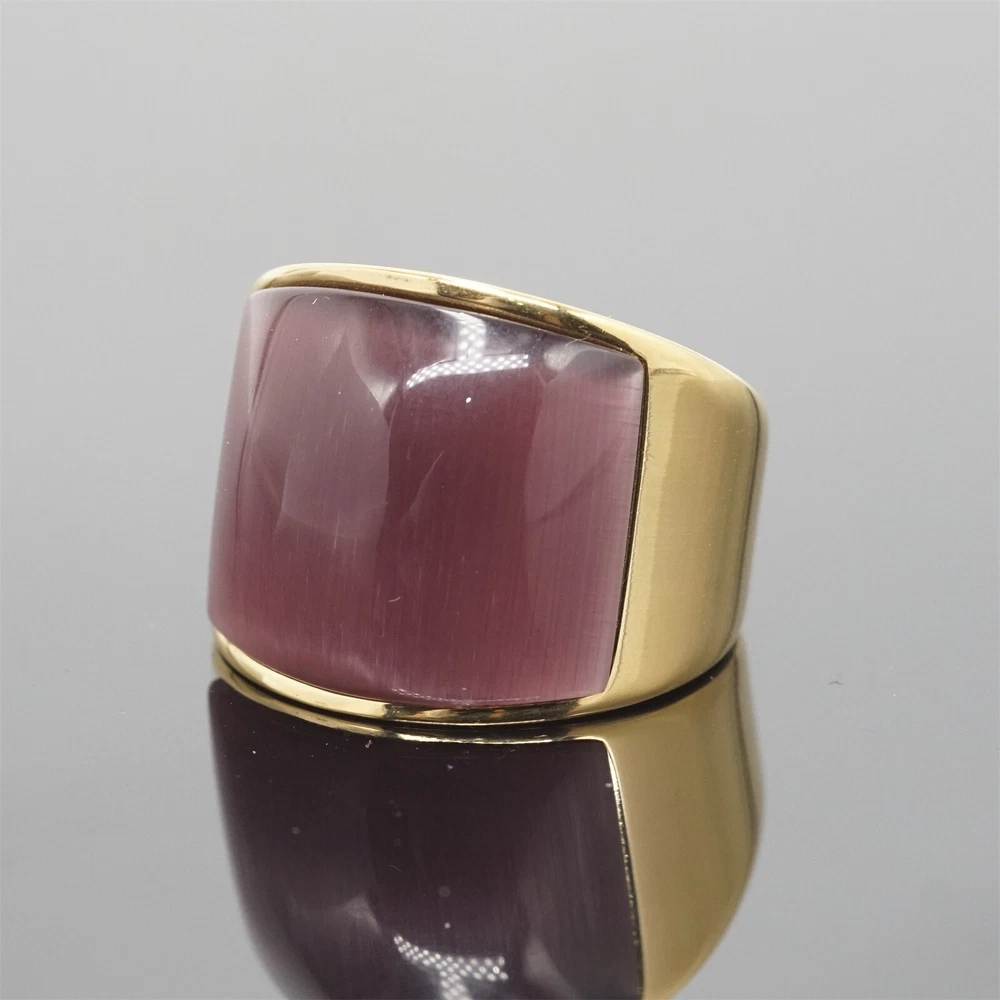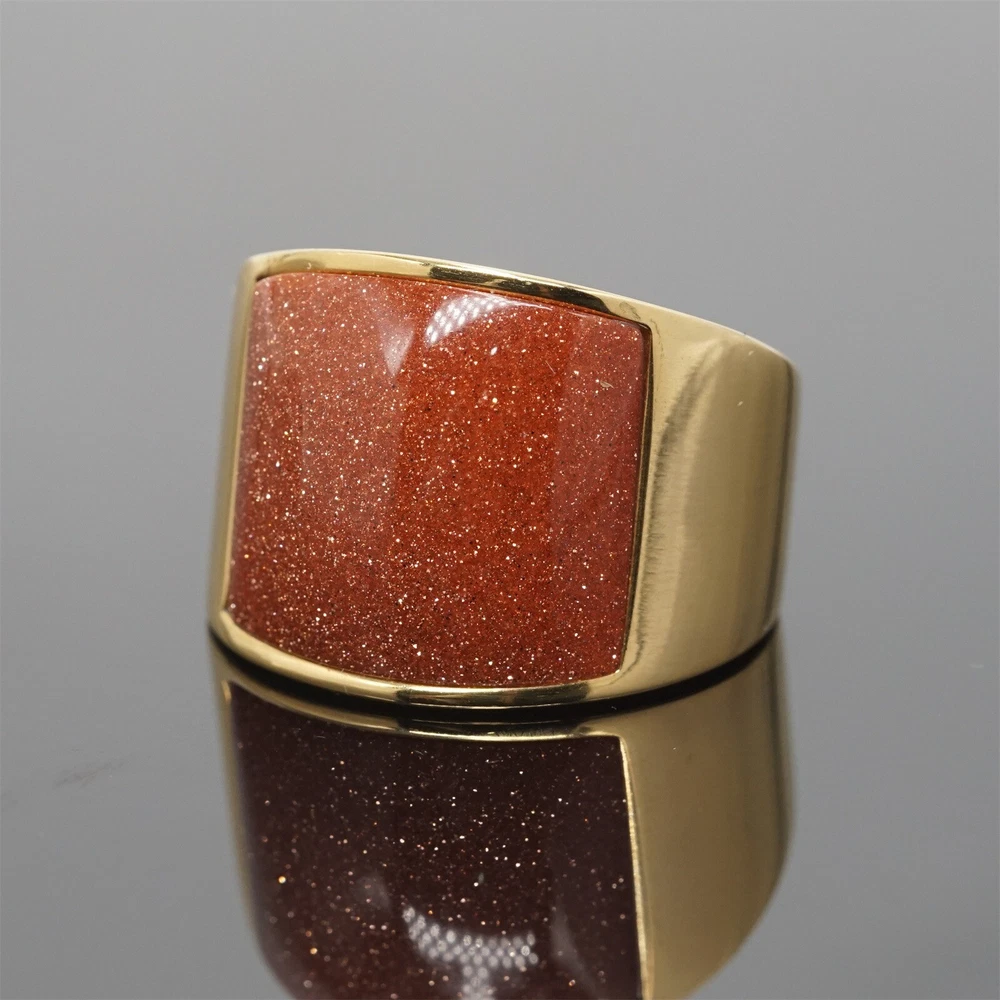 Band Brown Stone Ring Stainless Steel Wedding for Men Women Gold Plated Gifts