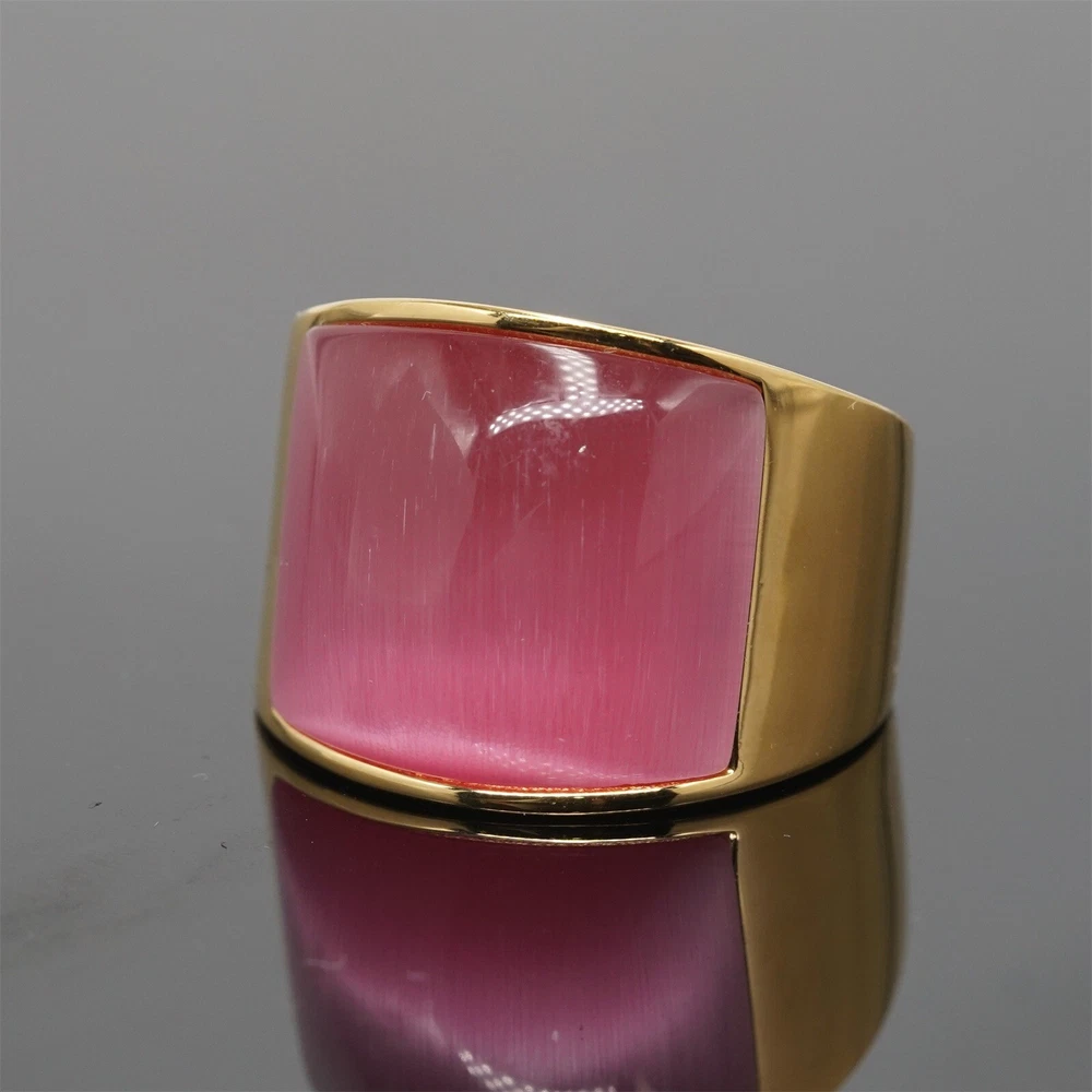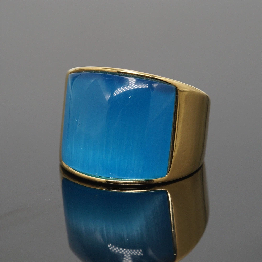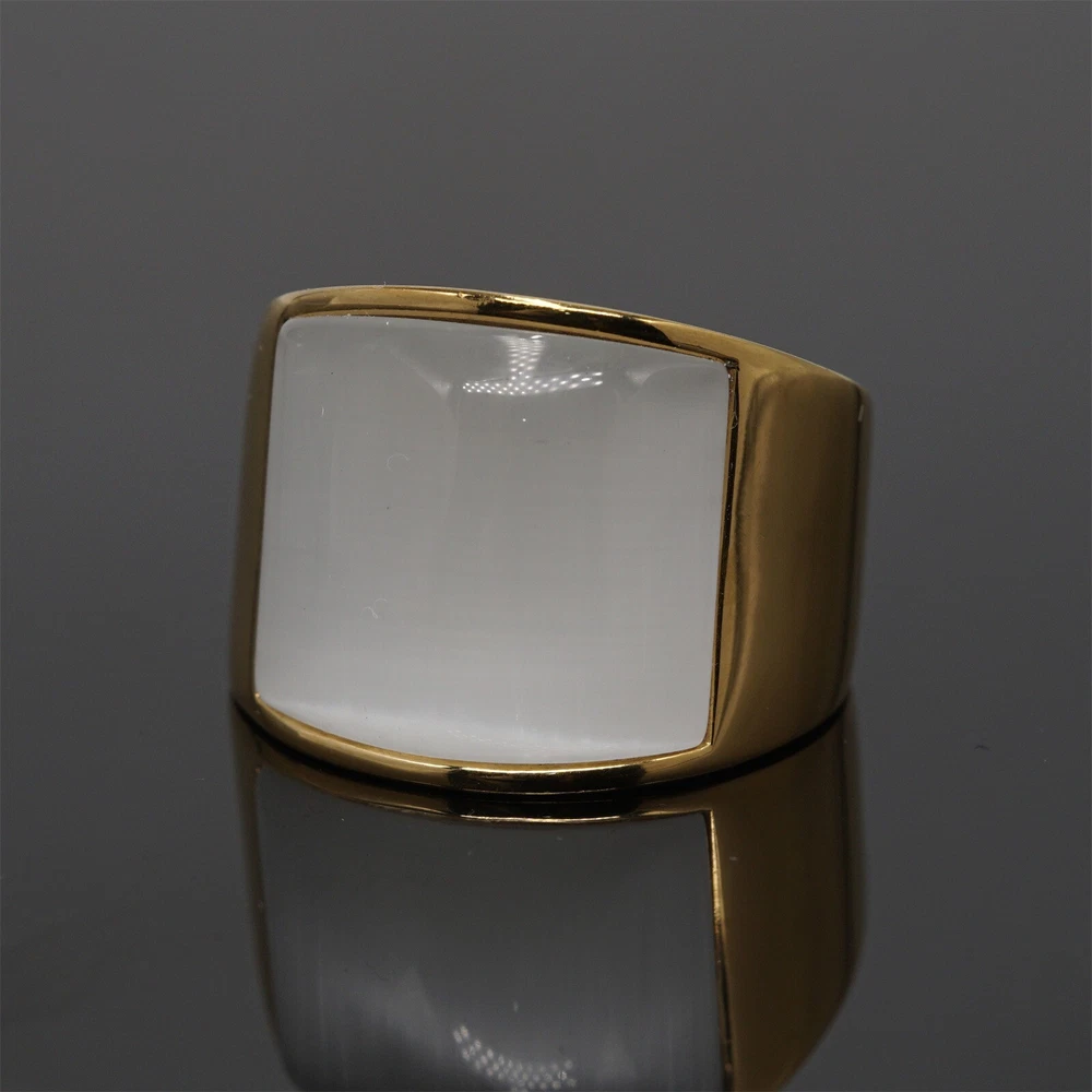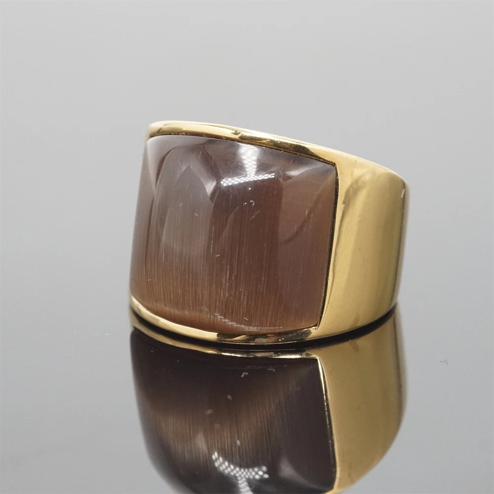 Band Brown Stone Ring Stainless Steel Wedding for Men Women Gold Plated Gifts