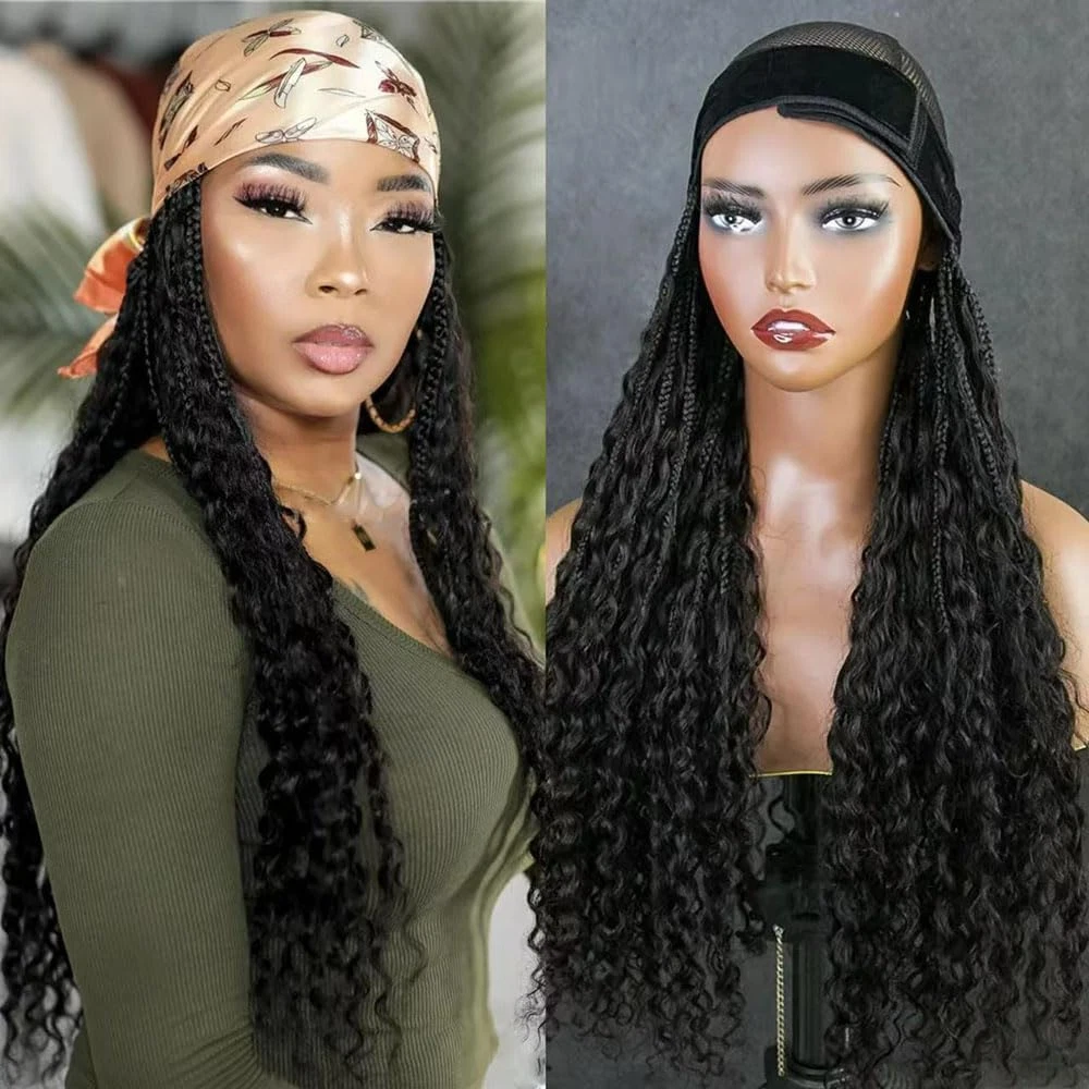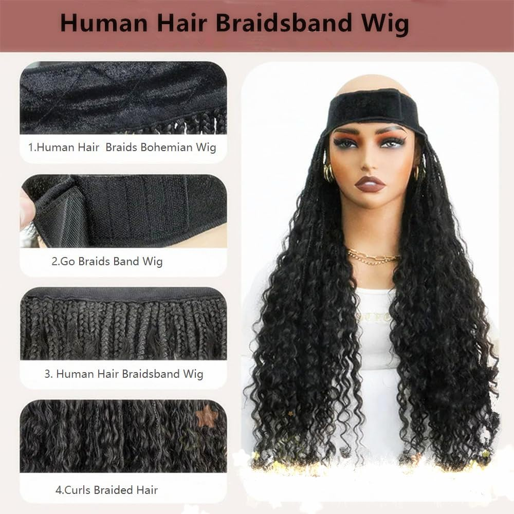 1. Versatile and interchangeable: The braid strap wig is the ultimate woven wig that effortlessly matches a hat, scarf, skullcap or beret for a complete look 2. Quick and easy makeover: perfect for busy days, bad hair moments, or special events such as weddings and parties. Change your look in minutes - no commitment required! 3. On-the-Go Convenience: Perfect for busy days, bad hair moments, or special events like weddings and parties. Transform your look in minutes—no commitment needed! 4. On and Go Convenience: Whether You’re Running Errands, Doing School Drop-offs or Heading Out For A Holiday, This Hairpiece Is Your Go-to Solution For Instant Style 5. Effortless Wear & Removal: Beginner Friendly, Save Time Easy to Install Light Weight Simply Put It On In Minutes And Take It Off When You're Done. Just Easy, Everyday Elegance Product Description Band Human Hair Wig Grab and Go Braids Band Wig Synthetic Braids with Human Hair Boho Style Curls Braided Hair Extensions For Women Natural Black Color Hair Type - Band Human Hair Wig Grab and Go Braids Band Wig Synthetic Braids With Boho Style Human Hair Curls Braided Hair Hair Material - Human Hair Curls With Synthetic Braids Cap Constructions - Band Human Hair Wig Band Human Hair Wig Grab perfect for busy days, bad hair moments, or special events such as weddings and parties. Change your look in minutes - no commitment required! Human Hair Braidsband wig Go Braids Band wig Braids band wigs feature adjustable straps, Save Time Easy to Install Light Weight making them easy to wear and secure. They are designed for comfort and convenience. They are beginner-friendly, allowing for quick application without the need for glue or clips.