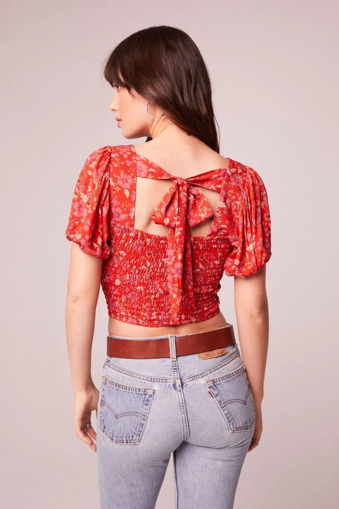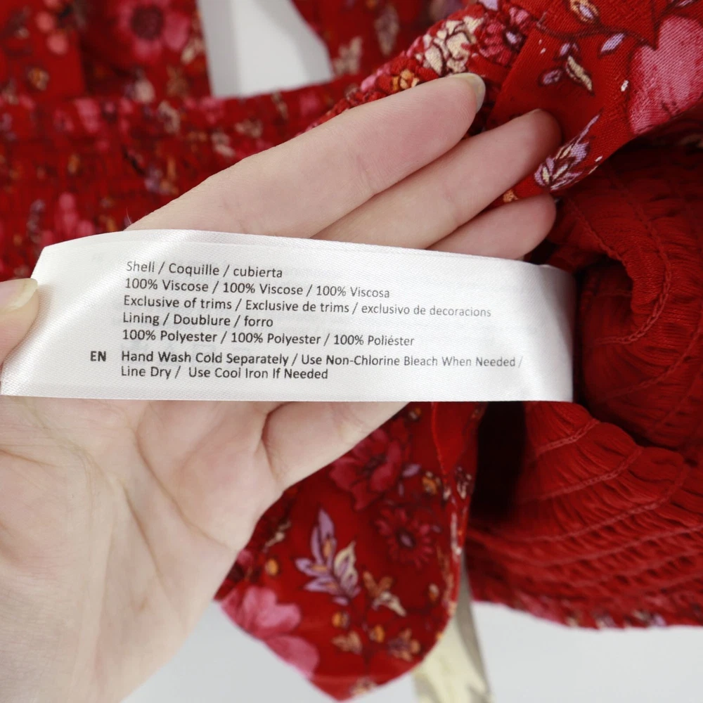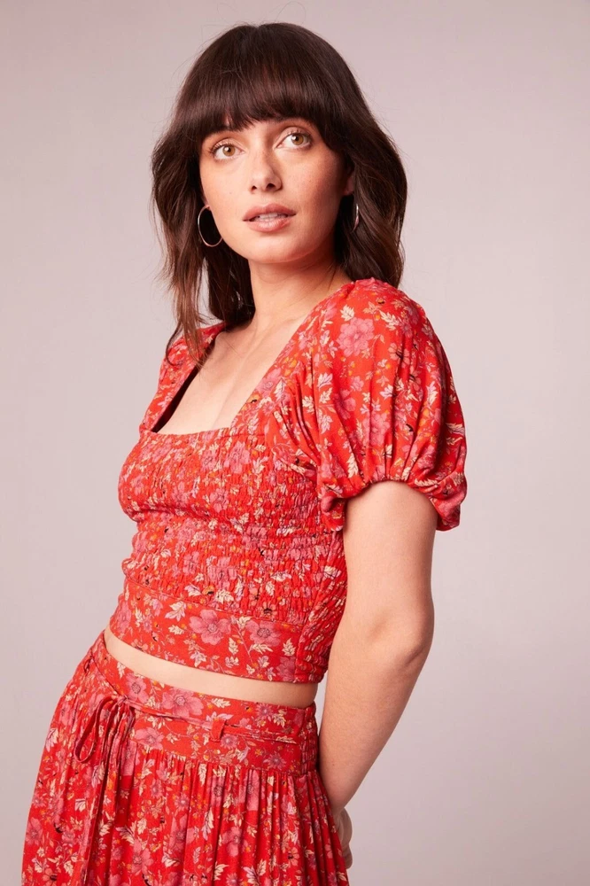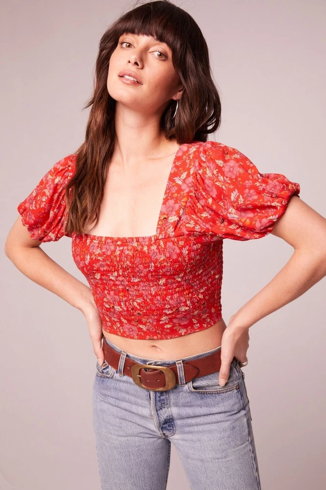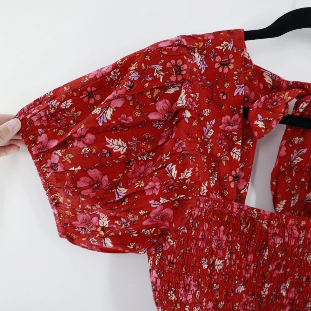 Band Of The Free Joelle Crimson Floral Smocked Top Women's Boho Bohemian Gypsy Sweet smocking covers the bodice of our stretchy Joelle top, framed by puff sleeves and finished with a tie back. This top is like your grandma's garden had a party on your shirt. It's got all the florals and puffs to make you feel like a bohemian queen, minus the crown. And if you get tired of compliments, just tie the bow tighter to block out the noise. • Smocked bodice • Elastic cuffs on sleeve • 100% Viscose • Hand wash, line dry • Puff sleeves for added flair • Back tie closure • Lightweight and breathable B.O.G Collective Band of Gypsies Features: • bohemian, boho, cottagecore, grannycore, flowy, hippie, paisley, festival, garden party, gypsy, witchy Condition: New With Tags
