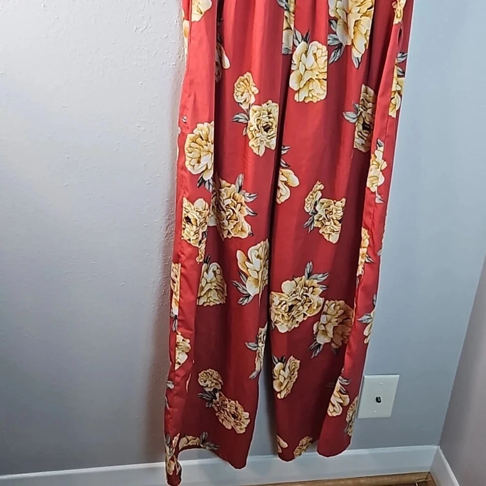 Bohemian floral jumpsuit Embrace bohemian flair with this Band of Gypsies peach floral jumpsuit. Perfect for casual outings or summer events. - Brand: Band of Gypsies - Color: Peach with floral pattern - Size: Medium - Features: Front pockets - Material: Lightweight fabric, perfect for warm weather - Condition: Good used condition, no notable damage - Care instructions: Machine wash cold, lay flat to dry