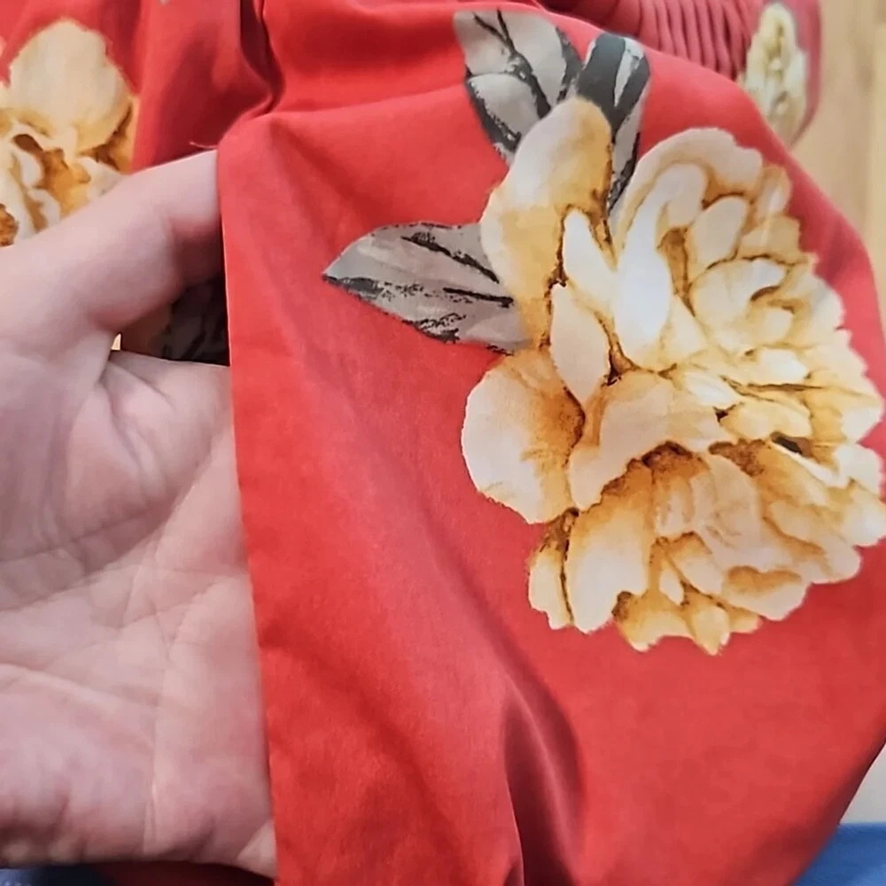 This jumpsuit is a dream! The lightweight fabric keeps me cool, and the peach floral print is so pretty. Love the front pockets—super handy. Fits perfectly and looks effortlessly boho-chic. Great for brunch or a summer festival. Washes well too!