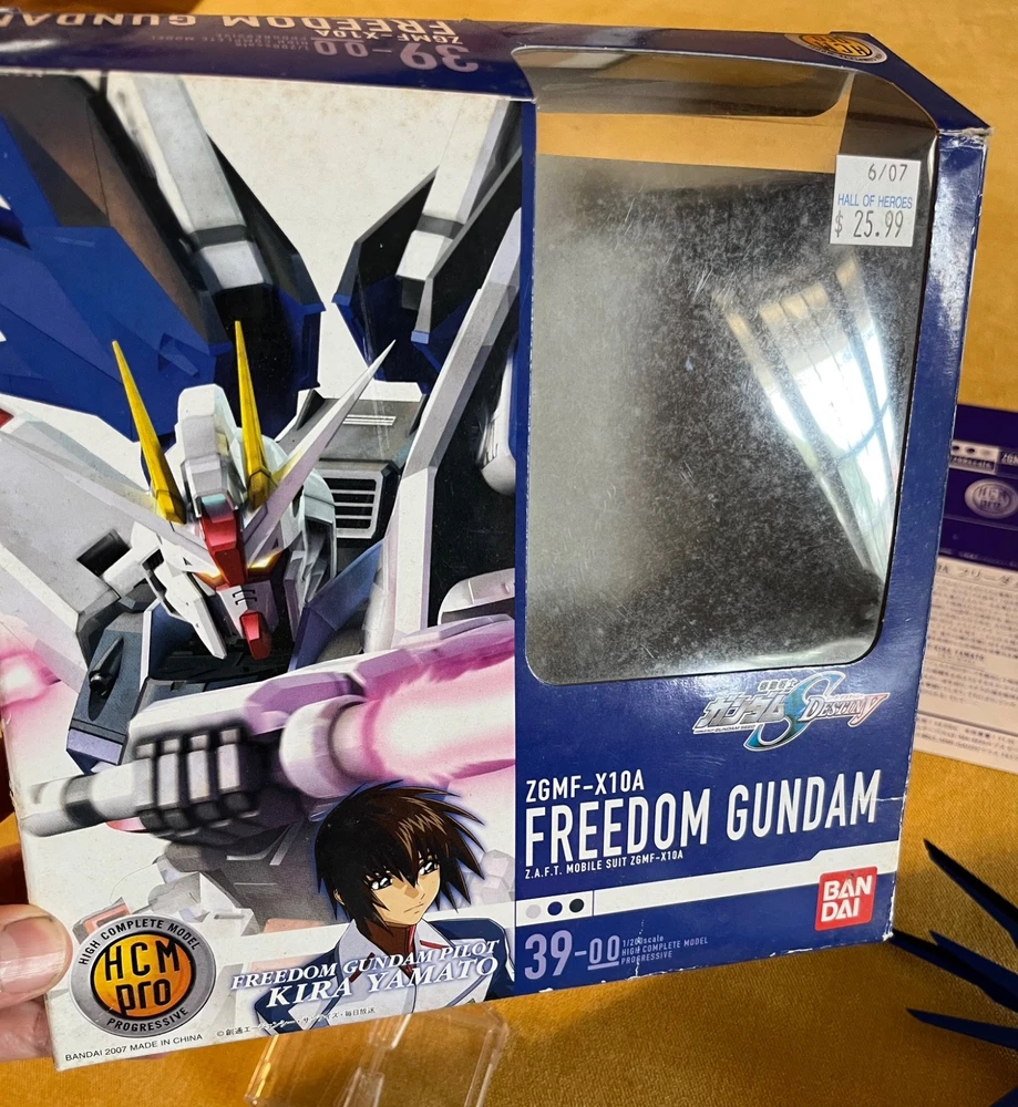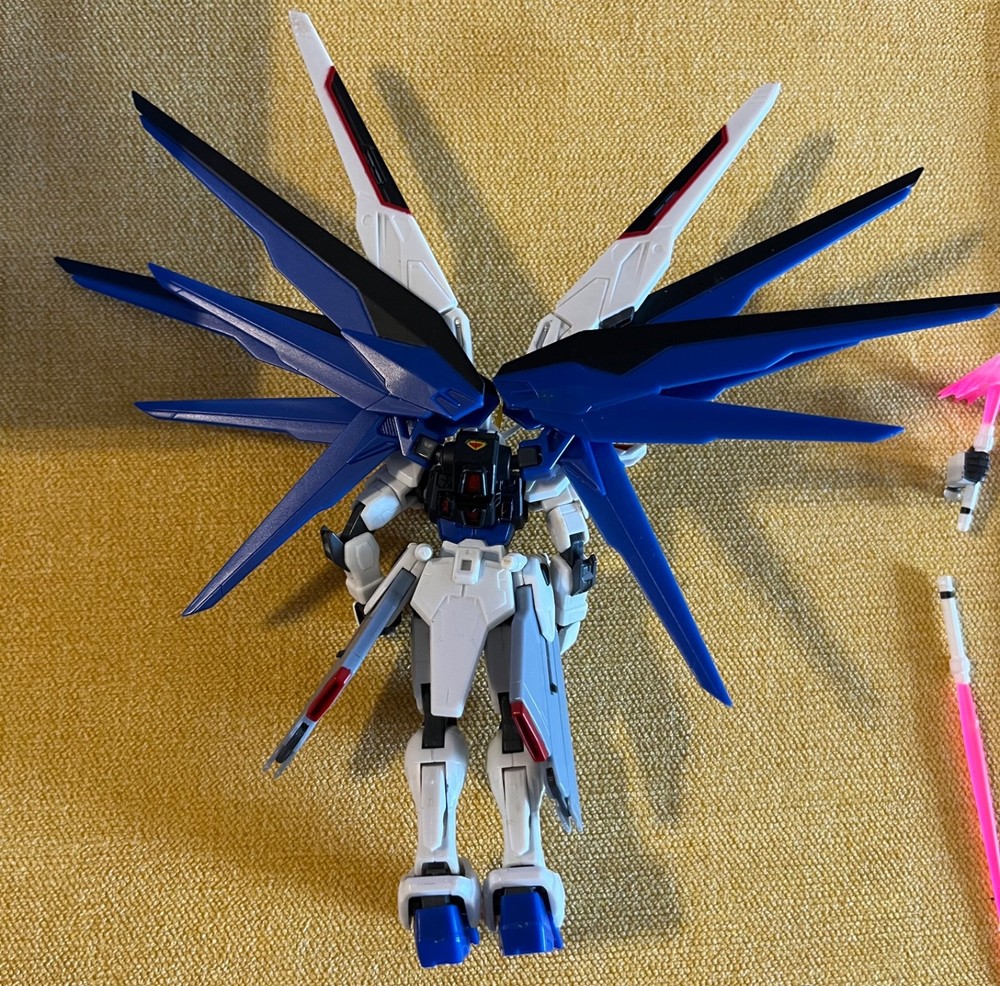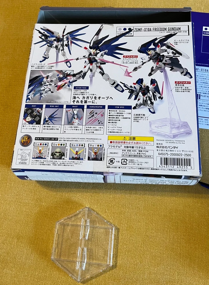 This Freedom Gundam model is awesome! Even though it's pre-assembled, the details are crisp and the articulation is solid. The box shows some wear, but the figure itself looks great—only missing the stand's clear piece. Love the bonus Gundam included, even without feet. Perfect for collectors who want a display-ready piece without building it themselves. Photos are accurate, so you know exactly what you're getting. Highly recommend!