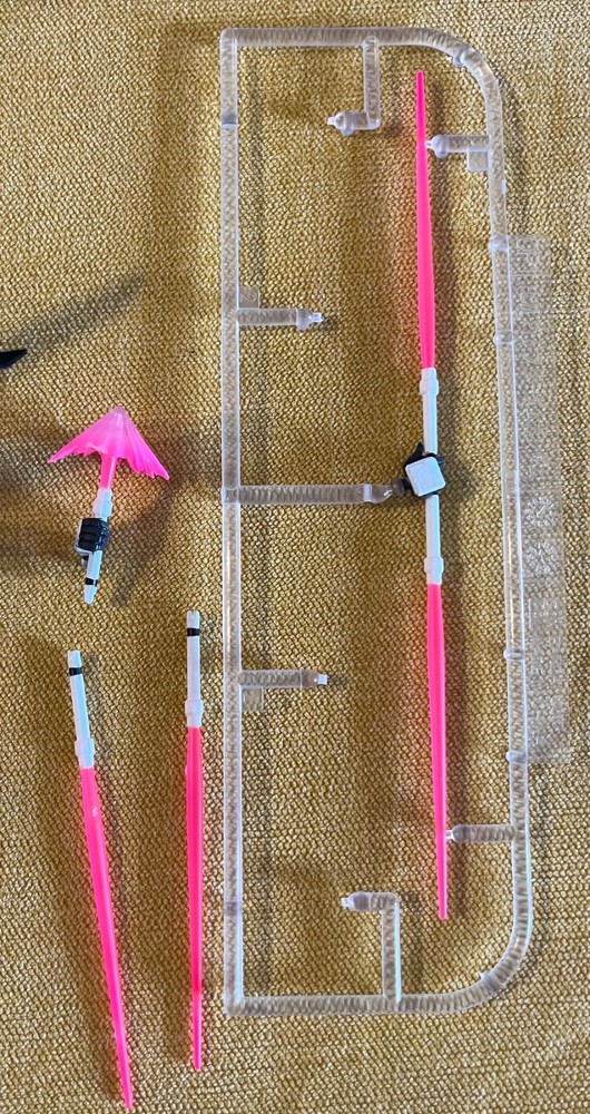 2007 Bandai Gundam model kit - already assembled. I believe its complete except for the vertical clear plastic piece for the stand. Box has wear and plastic insert is missing. Includes a bonus gundam from a different line. Bonus gundam is missing feet. Please see photos for condition.