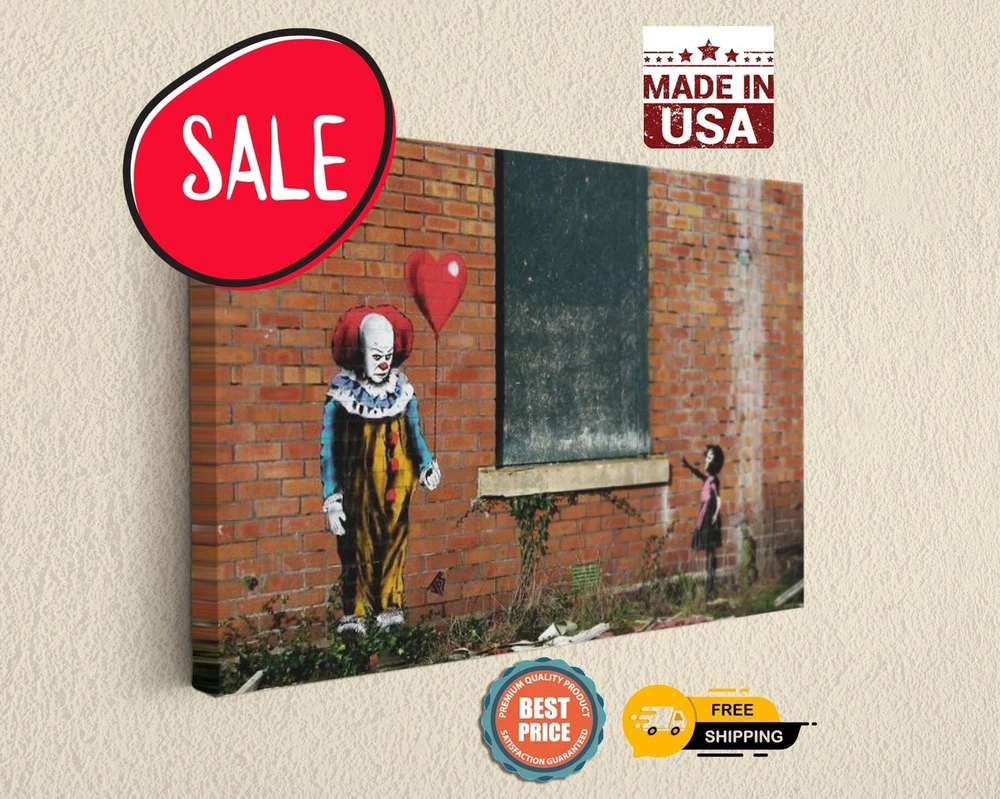Brand: Unbranded Type: Print Theme: Photography, Art, Clown Material: Canvas Subject: Clown Color: Red Artist: Banksy