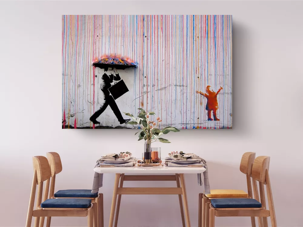 Banksy Colored Rain - Wall Art, Canvas Print, Home Decor