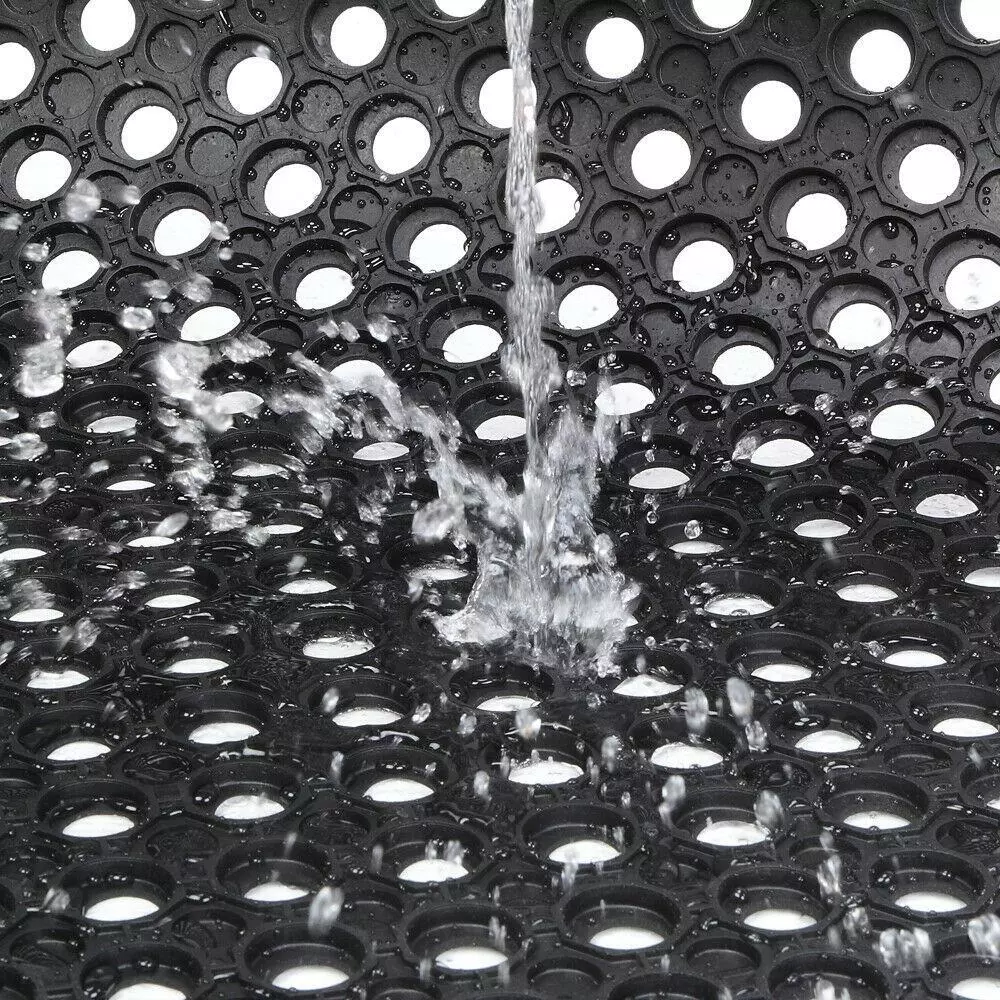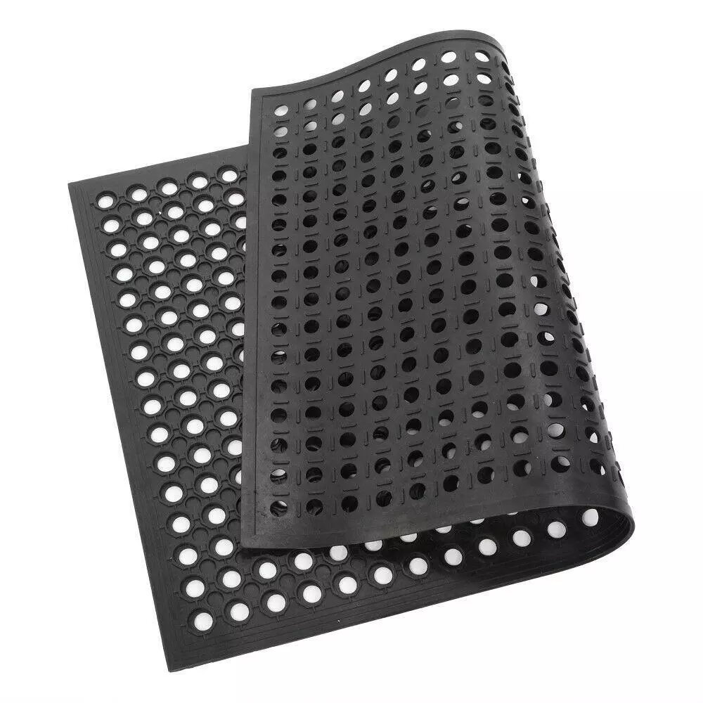 Introductions: The Bar Kitchen Industrial Multi-functional Anti-fatigue Drainage Rubber Non-slip Hexagonal Mat features large hexagonal drainage holes that help to reduce the amount of slippery liquids and oils left on the floor and prevent dangerous accidents. Hence, it is ideal for uses in bar, kitchen, restaurant, as well as warehouse or other industrial areas where moisture and heavy foot traffic are a problem. Made of high-grade, eco-friendly rubber, it is sustainable for long-lasting use. Even better, it is water resistant and easy to wash clean. Don't hesitate to buy now! It surely is worth your investment! Features: 1. Built with large hexagonal drainage holes 2. Reduce the amount of slippery liquids and oils left on the floor 3. Help to prevent dangerous accidents 4. Ideal for uses in bar, kitchen, restaurant, as well as warehouse or other industrial areas where moisture and heavy foot traffic are a problem 5. Made of high-grade, eco-friendly rubber, sustainable and durable 6. Water resistant and easy to wash clean Specifications: 1. Material: Rubber & Polyester & PVC 2. Color: Black 3. Dimensions: (35.43 x 23.62)" / (90 x 60)cm (L x W x H) 4. Weight: 5.73lbs / 2.6kg Package Includes: 1 x Floor Mat