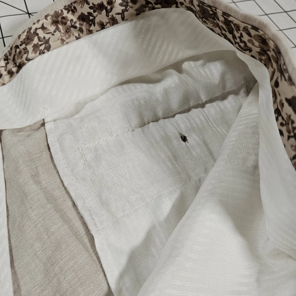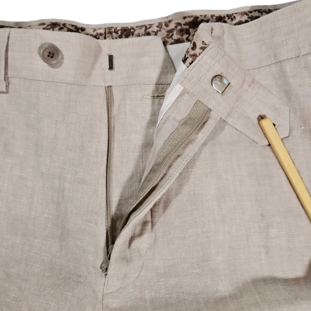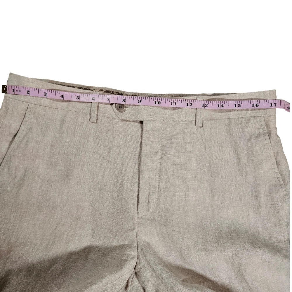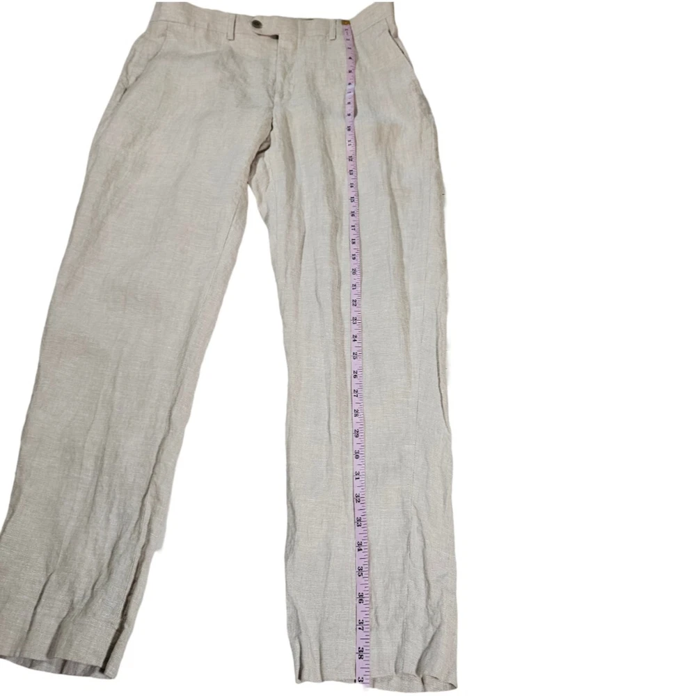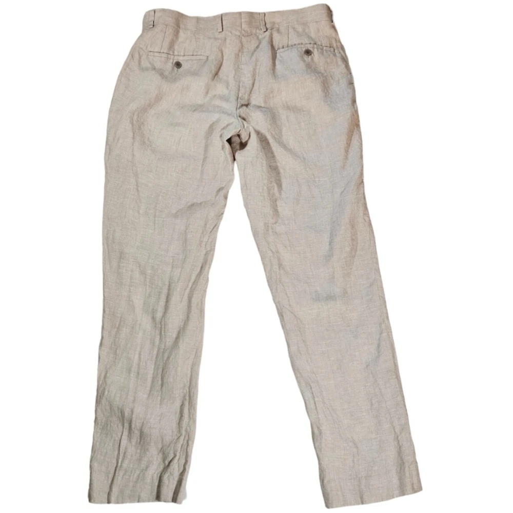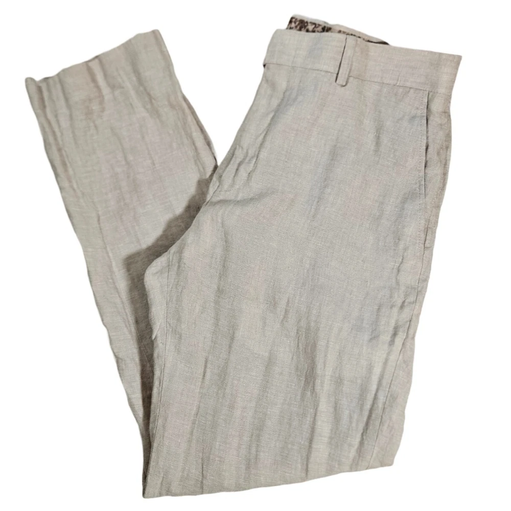 These Are In Excellent Condition, Slash Pockets In Front, 2 Back Button Closure Pockets, Zip Fly With Button And Hook Closure, Flat Front, Natural Linen, Lined Pockets