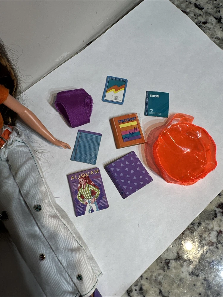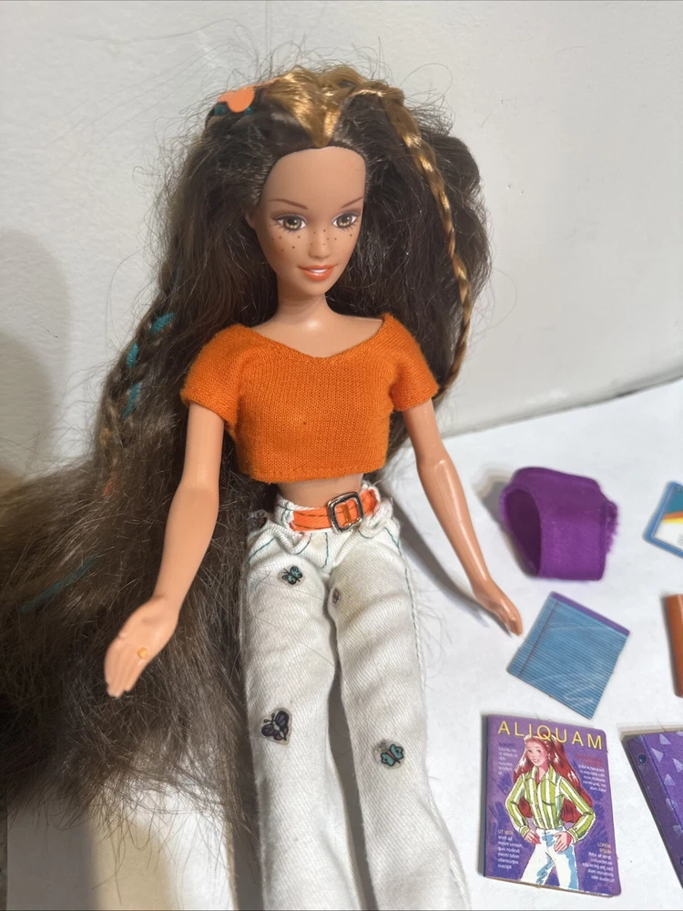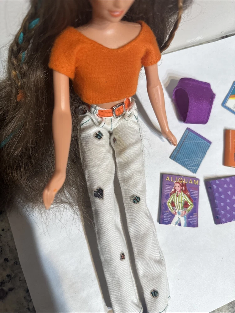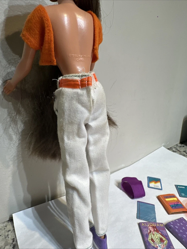 Some minor wear, stains on pants, missing top still in excellent condition This is a vintage Barbie doll from 1996, featuring Courtney Friend of Skipper. The doll has dark brown hair, straight and varying in length, with a medium complexion and brown eyes. It is a special edition pink label nude doll, with only one piece available, and it is a girl doll. The doll is 12 inches long and weighs 1 pound, and it is made of vinyl and plastic materials. This Barbie doll is perfect for collectors or for all occasions, and it is an original Mattel product. The doll is not personalized and is not signed, but it is a rare find with only one piece available. The doll's ethnicity is Caucasian, and it is a fashion doll type, with features that make it stand out from other dolls. This Barbie doll is a must-have for anyone who loves collecting dolls or for those who want to relive the 90s.