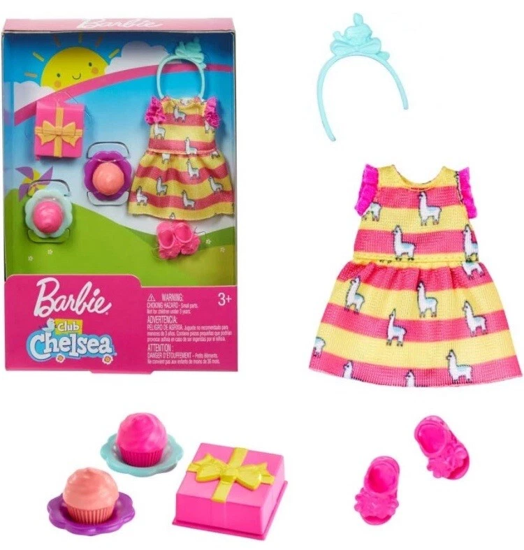 Rare find!!! Lot of 4 (1 doll 3 fashion packs) Barbie Mattel GLN70 Beach Doll Chelsea in Shell Design Blonde hair Blue eyes. Swim suit is not removable Barbie Chelsea Birthday Themed Fashion Pack Shipping costs includes supplies plus postage