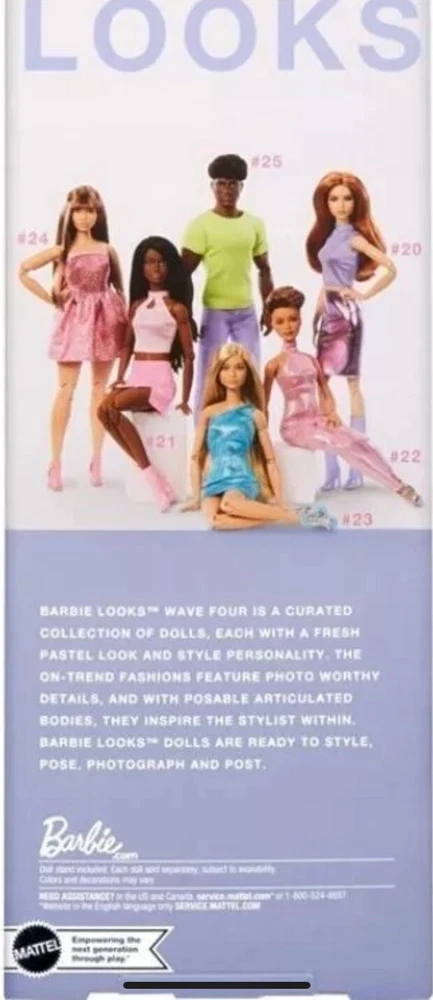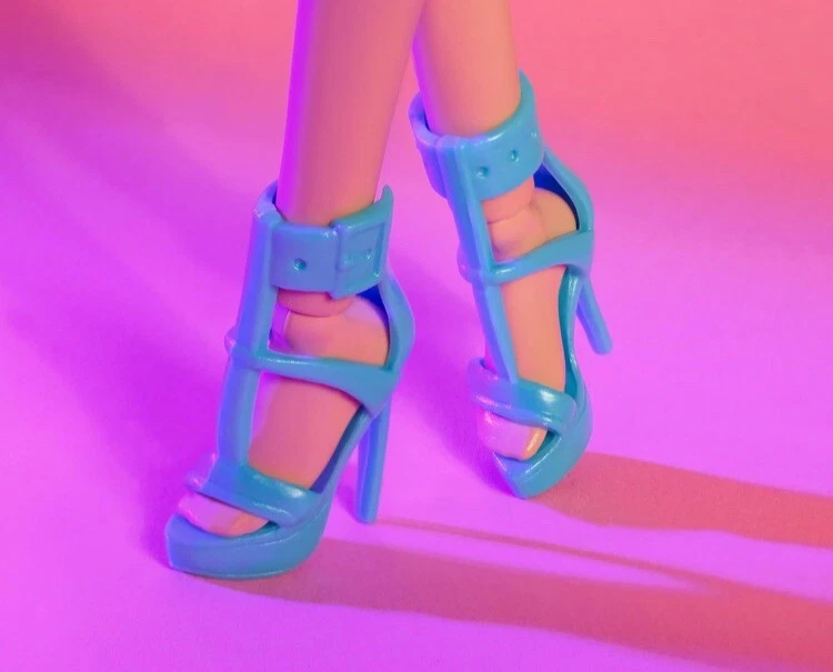Modern Y2K Fashion, Metallic Blue One-Shoulder Dress with Strappy Heels from Barbie Looks Doll No. 23 Outfit has been never been played with. It was only removed from the doll and repackaged in a Barbie plastic zipper bag