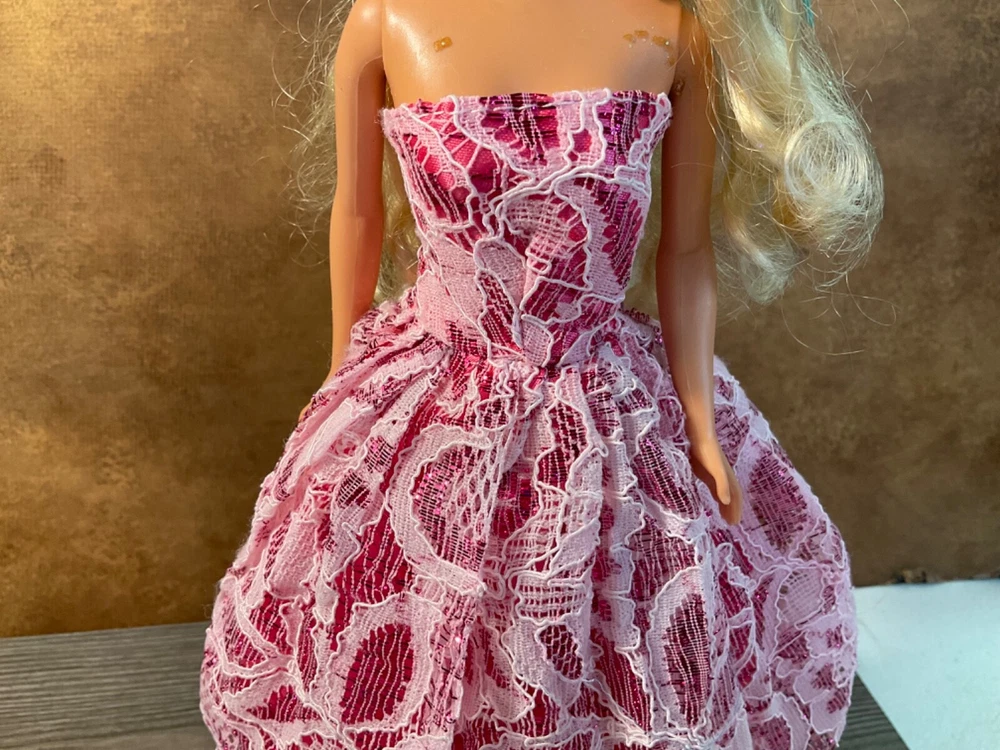 Barbie Gown Outfit This set for Barbie Includes A strapless pink and lace gown A pair of shoes are included Set is in Nice Condition ***Please don’t hesitate to make an offer!*** ***Buy It Now : $ 4.50 *** OR Best Offer ***Shipping: $ 4.50*** ***Happy to combine shipping for you*** *** Please let me know if you have any question, Happy to help in any way I Can*** ****Please , if you have the time check out my newly opened eBay store. I will be listing many Barbies, clothing, & accessories. As rims goes on I hope to add more fun collectible and vintage items. Like my store to see my newly listed items. Thanks so much!