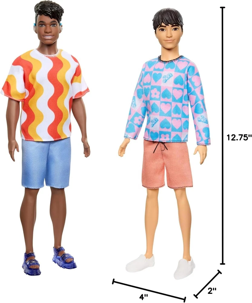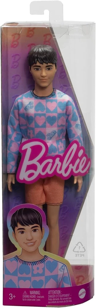 Barbie Fashionistas Ken Doll #219 with Slender Body Wearing a Removable Long-Sleeve Pink & Blue Patterned Shirt & Pink Shorts Product Details Designed to reflect the world kids see today, Barbie Fashionistas dolls feature a wide variety of skin tones, eye colors, body types and fashions, as well as hair styles, colors and textures. Ken fashion doll wears a colorful patterned shirt with trendy hearts, flowers and Ken logo, paired with peach shorts. He has a slender body and black hair sculpted into a cool style. White boat shoes finish off the fun look. With endless styling and storytelling possibilities, Barbie dolls make a great gift for fans, collectors and kids 3 years and older! Barbie Fashionistas Ken dolls celebrate diversity and offer endless possibilities for storytelling and fashion exploration. With an inclusive range of looks, kids can see how fun it is to express personality through style! And featuring today's coolest trends, Ken dolls make a great gift for fashion-loving kids everywhere. Each sold separately, subject to availability. Dolls cannot stand alone. Colors and decorations may vary.