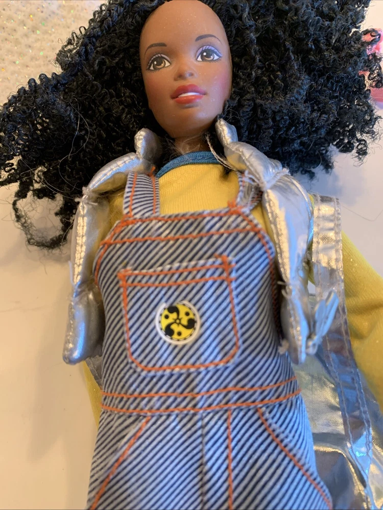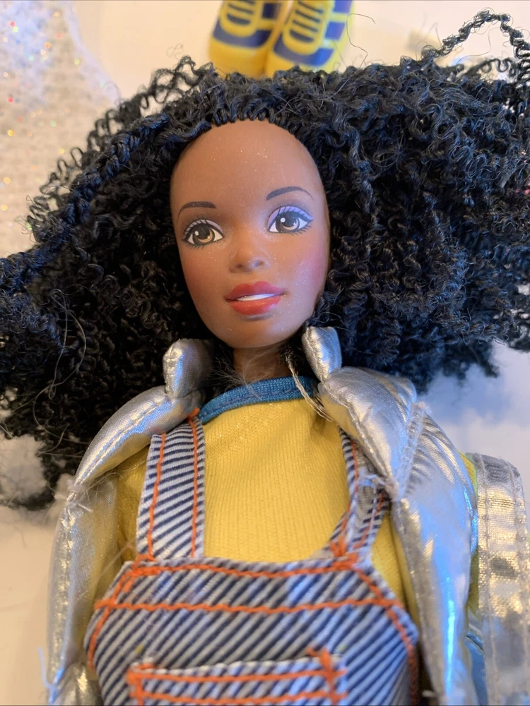 Embrace the nostalgia with the Barbie Generation Girl Nichelle doll, a cherished collectible from Mattel, complete with fashion-forward attire and accessories. This 1999 ensemble features Nichelle dressed in casual attire, including a fashionable vest, overalls, and a coordinating dress, all complemented by a backpack and shoes that perfectly capture the essence of the era. Designed for the 11-inch fashion doll, this outfit set is a testament to the African American character's timeless style. It's an original piece from the 1990-1999 time period, offering a glimpse into the fashion and beauty themes that Barbie represents. This doll, clothes, and accessories set is a must-have for collectors and fans of the iconic brand, making it an exceptional find for anyone looking to add a touch of the late '90s to their collection. Has rollers, blow dryer, mirror, hairspray, case, White dress, with white heels, Water bottle Backpack