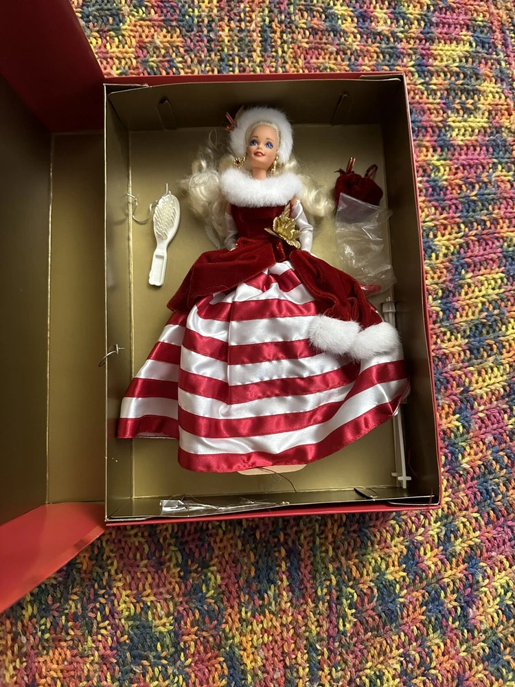 Barbie Peppermint Princess Doll Limited Edition 1994 Mattel 13598 In great pre-loved condition. Is missing one red shoe. Comes with one red shoe, red purse, white brush, and stand. The inner box is separating from the glue due to age. Sold as is. Please look at photos for more details on the condition of the doll and box. I have more limited edition Barbie’s in my shop! Bundle for deals! Message me if you have any questions!