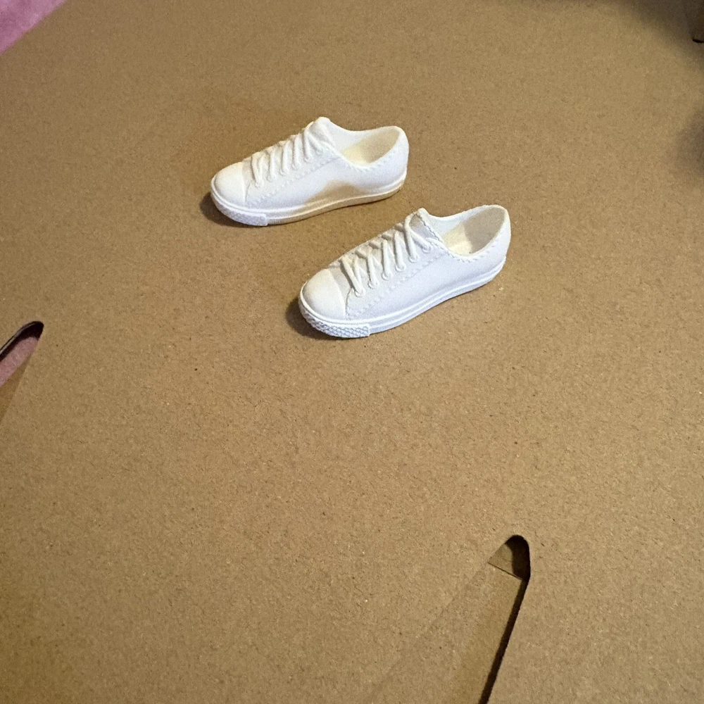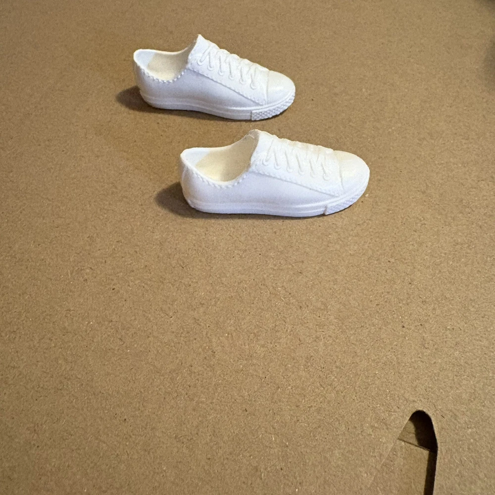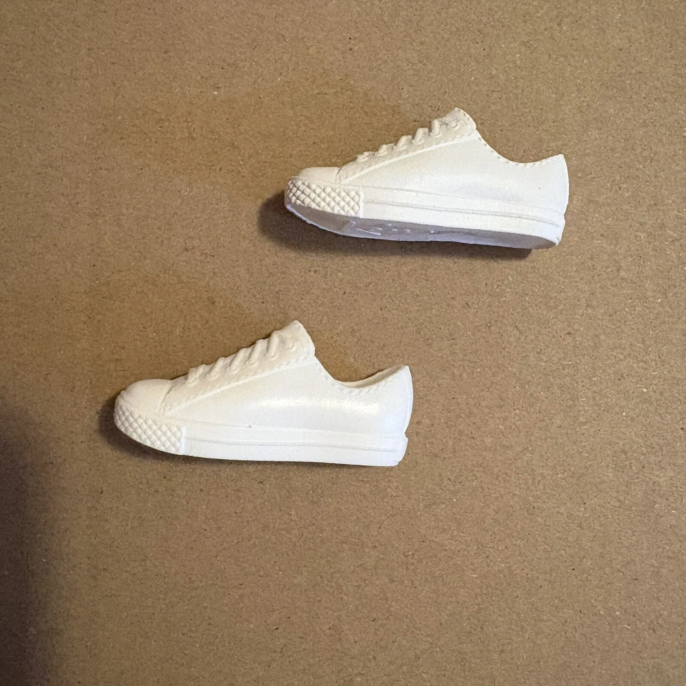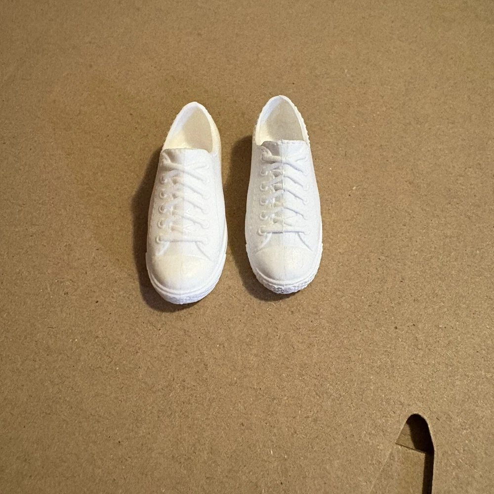 The Barbie RBD Diego Ken Doll comes with a pair of white sneakers or Chucks designed for the fashion doll. Released in 2024 as part of the RBD franchise, this set includes two shoes made of vinyl material. The doll represents a Hispanic/Latino ethnicity and is a male character named Diego. The shoes are compatible with 12-inch dolls and are an original product manufactured by Mattel under the Barbie brand.