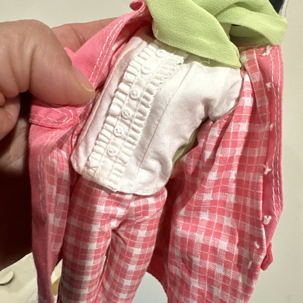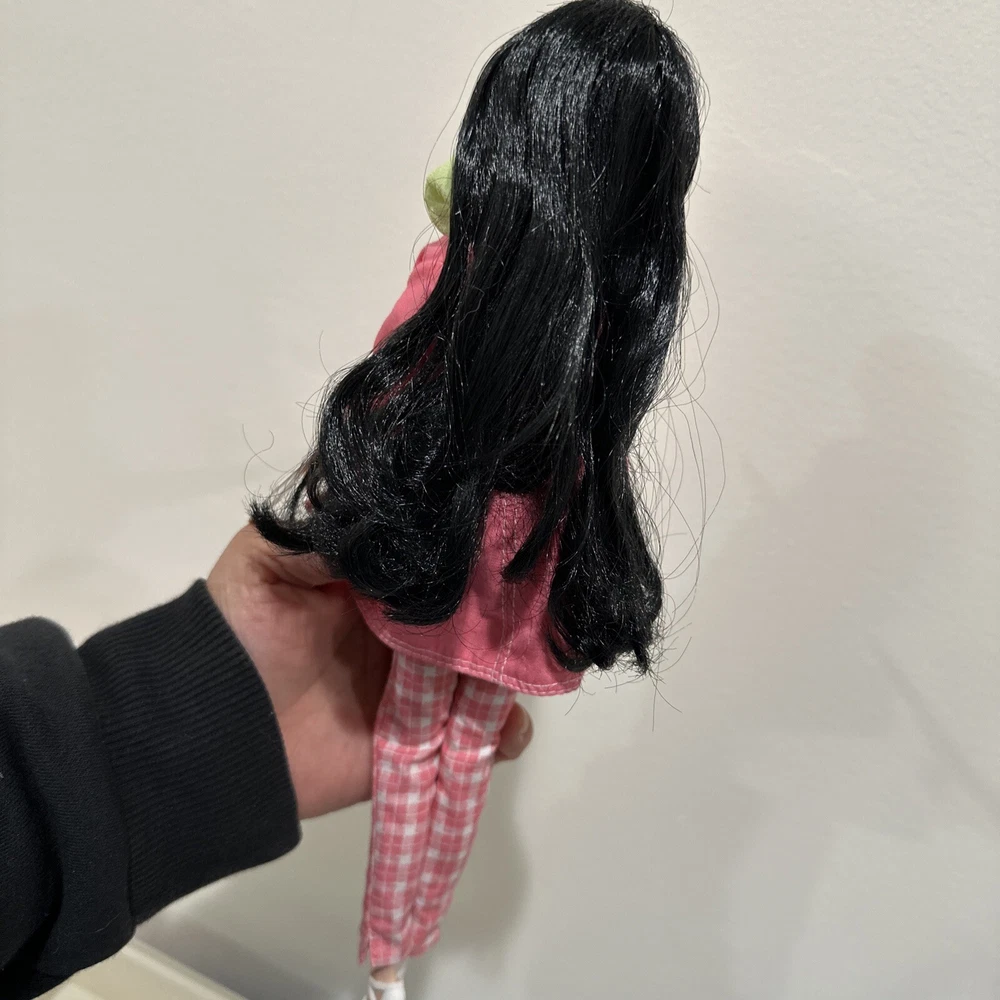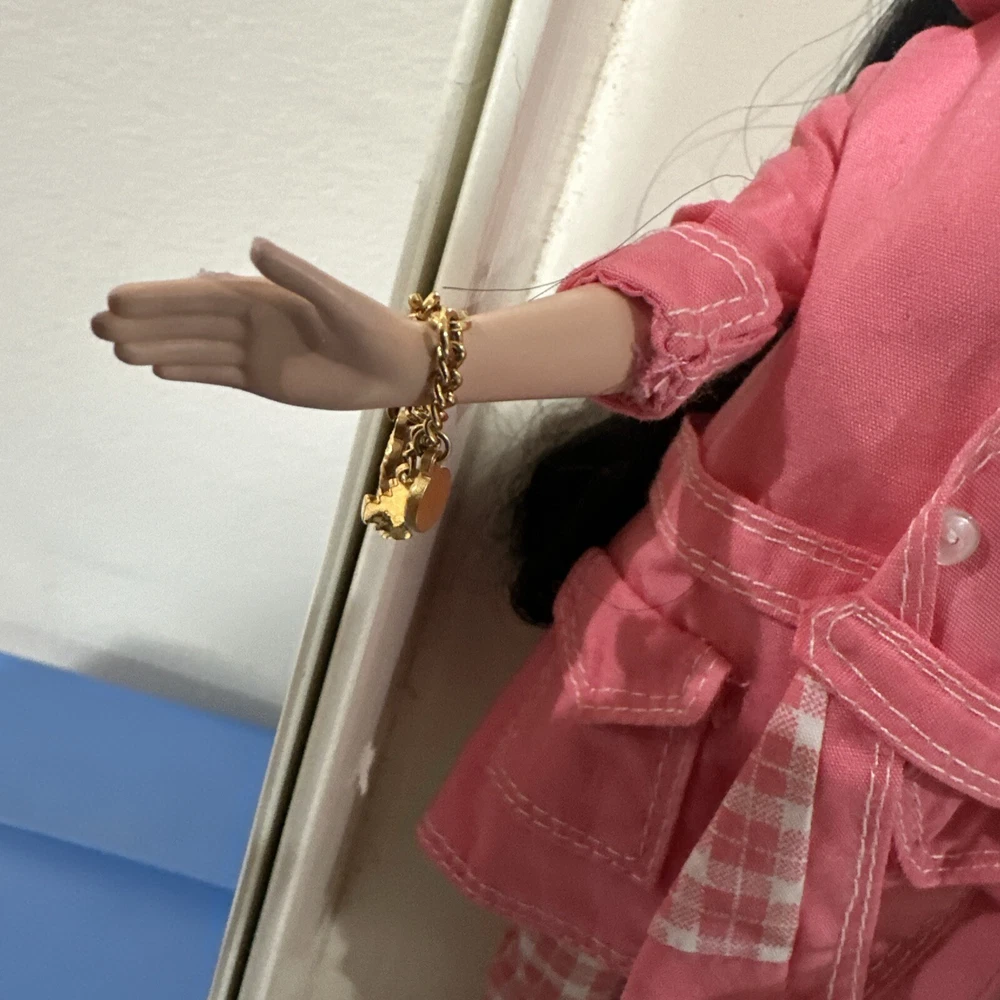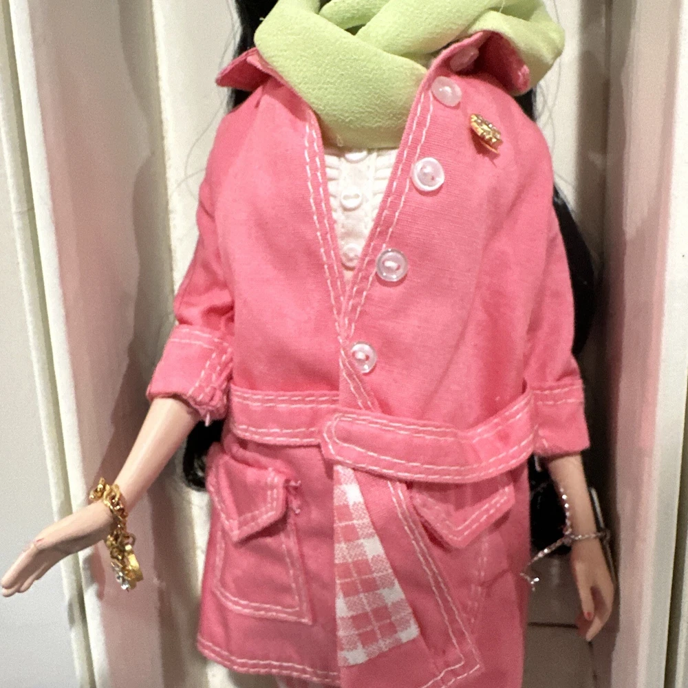 Introducing a rare and limited edition Barbie Silkstone doll with stunning black wavy hair and grey eyes. This doll is part of the Silkstone product line and comes with a unique and rare country-bound outfit. The 11-inch doll is anatomically correct and has a light complexion. It was manufactured in the 2000s and is an original by Mattel. This doll is a must-have for collectors and Barbie enthusiasts alike. Its retired status makes it a rare find and the perfect addition to any collection. The packaging is original with certificates. Don't miss out on the opportunity to own this one-of-a-kind Barbie Silkstone doll. PLEASE NOTE: she doesn’t have her original lingerie . She will come with the outfit shown. Bag its peeling apart( please check pictures) also i think the sunglasses are from other set. Rest like scarf, jewerly and hat correspond to the country bound. Mattel - Barbie - Fashion Model - Country Bound - Outfit Description Fashion Model - Country Bound is an outfit from the Barbie Limited Edition line. The outfit was produced by Mattel in 2002. Release date: 4/1/2002. The outfit was designed by Robert Best. MPN: 55499. UPC: 0 74299 55499 5. The outfit fits Silkstone body. The set includes blouse, coat and pants.