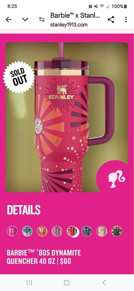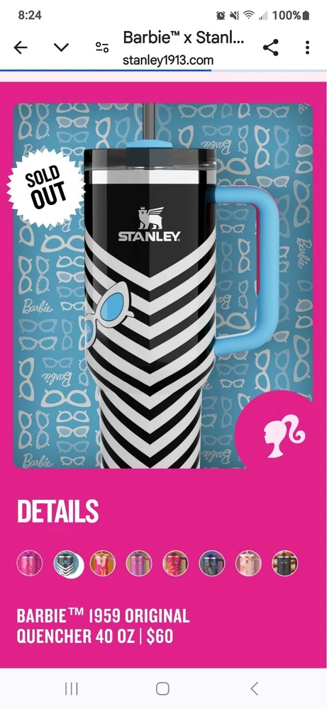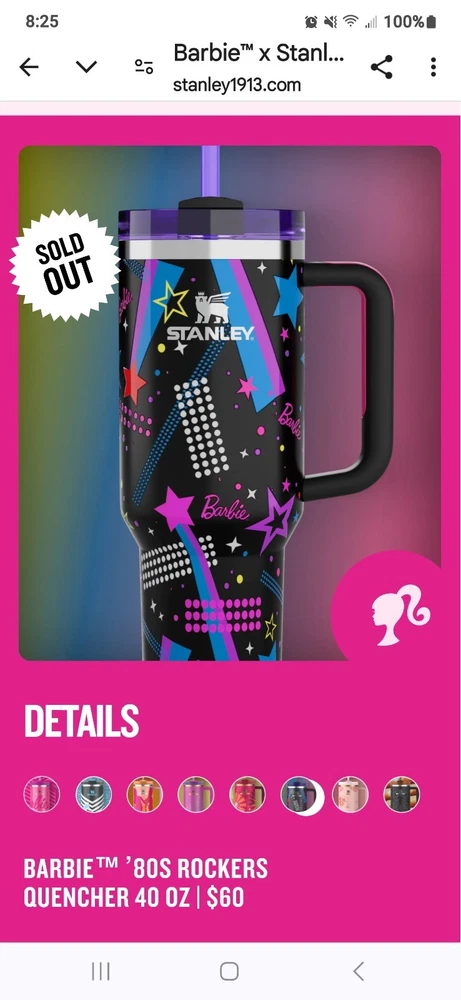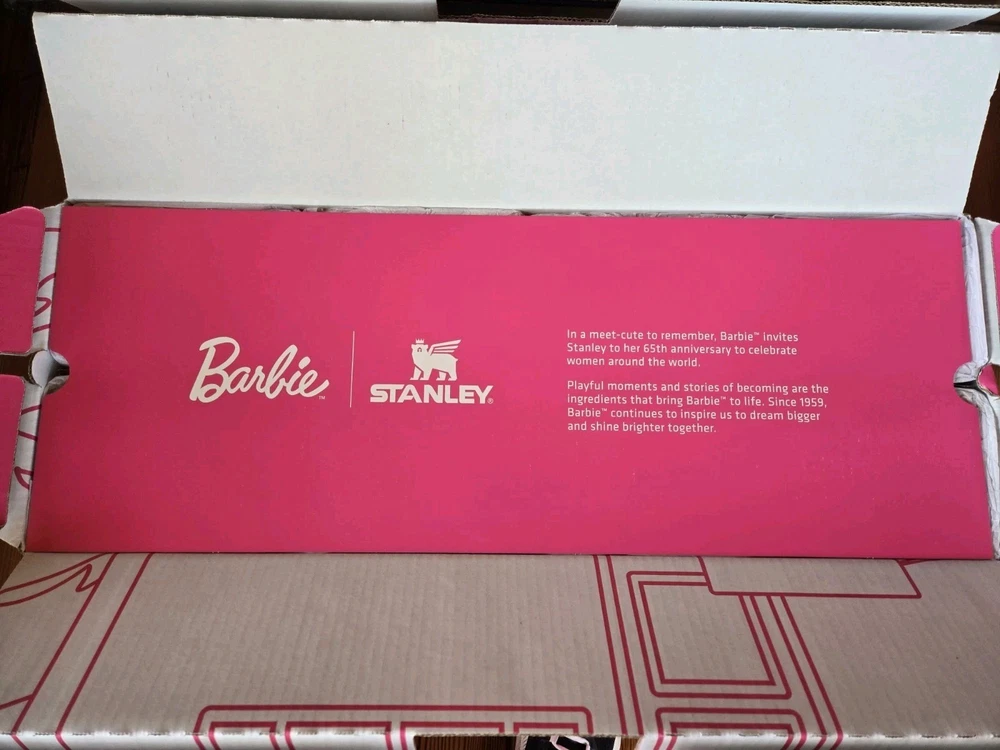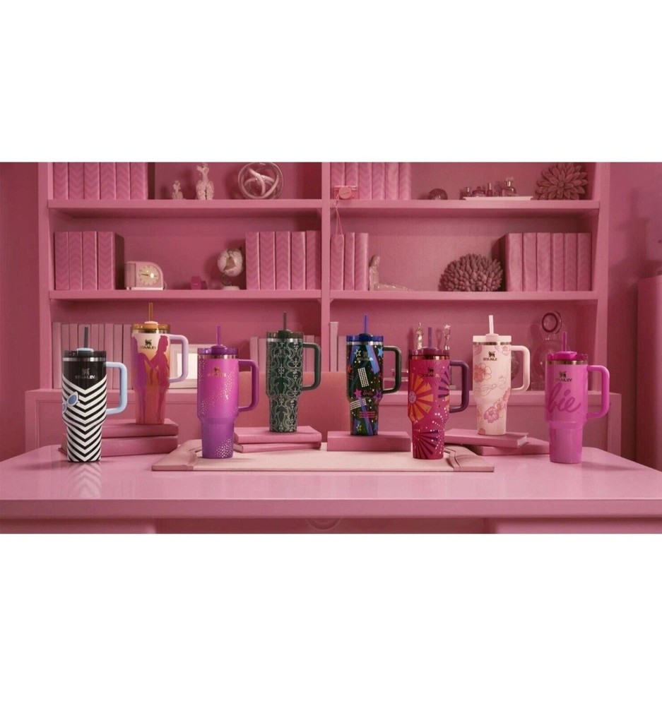 This product is a set of 8 Barbie Stanley Quencher Tumblers, featuring the collaboration between Barbie and Stanley. The tumblers are multicolored with a Barbie character design, perfect for fans of cartoons, TV, and movie characters. Each tumbler is brand new and never opened, making it a collectible item for Barbie enthusiasts and fans of unique kitchenware. Enjoy a fun and colorful way of serving your favorite drinks with this exclusive collection.