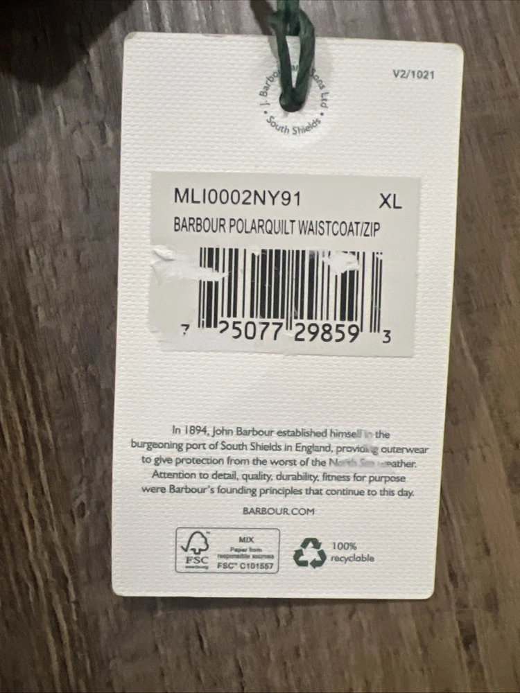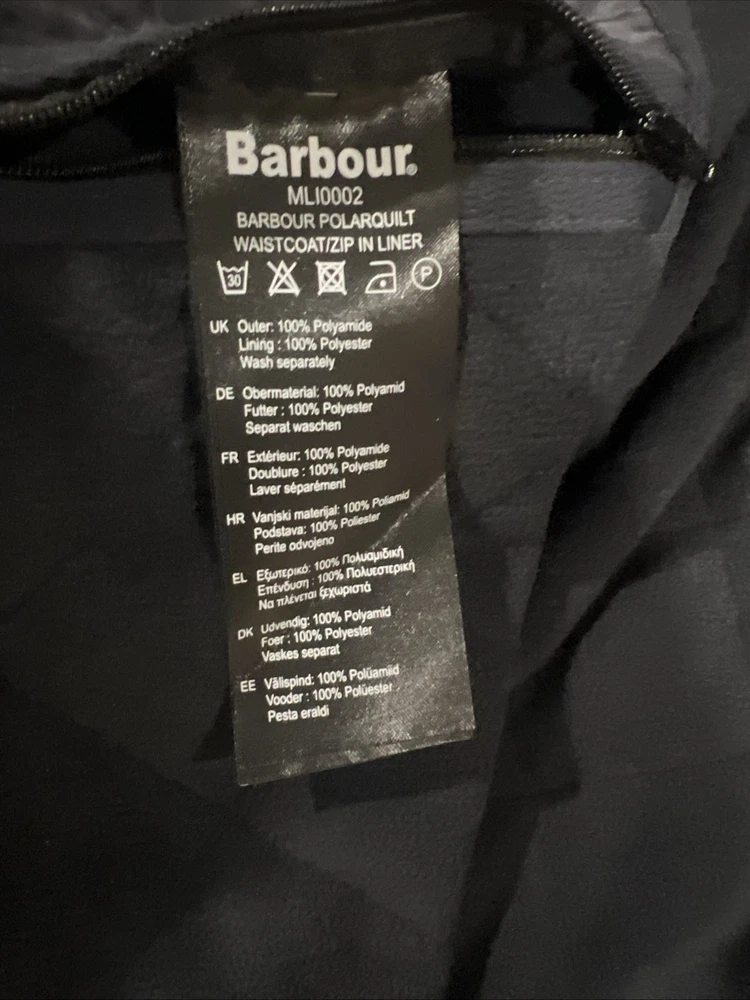 Barbour Polarquilt Waistcoat Zip-In LinerMLI0002-Ny91 Navy Mens Size XL NEW! New Tags See Pictures for Details and Measurements No Returns