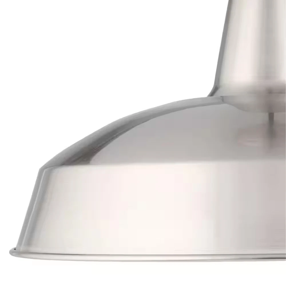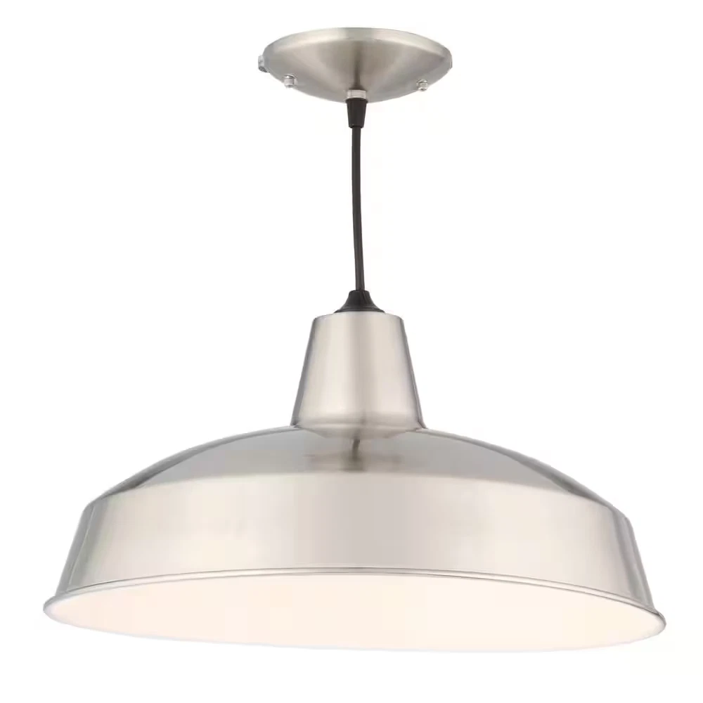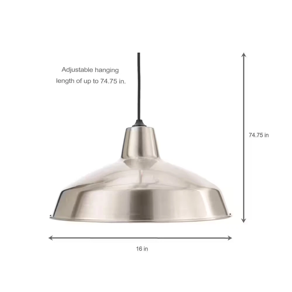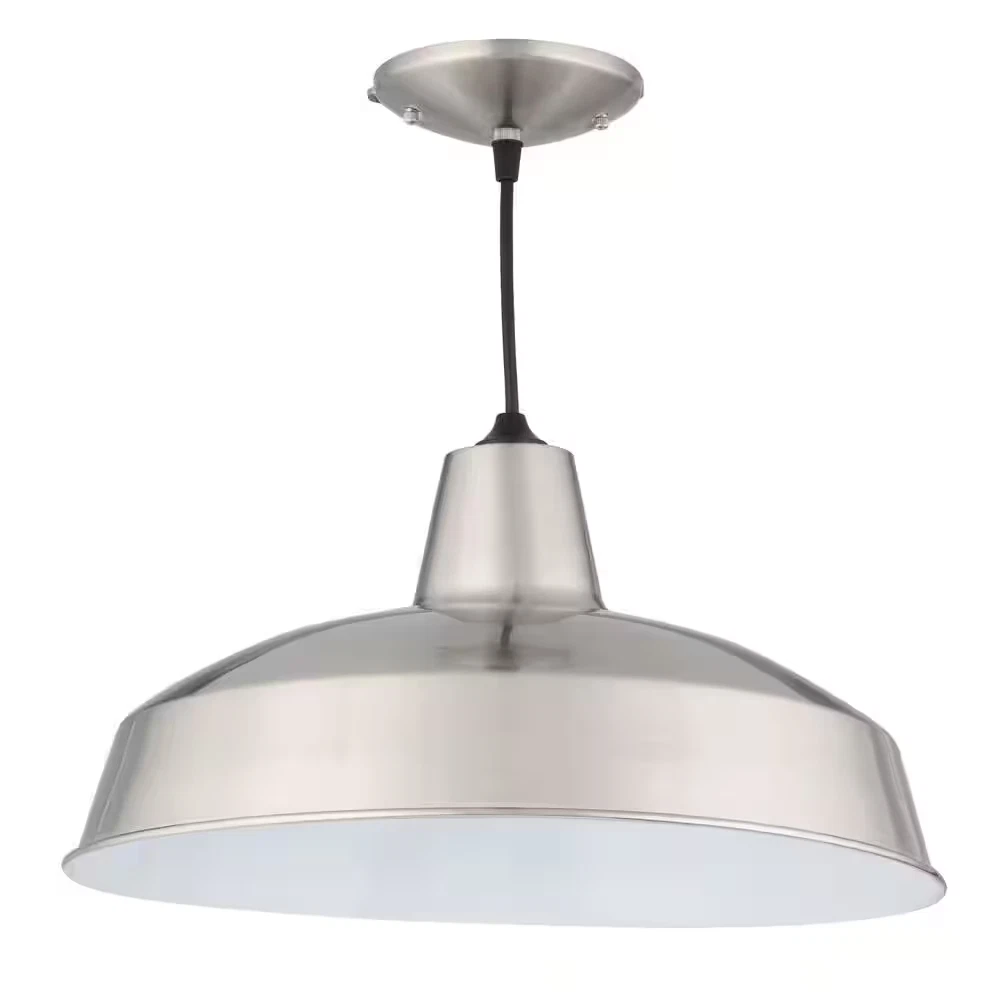 Store New Arrivals Add to Favorite View Feedback Contact Barn Pendant Light Industrial Rustic Style Farm Warehouse Adjustable Hanging Description Chandelier/Pendant Design Shaded Compatible Bulb Type CFL,Incandescent,LED Damp/Wet Rating Dry Rated Decorative Accents No Decorative Accents Dimmable Capability Dimmable Features Adjustable Hanging Length,Dimmable,Sloped Ceiling Adaptable Fixture Color Family Silver Fixture Color/Finish Brushed Nickel Fixture Material Metal Fixture Shape Dome Hanging Device Wire Included Mounting Hardware Included Light Bulb Base Code E26 Light Bulb Type Included No Bulbs Included Light Direction Down Location Use Dining Room Max Bulb Wattage (W) 100 W Minimum Hanging Length (in) 74.75 in Number of Lights 1 Power Source Hardwired Product Weight (lb) 2.72 lb Recommended Light Bulb Shape A-Shape Recommended Light Bulb Shape Code A19 Returnable 90-Day Shade Color Family Silver Shade Material Other Shape Bowl Style Rustic Volt (v) 120 Manufacturer Warranty Five Year Limited Warranty Chain Length (in) 66 in Fixture Depth (in) 16 in Fixture Height (in) 8.7 in Fixture Weight (lb) 2.72 lb Fixture Width (in) 16 in Maximum Hanging Length (in) 74.75 in Mounting Plate Height (in) 1.14 in Mounting Plate Width (in) 4.88 in Uses one 100-Watt bulb , sold separately Adjustable hanging length of up to 78 in. Attractive brushed nickel finish will work in a variety of spaces The Hampton Bay 1-Light Brushed Nickel Warehouse Pendant is ideal for a wide variety of spaces and decor. Featuring an attractive brushed nickel finish, this functional and stylish pendant will provide plenty of bright and even illumination in living rooms, garages, dens and wherever your imagination leads you. Easy to maintain and easy to install, pair with other brushed nickel pieces from Hampton Bay for a custom and polished look. Adjustable hanging length of up to 74.75 in. Brushed nickel finish complements a variety of decor styles UL listed Uses one 100-Watt incandescent light bulb (not included) Hardware included for ease of installation Pendant interior is white for better light distribution Can also use an LED or CFL equivalent bulb ABOUT US We offer the best prices around on high quality products. Our E-store includes tools, general home, garden items and more. SHIPPING We are always working hard to ensure your package arrives as soon as possible. Please understand that some factors like weather, high postal traffic, and the performance of shipping companies are outside of our control. We offer free shipping to the lower 48 states and ship within 4 business days of payment, usually sooner. We do not accept P.O. Boxes. Please provide a physical address. RETURNS We offer a 30-Day Return Policy on items which you are not completely satisfied with. You have the option for a full-refund or an exchange of the item. No returns are available on items shipped outside of the USA. PAYMENT We accept PayPal. CONTACT US This page content is yet to come Please ad us to your favorite seller and visit again later Thank You CUSTOMER SATISFACTION We try our very best to make sure every customer is completely satisfied. If there's a problem, message us! We're happy to help. WE ACCEPT Copyright © 2017 AutoDs. | All Rights Reserved