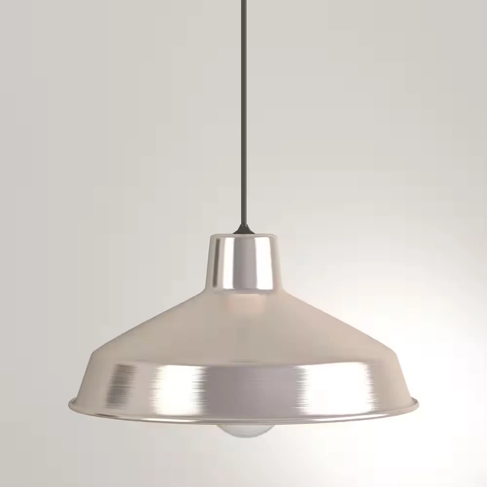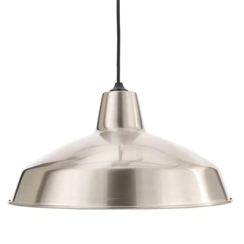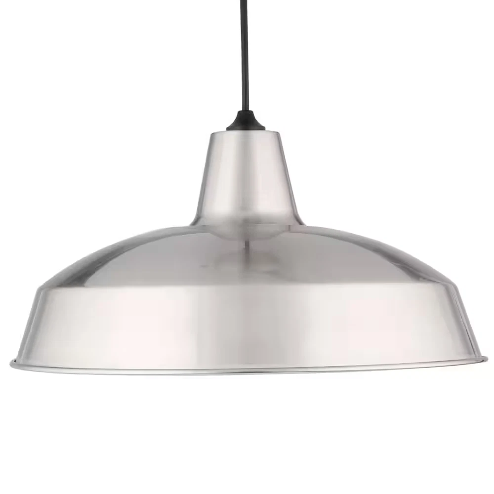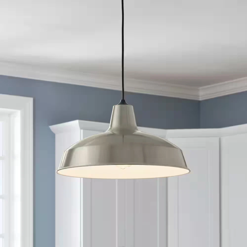 Store New Arrivals Add to Favorite View Feedback Contact Barn Pendant Light Industrial Rustic Style Farm Warehouse Adjustable Hanging Description Chandelier/Pendant Design Shaded Compatible Bulb Type CFL,Incandescent,LED Damp/Wet Rating Dry Rated Decorative Accents No Decorative Accents Dimmable Capability Dimmable Features Adjustable Hanging Length,Dimmable,Sloped Ceiling Adaptable Fixture Color Family Silver Fixture Color/Finish Brushed Nickel Fixture Material Metal Fixture Shape Dome Hanging Device Wire Included Mounting Hardware Included Light Bulb Base Code E26 Light Bulb Type Included No Bulbs Included Light Direction Down Location Use Dining Room Max Bulb Wattage (W) 100 W Minimum Hanging Length (in) 74.75 in Number of Lights 1 Power Source Hardwired Product Weight (lb) 2.72 lb Recommended Light Bulb Shape A-Shape Recommended Light Bulb Shape Code A19 Returnable 90-Day Shade Color Family Silver Shade Material Other Shape Bowl Style Rustic Volt (v) 120 Manufacturer Warranty Five Year Limited Warranty Chain Length (in) 66 in Fixture Depth (in) 16 in Fixture Height (in) 8.7 in Fixture Weight (lb) 2.72 lb Fixture Width (in) 16 in Maximum Hanging Length (in) 74.75 in Mounting Plate Height (in) 1.14 in Mounting Plate Width (in) 4.88 in Uses one 100-Watt bulb , sold separately Adjustable hanging length of up to 78 in. Attractive brushed nickel finish will work in a variety of spaces The Hampton Bay 1-Light Brushed Nickel Warehouse Pendant is ideal for a wide variety of spaces and decor. Featuring an attractive brushed nickel finish, this functional and stylish pendant will provide plenty of bright and even illumination in living rooms, garages, dens and wherever your imagination leads you. Easy to maintain and easy to install, pair with other brushed nickel pieces from Hampton Bay for a custom and polished look. Adjustable hanging length of up to 74.75 in. Brushed nickel finish complements a variety of decor styles UL listed Uses one 100-Watt incandescent light bulb (not included) Hardware included for ease of installation Pendant interior is white for better light distribution Can also use an LED or CFL equivalent bulb ABOUT US We offer the best prices around on high quality products. Our E-store includes tools, general home, garden items and more. SHIPPING We are always working hard to ensure your package arrives as soon as possible. Please understand that some factors like weather, high postal traffic, and the performance of shipping companies are outside of our control. We offer free shipping to the lower 48 states and ship within 4 business days of payment, usually sooner. We do not accept P.O. Boxes. Please provide a physical address. RETURNS We offer a 30-Day Return Policy on items which you are not completely satisfied with. You have the option for a full-refund or an exchange of the item. No returns are available on items shipped outside of the USA. PAYMENT We accept PayPal. CONTACT US This page content is yet to come Please ad us to your favorite seller and visit again later Thank You CUSTOMER SATISFACTION We try our very best to make sure every customer is completely satisfied. If there's a problem, message us! We're happy to help. WE ACCEPT Copyright © 2017 AutoDs. | All Rights Reserved
