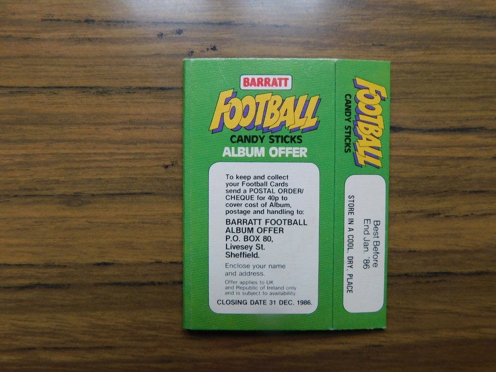 This vintage Barratt Candy Stick packet is a fantastic find for collectors! The 1986 football-themed design in green is still in great condition, just as pictured. The "No Slide" heading ball adds a fun retro touch. As a private seller item, it’s a unique piece of confectionery history—perfect for anyone who loves nostalgic treats or football memorabilia. A must-have for enthusiasts!