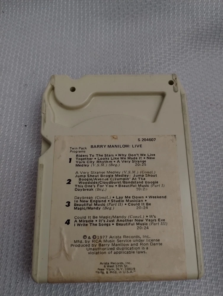 This double album 8 track by Barry Manilow is a must-have for fans of the Piano Man. Recorded live in 1997 by Arista Records, this album captures the essence of Manilow's legendary performances. Featuring hits such as "Uptown Fever" and "The Way You Look Tonight," this album is a perfect addition to any music lover's collection. The 8-track cartridge format ensures high-quality sound and the instrument of a recorder adds a unique touch to the overall sound. This edition of the album is a live recording and is perfect for fans who want to relive the heyday of Manilow's performances.