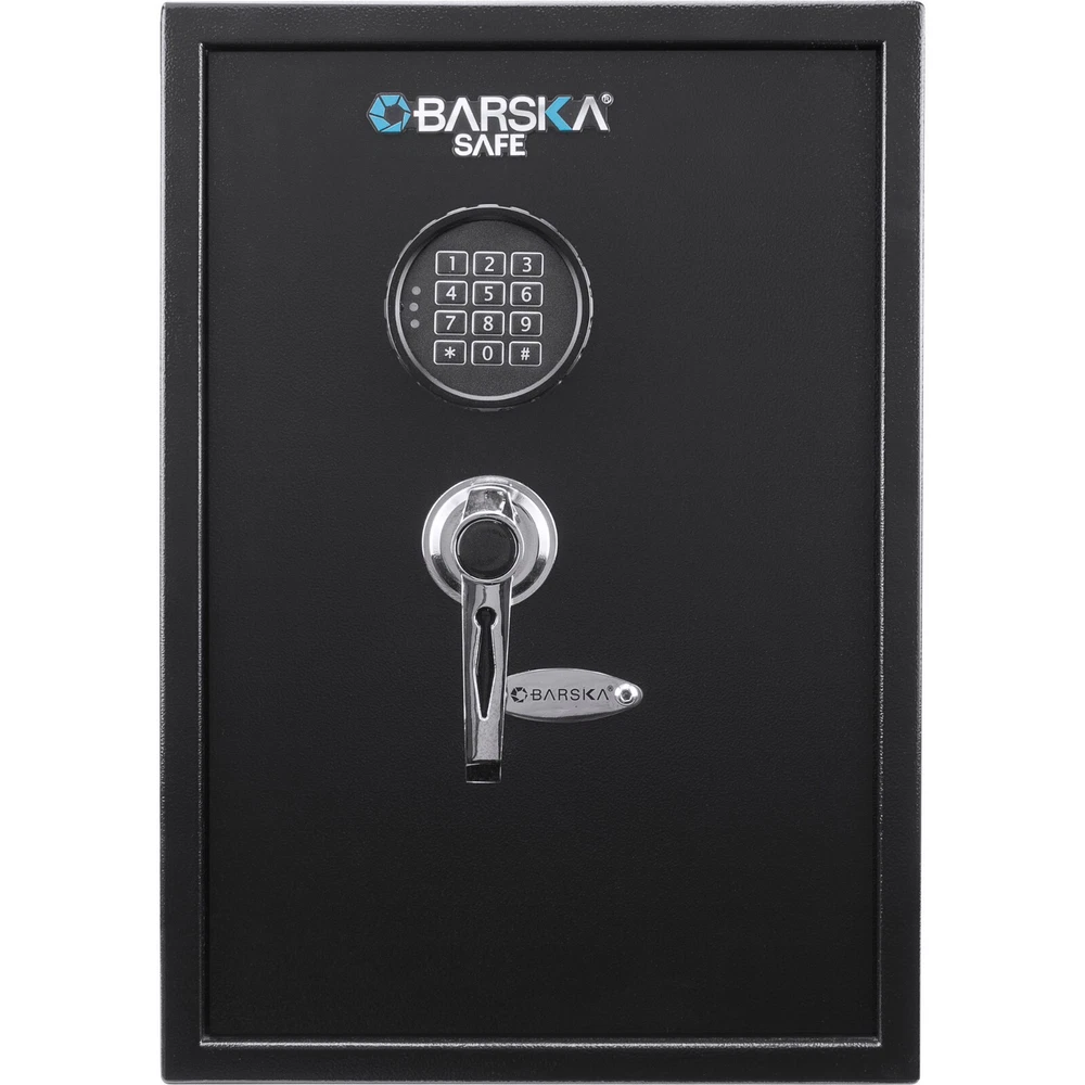 [xsellxgallery3] eBay Recommend items Barska Chest Rig Vest Law Enforcement Vest Breathable Training Vest, BI12258 US $41.99 Barska Versatile MOLLE Plate Carrier Tactical Vest VX-500 Green BI12290 US $64.99 Barska Tactical Plate Carrier Vest VX-300 MOLLE System Green, BI12286 US $89.99 Barska Loaded Gear Tactical Chest Rig, Mag Accessory Pouches,OD Green, BI12794 US $39.99 Barska Loaded Gear Black Tactical Vest with Leg Platform Holster, BI12016 US $107 Barska Loaded Gear VX-500 Black Plate Carrier Armor Tactical Molle Vest BI12260 US $69.99 Barska Loaded Gear VX-200 Dark Earth Tactical Vest Right Hand w/ Holster BI12346 US $59.99 Barska VX-200 Black Adjustable Tactical Vest Left Hand with Holster, BI12154 US $60.99 Barska VX-200 OD Green Adjustable Tactical Vest Right Hand with Holster BI12332 US $59.99 Barska Loaded Gear VX-300 Black Tactical Molle Vest w/7 Detachable PCS, BI12256 US $95.99 Barska Loaded Gear Tactical Vest VX-300 (Dark Earth) BI12308 US $99.99 Loaded Gear Tactical Chest Rig VX-400 Tan (Flat Dark Earth) BI12792 US $39.99 Barska Loaded Gear VX-200 Black Tactical Vest Right Hand w/ Holster BI12018 US $59.99 Barska CX-700 Drawstring Dump Pouch, Grey BI12628 US $19.99 Barska CX-950 Dual Stacked Rifle and Handgun Mag Pouch (OD Green) BI13016 US $19.99 Barska CX-850 Double Magazine Pouch (Flat Dark Earth) BI13002 US $19.99 Barska CX-800 Accessory Pouch, Dark Earth BI12632 US $13.99 Barska CX-800 Accessory Pouch, Grey BI12634 US $14.99 Barska CX-950 Dual Stacked Rifle and Handgun Mag Pouch (Flat Dark Earth) BI13014 US $19.99 Barska Loaded Gear CX-900 First Aid Utility Pouch (OD Green) BI13010 US $24.99 Barska CX-850 Double Magazine Pouch (OD Green) BI13004 US $19.99 Barska CX-700 Drawstring Dump Pouch, Dark Earth BI12626 US $19.99 Barska CX-900 First Aid Utility Pouch (Dark Earth) BI13008 US $19.99 Barska CX-850 Double Magazine Pouch (Black) BI13000 US $19.99 Description The 1.45 Cu. ft Digital Keypad Security Safe by Barska features a spacious interior with two shelves for maximum storage capacity. This solid steel safe features a digital keypad that allows the user to quickly access the valuables inside using the correct PIN code. Three steel deadbolts help make this safe tamper resistant, and pre-drilled mounting holes with included mounting hardware further ensure the security of your valuables inside. Features: Digital Keypad Stores 2 PIN Codes Easy-to-use locking system 3 Point Solid Steel Locking Bolts Solid Steel Construction 2 Removable Storage Shelves Operates on 4-AA Batteries (Included) Programmable Silent Mode Secure Lock-Out Mode Low Battery Notification Includes Protective Floor Mat Set of Two Emergency Back-Up Keys and Mounting Hardware Outer Dimensions (D x W x H): 13in x 13.75in x 19.75in Inner Dimensions (D x W x H): 9.75in x 13.5in x 19in Weight 45.35 lbs SHOW LESS Exterior Dimensions 13" x 13.75" x 19.75" Interior Dimensions 9.75" x 13.5" x 19" Included Accessories 2 Keys, Mounting Hardware, Batteries