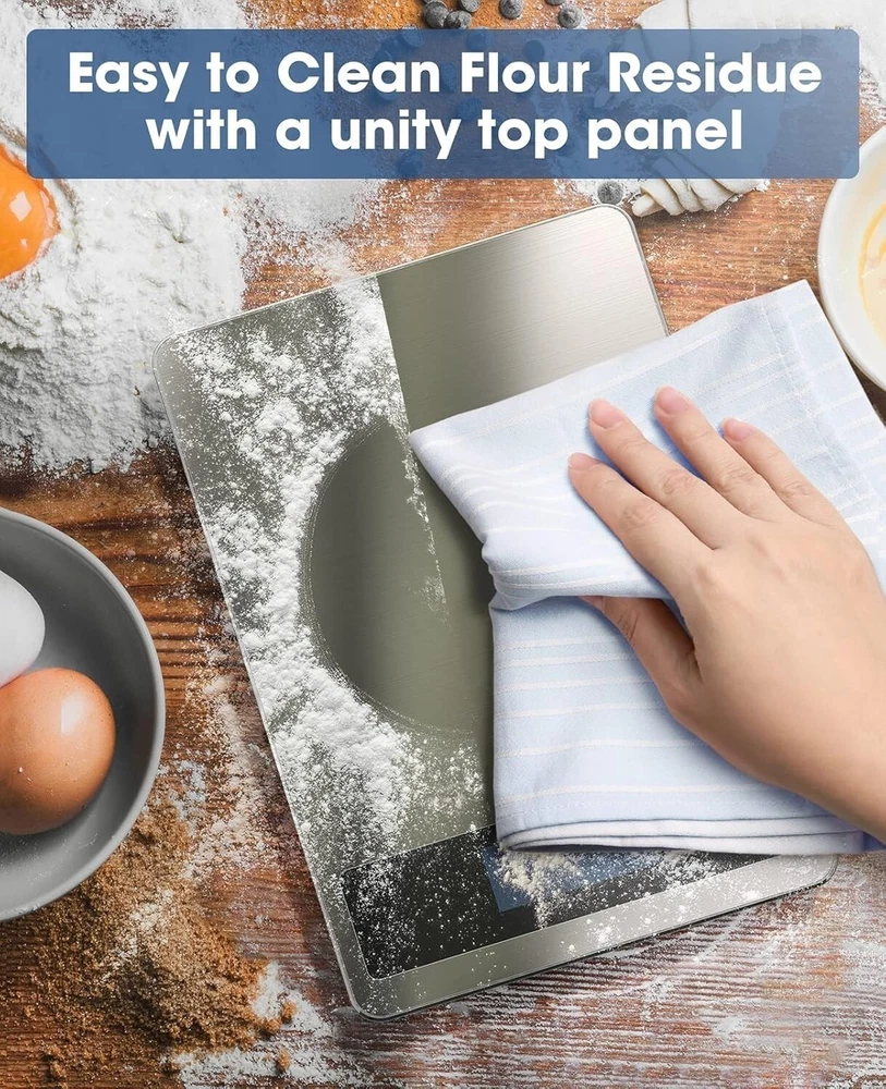 Bascula Electronica De Precios Para Uso Comercial Acero Inoxidable 22 LBS NEW US PESO PRECISO: La báscula digital para alimentos incorpora cuatro sensores de carga de alta precisión, que responden de forma rápida y precisa a incrementos de 1 g o 0,1 oz al añadir ingredientes, su rango de medición: de 0,1 oz a 22 lb y de 3 g a 10 kg (peso mínimo de 0,1 oz o 3 g) BALANZA GRANDE MULTIFUNCIÓN: Plataforma de 9" x 6,3" y pantalla LCD grande para una lectura fácil en g, kg, lb: oz, fl.oz y ml. Esta báscula digital es para cocinar, hornear, hacer un seguimiento de la ingesta, la pérdida de peso y el envío de correos mejor. DISEÑO PRÁCTICO: La báscula para alimentos está diseñada con vidrio templado para un soporte fuerte, superficie superior de acero inoxidable elegante para evitar huellas dactilares y fácil de limpiar, con un gancho adjunto para un almacenamiento conveniente. RECORDATORIO: hay una película protectora de color azul en la parte superior para evitar rayones, solo quítela antes de usar. TARA FÁCIL / PUESTA A CERO: El práctico botón de tara para el cálculo de tara le permite restar el peso del plato o recipiente, lo que facilita la obtención de lecturas precisas de los ingredientes.