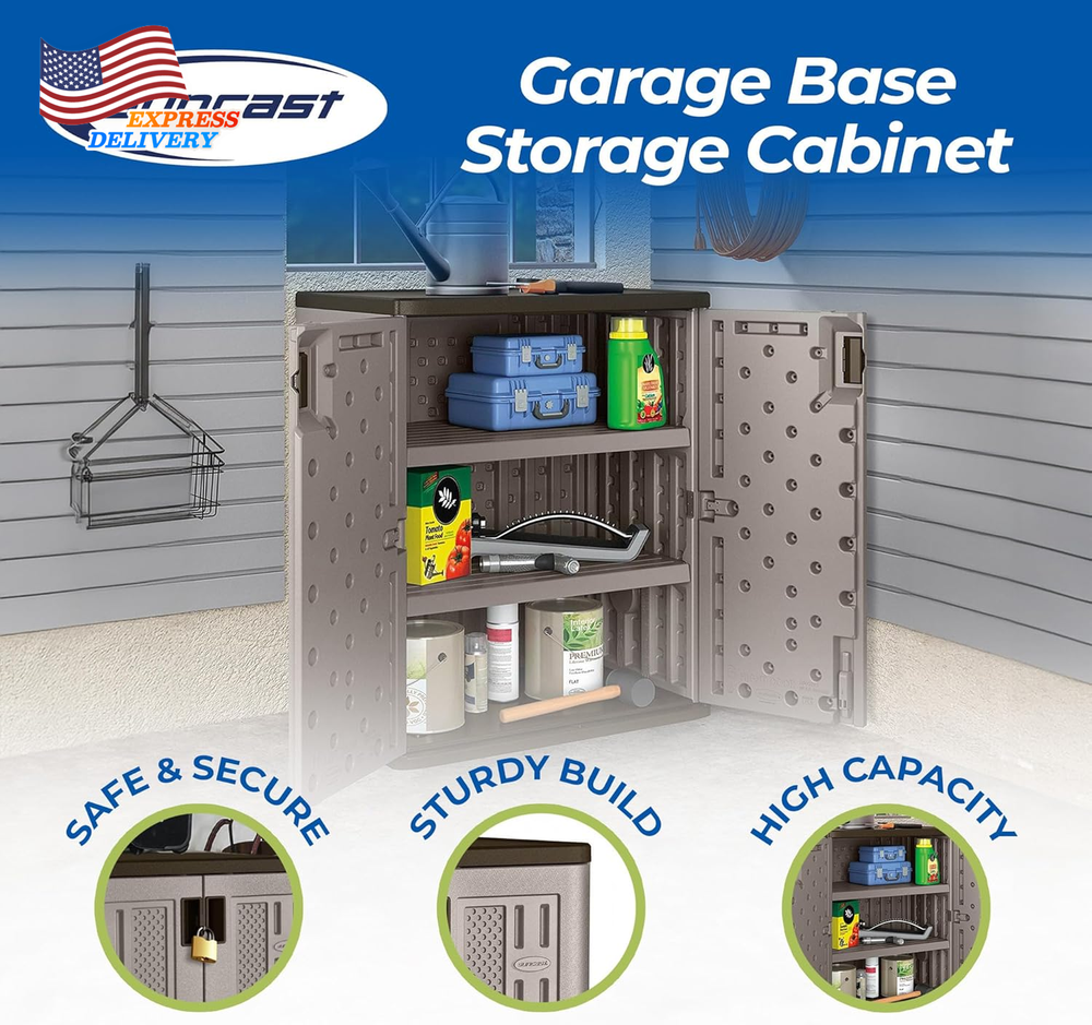 Store New Arrivals Add to Favorite View Feedback Contact Base Storage Cabinet for Garage Organization 9 Cu. Ft. Capacity Platinum Metallic Description Item model number BMC3600 Storage Volume 254.85 Liters Warranty Description 90 days. Country of Origin USA Product Dimensions 20.25"D x 30"W x 36"H Top Material Type Resin Number of Pieces 1 Room Type Utility Room Number of Compartments 3 Assembly Required Yes Dishwasher compatible No Batteries required No Care instructions Wipe with Damp Cloth UV protection Basic UV Protection Installation Type Freestanding Pattern Name Organizer Frame Material Plastic Finish Type Brown Included Components Cabinet Number of Doors 2 Shape Rectangular Door Style Slab Item Weight 39 pounds Is Customizable No Lock Type Key Number of Shelves 2 Special Feature Lightweight Weight Limit 75 Pounds Number of Levels 2 Mounting Type Floor Mount Color Silver Is Discontinued By Manufacturer No Global Trade Identification Number 00044365021881 Handle Material Resin Material Resin, Metal Style Adjustable,Lockable Base Type Legs Back Material Type Resin Recommended Uses For Product Tools Finish types Brown Fabric Type Resin Resin Organize your garage or workshop with the Suncast Base Storage Cabinet. Designed to keep your space tidy and your tool collection accessible, this cabinet is a perfect blend of style and functionality. The multi-wall resin panels are engineered for added strength to withstand the demands of any busy environment. The generous capacity of 9 cubic feet provides ample space for a wide range of items, from gardening supplies to cleaning essentials like a handheld broom, spray mop, or even a compact holder for smaller gears. The two reinforced shelves inside can each support up to 75 lbs. of heavier items without sagging. Whether you're organizing your basement or upgrading from mounted units, this freestanding organizer has you covered. The weather-resistant resin construction resists dents, rust, and rotting, providing an easy-to-clean, low-maintenance solution. Its Platinum Metallic body is complemented by a Slate-colored ceiling roof and floor, creating a modern look that fits seamlessly into any home setting. Measuring 2 ft. 6 in. wide by 1 ft. 8.25 in. deep by 3 ft. high, this cabinet fits neatly into smaller spaces and easily tucks beneath overhead shelving or workbenches. Designed for convenience, there’s no need to mount it. The double door feature is pad-lockable (lock not included) with upper and lower latches to keep your items locked and secure at all times. This heavy duty cabinet offers a practical alternative to open shelving or a hanging system with wall hooks in a large shed or mudroom. It’s also a great fit for the washroom or utility room near the kitchen, where it can serve as a laundry closet or overflow pantry for storing detergent and packs of hanger for your drying rack or clothesline. The durable construction and thoughtful design of the Suncast Base Storage Cabinet provide a reliable storage solution that fits seamlessly into various spaces, helping you maintain an orderly and efficient environment. Organize your garage or workshop with the Suncast Base Storage Cabinet. Designed to keep your space tidy and your tool collection accessible, this cabinet is a modern blend of style and functionality. The multi-wall resin panels are engineered for added strength to withstand the demands of any busy environment. The generous capacity of 9 cubic feet provides ample space for a wide range of items, from gardening supplies to cleaning essentials like a handheld broom, spray mop, or even a compact holder for smaller gears. The two reinforced shelves inside can each support up to 75 lbs. of heavier items without sagging. Whether you're organizing your basement or upgrading from mounted units, this freestanding organizer has you covered. The weather-resistant resin construction resists dents, rust, and rotting, providing an easy-to-clean, low-maintenance solution. Its Platinum Metallic body is complemented by a Slate-colored ceiling roof and floor, creating a modern look that fits seamlessly into any home setting. Measuring 2 ft. 6 in. wide by 1 ft. 8.25 in. deep by 3 ft. high, this cabinet fits neatly into smaller spaces and easily tucks beneath overhead shelving or workbenches. Designed for convenience, there’s no need to mount it. The double door feature is pad-lockable (lock not included) with upper and lower latches to keep your items locked safely out of sight. This heavy duty cabinet offers a practical alternative to open shelving or a hanging system with wall hooks in a large shed or mudroom. You can also position it in the washroom or utility room near the kitchen, where it can serve as a laundry closet or overflow pantry for storing detergent and packs of hanger for your drying rack or clothesline. The durable construction and thoughtful design of the Suncast Base Storage Cabinet provide a reliable storage solution that fits seamlessly into various spaces, helping you maintain an orderly and efficient environment. ABOUT US We offer the best prices around on high quality products. Our E-store includes media such as books, movies, music and games while offering electronics, toys, sporting apparel, clothing, tools, general home, garden items and more. SHIPPING We are always working hard to ensure your package arrives as soon as possible. Please understand that some factors like weather, high postal traffic, and the performance of shipping companies are outside of our control. We offer free shipping to the lower 48 states and ship within 2 business days of payment, usually sooner. We do not accept P.O. Boxes. Please provide a physical address. For shipping outside of the continental USA, we only use eBay's Global Shipping Program.The item is shipped to KY and then sent to the rest of the world. International customers are responsible for all duties and taxes. Continue to check out in order to calculate costs for shipping the 