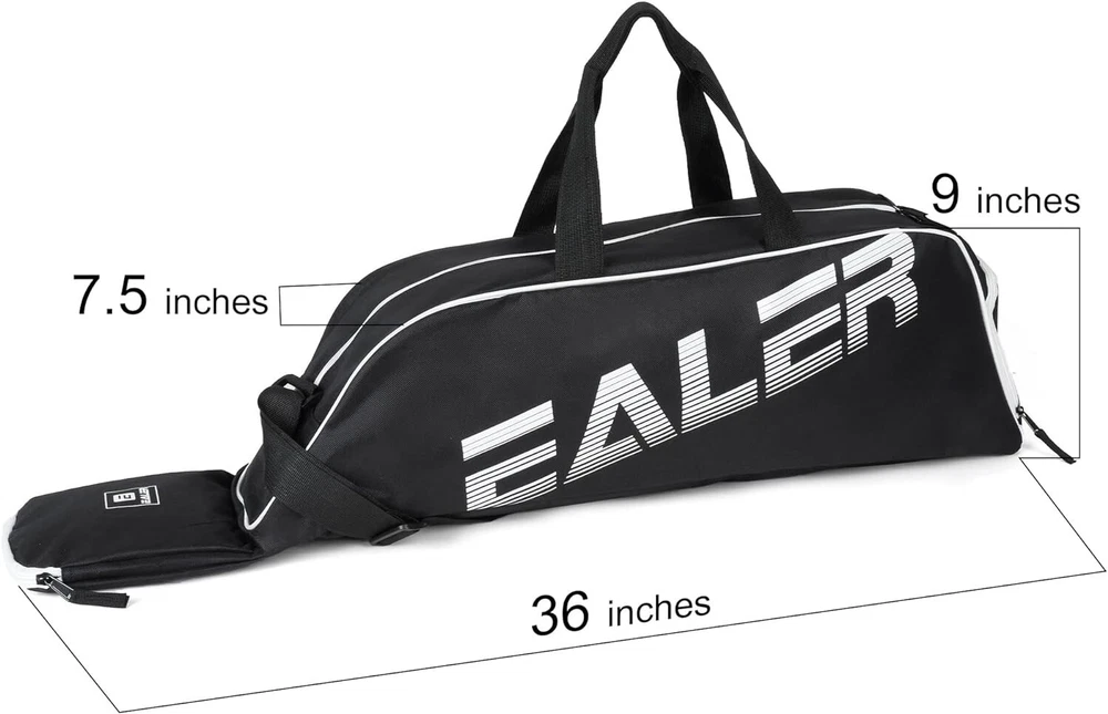 Baseball Bat Tote Bag & T-ball, Softball Equipment Bag - Gear for Kids, Youth, and Adults Holds Bat, Helmet, Glove, Cleats, Shoes and More STAY GAME READY WITH ALL YOUR GEAR IN ONE PLACE: Designed with room for all your baseball gear, each bag stores two bats, a baseball helmet, batting gloves, baseball cap, and catching glove. Don't settle for a bag that can't even fit your baseball helmet. IMPROVED STORAGE: Along with a large main storage compartment, the baseball and bat bag has an extra side pocket to hold keys, smarts, wallets and more. SHOULDER STRAPS AND HANDLE: Both an easy grip handle and shoulder straps attached for easy carrying and portability CONVENIENT ACCESSIBILITY: Bags also feature an integrated fence hook for hanging in the dugout RUGGED DURABILITY THAT WILL LAST FOR S: Crafted with high-density 600 Denier polyester, our baseball tote bag withstands practice, tournaments and night games.
