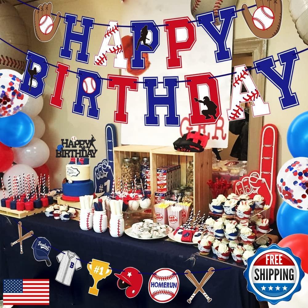 Baseball Birthday Party Decorations Supplies for Boys - Baseball Theme Happy Birthday Banner Cake Topper and Balloons Party Pack - Sports Game Themed Birthday Baby Shower Photo Props Supplies Features Looking for something special to add more atmosphere to your BASEBALL-themed baby shower or birthday party? Our baseball happy birthday party pack will be your best choice! Perfect for Baseball, sport, games day, or any sport-themed birthday party photo prop and any events you want. Nothing is better than our kit with a variety of baseball elements. Let's thrill your guests wherever the celebration occurs! PRE-ASSEMBLED - Our baseball happy birthday banners are made of premium cardstock with quality colorful printing. The cake topper is made of double-sided glitter card stock with food-grade paper sticks, glitter won't wind up on your cake. Both cake topper and banners are pre-assembled, and NO DIY is required. Help you effortlessly create a beautifully unique party for your occasion GORGEOUS PARTY PACKS - You'll get 1pcs CAKE TOPPER(measures 7.3" x 4.1"), 3pcs BANNERS, 6pcs blue balloons(12"), 6pcs red balloons(12"), 6pcs white balloons(12"), 6pcs confetti balloons(12") and 4pcs foil baseball balloons(18"), 32pcs in total. ORIGINAL DESIGN BY Sumjollity - All our party supplies have been carefully handmade and crafted. We specially design multiple elements(baseball, sports suit, player, etc.), adding more fun and making your party more interesting GUARANTEE - If you are unsatisfied with your purchase of our baseball-themed birthday party packs, you can have a 100% refund without conditions Shipping Free & Fast Shipping: We offer free shipping to most of the USA with a normal delivery time of 3-7 days. However, due to the current situation, additional delivery time (up to 3 weeks) may be required for some items. Alternative Carriers: We may use alternative carriers (e.g., USPS, FedEx, UPS) to ensure your package arrives safely and on time. Due to the use of multiple carriers, we are unable to provide a tracking number automatically. Handling Time: Orders are processed and shipped within 1-2 business days of receiving cleared payment. Shipping Restrictions: Shipping to Alaska, Hawaii, Puerto Rico, Guam, and other US territories may incur shipping charges or delivery restrictions. Please contact us before ordering, or your order can be refunded/cancelled. State Restrictions: Certain items may not be shipped to California due to state regulations. Contact for Tracking Updates: If you require tracking updates or have any concerns about the delivery of your order, please feel free to contact us, and we will be happy to assist you. Return Policy 30-Day Hassle-Free Returns: If you are not completely satisfied with your purchase, you can return the item for free within 30 days of receiving it for a full refund or exchange. Easy Return Process: Contact us, and we will provide you with a prepaid return shipping label and detailed instructions. No Restocking Fee: There are no restocking fees for returns. However, the buyer is responsible for return shipping costs if the return is not due to a seller's error. Refund Processing: Refunds will be processed within 1 business day of receiving the returned item in its original condition. Payment We accept all major credit cards, PayPal, and Apple Pay for your convenience. Your payment information is secure and encrypted to ensure a safe and seamless transaction. Please complete your payment within 3 days of purchase to avoid any delays in shipping. Feedback Your feedback is extremely important to us. We strive to provide the best products and customer service possible. If you are satisfied with your purchase, please take a moment to leave us a positive review. If you have any concerns or issues with your order, please contact us before leaving negative feedback. We are committed to resolving any problems and ensuring your satisfaction. Contact Us If you have any questions or concerns, please feel free to reach out to our customer support team. You can contact us through the eBay messaging system. We are available Monday to Friday, 9:00 am to 5:00 pm EST, and we will do our best to respond to your inquiry within 24 hours. Thank you for supporting our small family business!