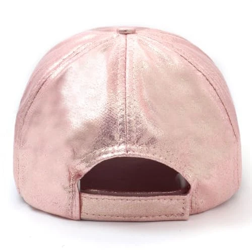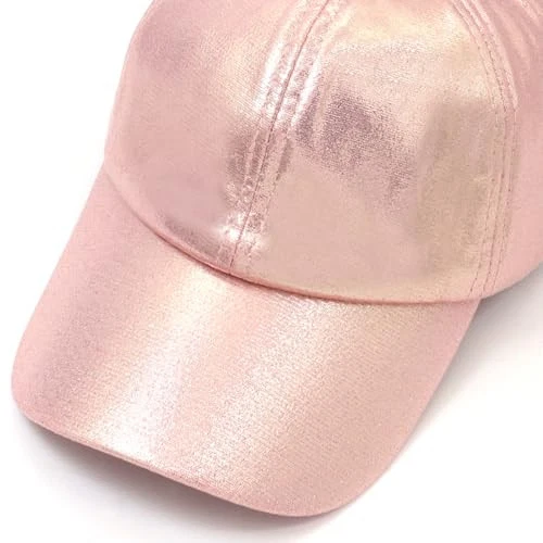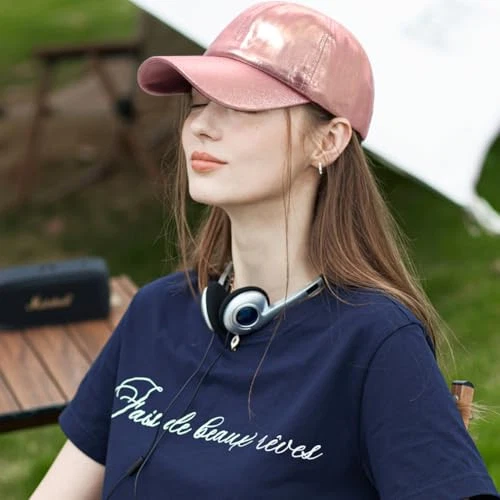 Baseball Cap for Women Men Shiny PU Leather Sun Hats Adjustable Laser Dark Pink
