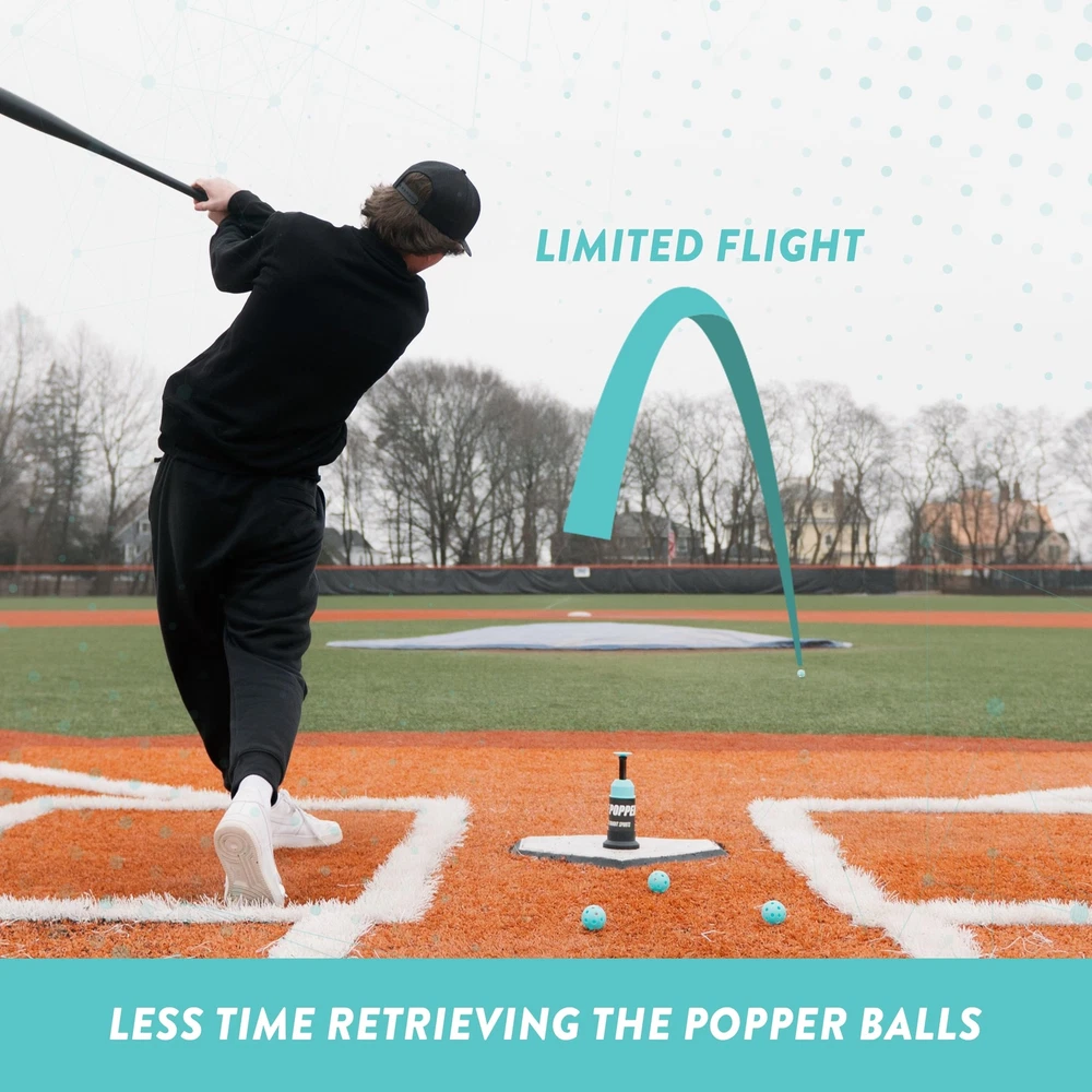 Introducing the Baseball Training Tee Popper, the ultimate baseball hitting trainer and batting practice equipment. This durable and long-lasting machine is designed to provide an exceptional practice experience without the need for a pitcher. With its improved technology, it delivers accurate pitches using our popper balls, making it the ideal choice for players of all levels. THE ISSUE WITH NORMAL TEES - Normal conventional tees get in the way. Regardless of design or angle, you still hit a bit of the ball and bit of the tee. This impedes the real time feedback necessary to make crucial adjustments to your swing. The other issue is movement. The ball on a conventional tee does not move. The Original Tee Popper is the first of its kind to offer a tee that provides both the consistently of a tee, but combines it with movement of the ball to replicate a more game-like experience. Whether you're a beginner or a seasoned pro, this baseball popper will help you improve your skills and become a true baseball superstar. Get your kids baseball set today and watch them excel in the game they love. Don't miss out on this must-have baseball practice equipment that will take your training sessions to the next level. IDEAL BASEBALL TRAINING EQUIPMENT : The Original Tee Popper gives you both the movement of a ball and the ability to train anytime you’d like without a partner. Great for baseball & softball batting practice at home (202 BALLS NOT INCLUDED) ALL AGES AND LEVELS: This isn't just a kids batting trainer, anyone from tee ball to professional level ball players can benefit from the Tee Popper. The Tee Popper is designed to pop the ball to a height that benefits all players. REINVENTED GEARBOX: Our new reinvented gearbox delays the baseball launcher delivery to provide enough time for the hitter to comfortably go from placing the ball on the Tee Popper to getting in a stance. NOT FOR REAL BASEBALLS: When using the Tee Popper, make sure to only use Popper Balls. While the Tee Popper 202 is durable, hitting the tee popper 202 stand with a bat or using a real baseball will make the product ineffective. PRO TESTED: We have tested our baseball Popper to make sure that everyone can get use out of it! Test it out for 30 days and if you don't enjoy it send it back with no hassle.