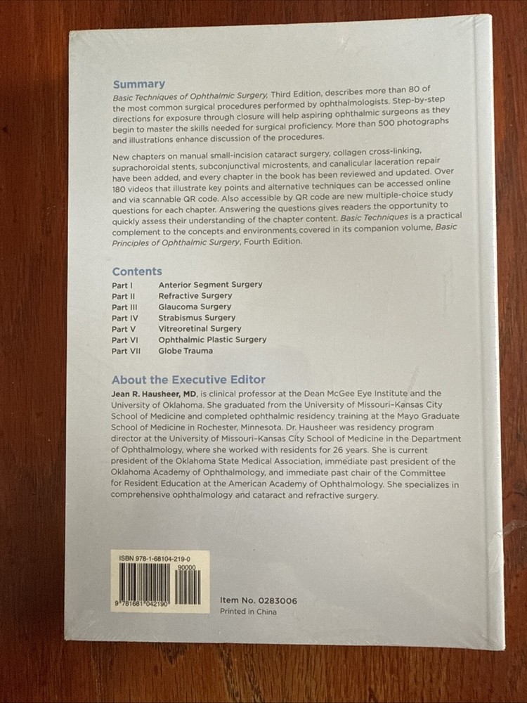 Author:Jean R. HausheerItem Weight:42.1 OzFormat:Trade PaperbackItem Width:6.8 inNumber of Pages:610 PagesPublisher:American Academy of Ophthalmologygtin13:9781681042190Features:New EditionType:TextbookItem Height:1.3 inPublication Year:2019Subject:OphthalmologyLanguage:EnglishPublication Name:Basic Techniques of Ophthalmic SurgeryISBN:9781681042190Subject Area:MedicalItem Length:9.9 in