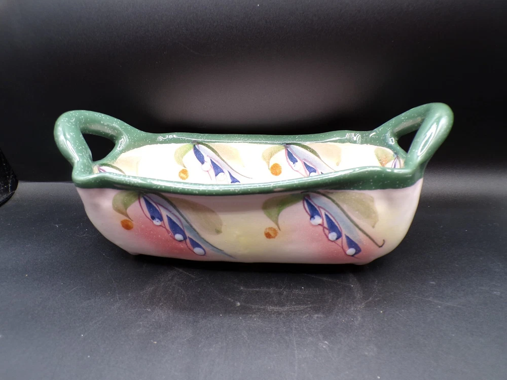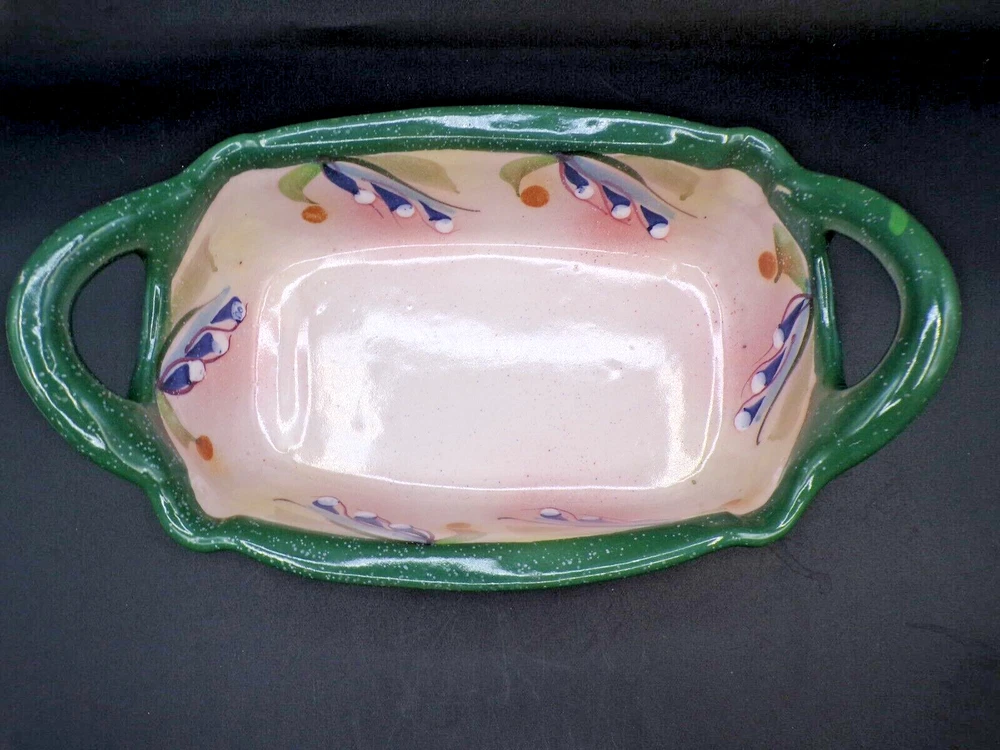 This beautiful baking dish serving dish from Basin Creek Pottery is a must-have for any collector of vintage pottery. The rectangular shape and hand-decorated red and blue flower theme make it a unique addition to any kitchen. Crafted from high-quality stoneware, this dish is perfect for baking and serving your favorite casseroles. With one compartment and a width of 7 inches, it is the perfect size for family meals. The impressed backstamp and handmade construction add to its charm. Don't miss out on the opportunity to own a piece of United States pottery history.