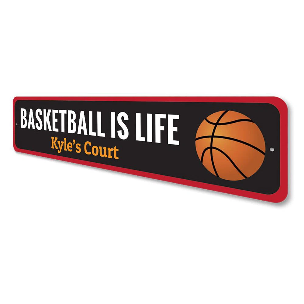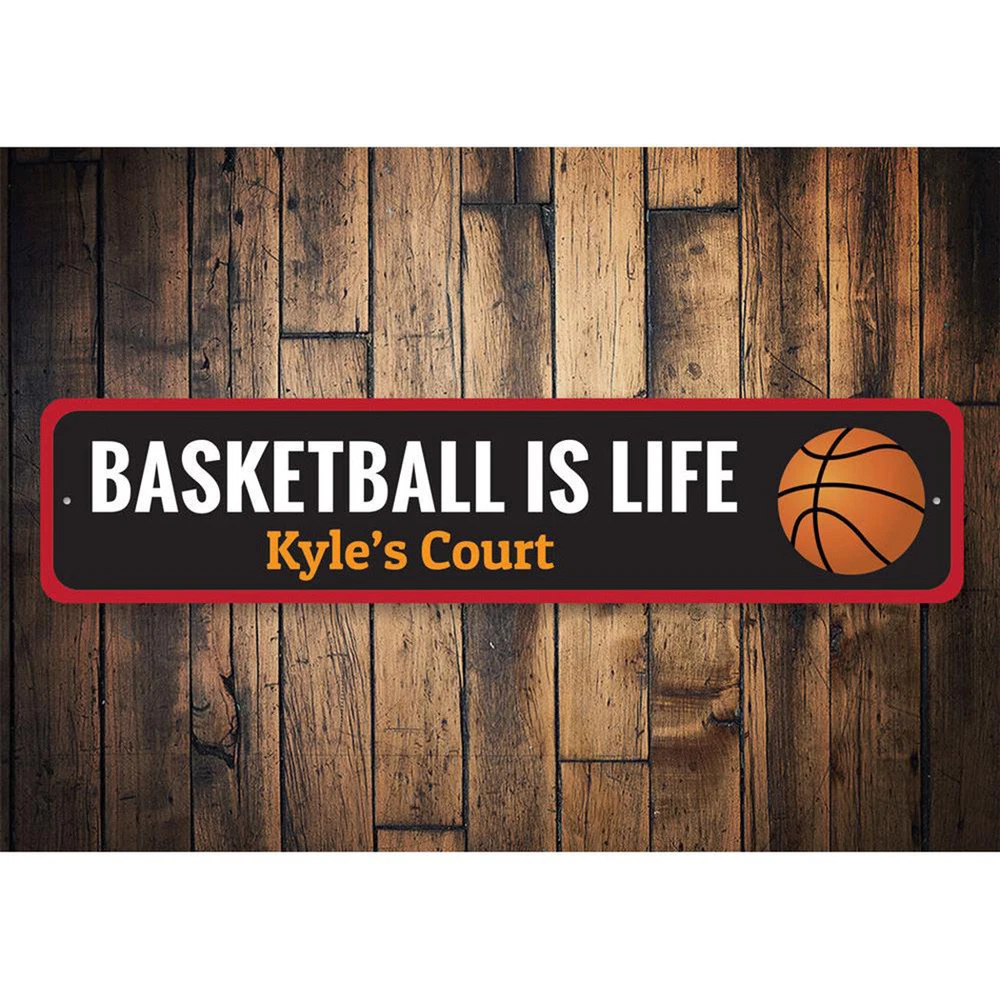The Lizton Sign Shop Product Description Basketball Is Life Sign, Custom Kid Name Bedroom Aluminum Metal Decor Sign **there may be slight variations in color and text spacing, however your sign will be very similar to the image above. Quality Aluminum Street Signs Sign Information Aluminum Brand New Sign Comes with rounded corners and pre-drilled for easy hanging. We use the highest quality materials - 100% USA-made! Great Gift Idea - Our signs truly make a one of a kind gift. Personalize the sign with the text you want to add. Custom text for the sign can be sent to us via email. A BRAND NEW SIGN!! All of our street signs are made of premium materials. The sign itself is made of aluminum and will never rust providing years of enjoyment indoors and outdoors. No Cheap plastic!! The Lizton Sign Shop specializes in quality personalized custom aluminum signs for any occasion. These make the perfect sign for any man cave, office, basement, garage, college dorm, kids bedroom, game room, bar, pub, tavern or countless other places. *Colors may vary slightly from one computer screen to the next but the image should be very close. All content and designs are subject to copyright and may not be reproduced in any form. Payment Methods We would prefer payment to be made through paypal but we also accept all major credit cards. If you select the credit card option please contact us after you make your purchase and we can walk you through the steps to make a secure payment. Return Policies We will accept returns within 30 days of the purchase date. The buyer is responsible for any costs to return the item or items. Returns will only be accepted for items that were damaged in shipping or if we made an error in the manufacturing of your item, i.e. spelling error.