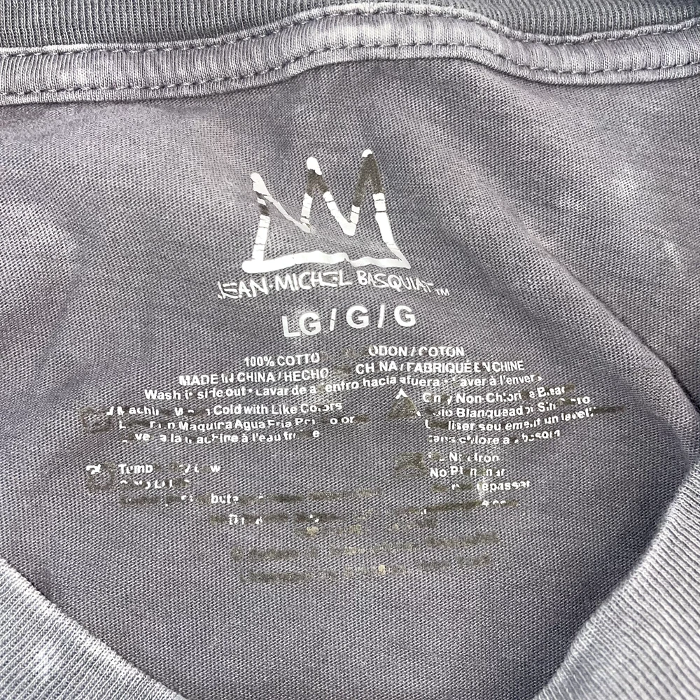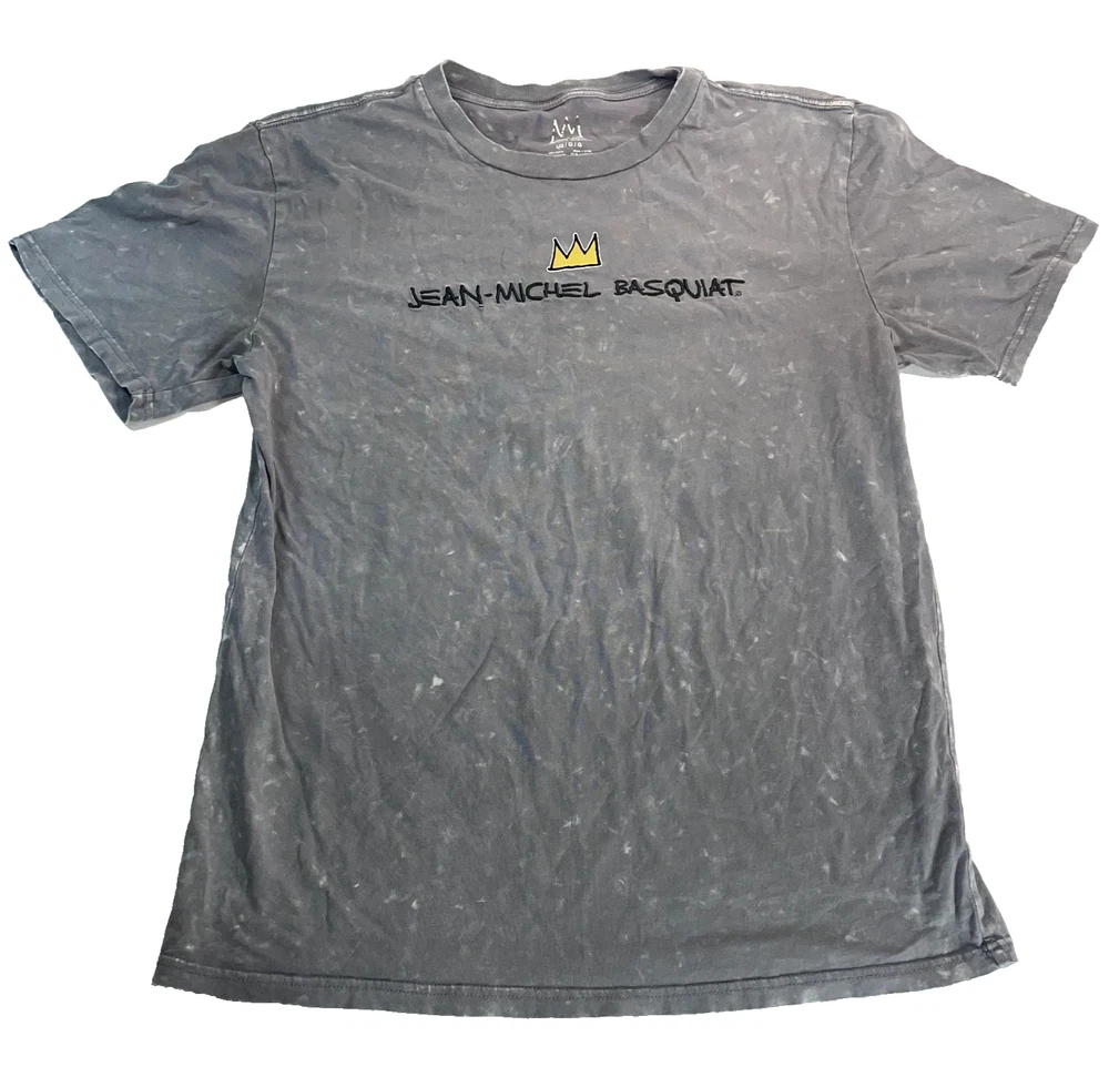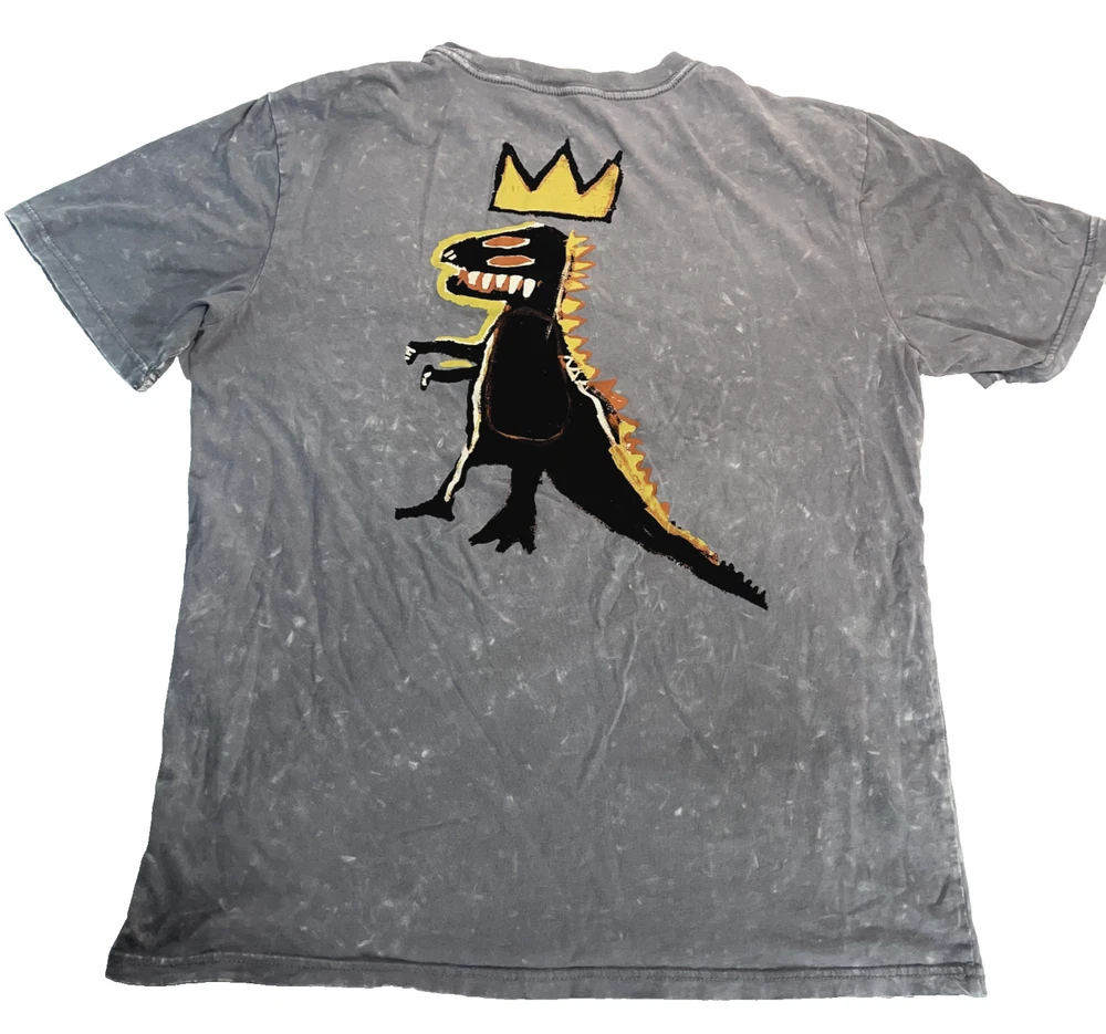 Basquiat Graffiti Dinosaur Shirt Gray Embroidered Jean Michel Basquiat Tee LG front name embroidered back dino graphic is printed Some small signs of wear, shown in photos--final 3 photos are close ups : *** distress pinholes in the collar and near the pit. Size tag fading.*** Otherwise, EUC. Please refer to photos for the most accurate measurements, description, and estimation of the item's condition. We’re happy to answer any questions or provide additional photos before purchase if requested! All items are sold as is and we try our very best to note any issues with condition in both our description and close up photos. Please remember that colors can look different across different devices and monitors. Condition: Please see photos for measurements. Any further measurements needed? Just ask! Some small signs of wear, shown in photos--final 3 photos are close ups : *** distress pinholes in the collar and near the pit. Size tag fading.*** Otherwise, EUC Pre-Owned: shows minimal to no signs of wear, as expected with typical well cared for use such as slight fading of colors with age. Please make sure to double check measurements for the best representation of fit, as brands can vary in sizing. Comes without sales tags, dust bag, or brand box. Will it Fit Check? Please reference the listed measurements (in photos and/or text) before purchasing. Fit check tip: Grab your favorite similar style item at home, lay the garment on a flat surface, and measure shoulder to shoulder, the width (armpit to armpit), and length (top to bottom). Then compare your measurements to those in our listing! If you need any further measurements not noted in the listing, please feel free to request, we will get back to you asap. FAST SHIPPING! Orders are usually shipped within 24 hours M-F Friday orders will ship Monday morning at the latest, unless there is a postal holiday. Feel free to send us a message before purchase if you?d like a certain delivery service or combined shipping offers. Still got Questions? Send us a message! We do our best to accurately and thoroughly represent each item in images and condition description, but, if there's any further information you'd like before purchasing or have a shipping request, please don't hesitate to ask and we'll get back to you asap. RETURN POLICY: Please reach out prior to purchase with any questions or shipping requests. Returns are accepted within 30 days, buyer pays return shipping. Refund issued upon receipt of item in original condition. Full refund (minus original shipping) will be issued once we receive the item assuming it is in the exact same condition as it was shipped.(Clean, unaltered, tags still attached if item was new with tags, etc.) We request that you select "Item does not fit" when returning an item that does not fit. Thank you for shopping small and supporting our lil' Rodeo!