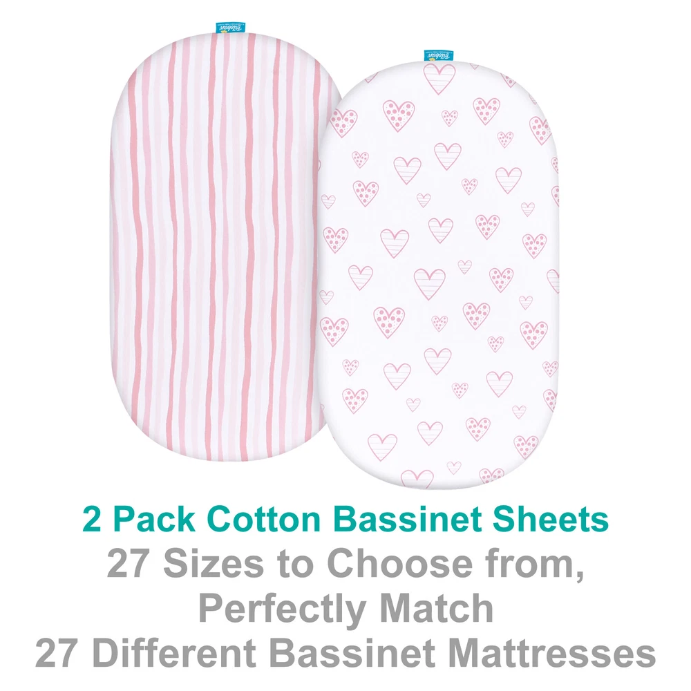 Product description Match 27 different sizes of bassinet mattresses , choose your bassinet type and buy. MiClassic 2in1 Stationary&Rock Bassinet Graco Sense2Snooze Bassinet 4moms Breeze Plus Bassinet 4moms Mamaroo Sleep Bassinet Arm's Reach Co-Sleeper Bassinet Baby Delight Beside Me Dreamer Bassinet Papablic 2-in-1 Bonni Baby Bassinet Delta Children Sweet Beginnings Bassinet Dream On Me Karley Bassinet Dream On Me Lacy Bassinet ANGELBLISS Baby Bassinet Baby Delight Go with Me Slumber Bassinet Dream On Me Seashell Bassinet Dream On Me Traveler & Skylar Bassinet Fisher-Price Rock with Me Bassinet Fisher-Price Soothing Motions Bassinet Graco Pack ‘n-Play Dome LX Bassinet Graco Travel Lite Crib HALO BassiNest Flex, Baby Bassinet Halo BassiNest Swivel Sleeper Maxi-COSI Iora Bedside Bassinet Mika Micky Bedside Sleeper Milliard Side Sleeper Bedside Bassinet Moses Basket Munchkin Brica Fold N' Go Travel Bassinet RONBEI Baby Bassinet Bedside Sleeper SNOO Smart Sleeper Baby Bassinet Ultra-soft & Skin-friendly: Our bassinet sheets are made of extremely soft 100% jersey cotton material. Amazingly soft, breathable and stretchy, ideal for baby’s delicate skin. Comfort Snug Fitted: Fully encased, premium elastic along the entire bottom edge, keeps sheets safety in place. Wash Durable & Easy-care: Machine cold wash on gentle cycle, and tumble dry on low heat. Do not dry clean, iron or bleach. Bassinet sheet is dry quickly and 2 pcs replacement sheets will give bassinet mattress premium protection to keep clean and comfy. Handling & Delivery We offer Free Shipping on all orders! Your order will be shipped within 2 working days after receiving payment. In an unlikely event that your order is lost or damaged in transit, it is eligible for full refund or replacement. We ship to continental US address ONLY, we are unable to ship to PO Boxes or APO/FPO addresses. Return Policy If you are not satisfied when you receive your item, please contact us for a replacement or money back. If the item is defective, we will send you a replacement without any extra charge, or offer a full refund after we receive the defective item, but return shipping should be paid by buyer. All items qualify for returns within 30 days of receipt. Returned packages must be the original package. Biloban's Life Guarantee Biloban's quality you can trust, if your items does not meet your needs for any reason, replacement or money back, no questions asked! Contact us We will respond emails within 24 hours, within 36 hours on weekend. Please like and follow Biloban baby bedding on Instagram, Facebook and Youtube. On Apr 28, 2022 at 18:52:07 PDT, seller added the following information: