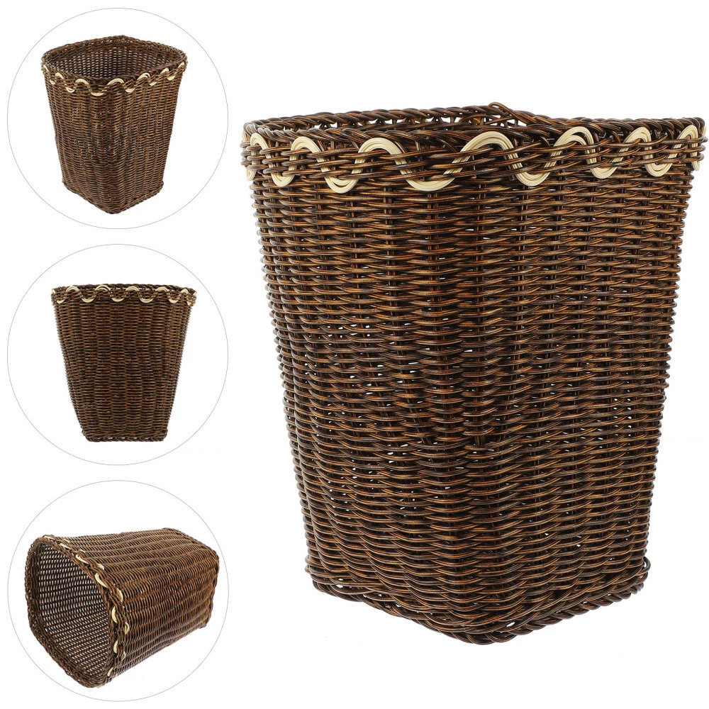 Basura Mimbre Cuadrada Trash Bin Bathroom Woven Basket Study Can Office