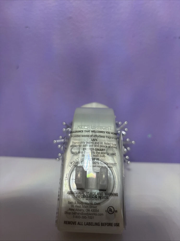 This Bath & Body Works Blue Snowflake Wallflower Plug-In features a jeweled snowflake design suitable for Christmas. It is made of plastic, manufactured in 2024 in the United States. The wallflower bulb plug-in is intended for adults and includes a diffuser. The scent is not included, and the brand is Bath & Body Works. Perfect for adding a festive touch to your home fragrance collection.